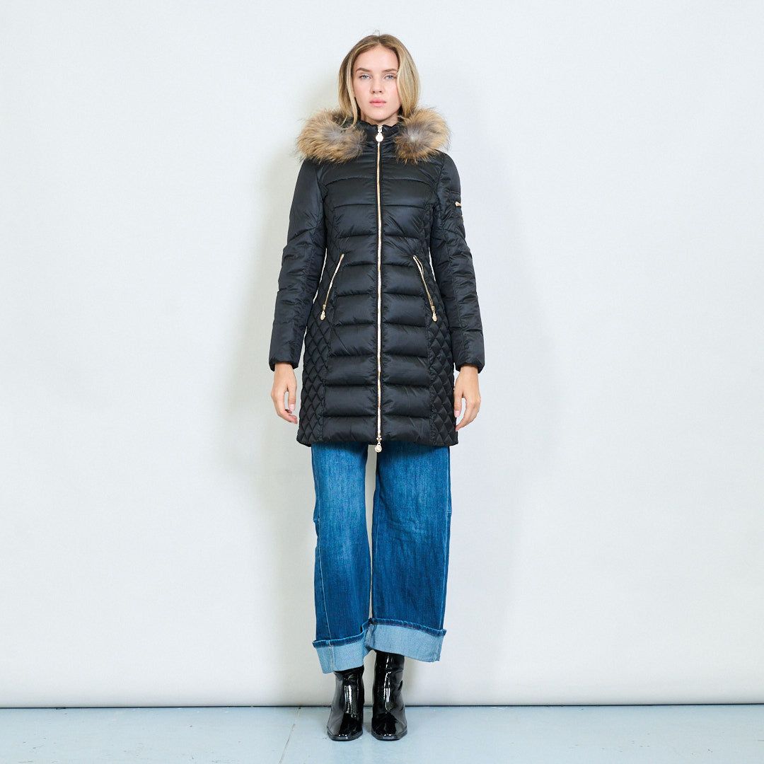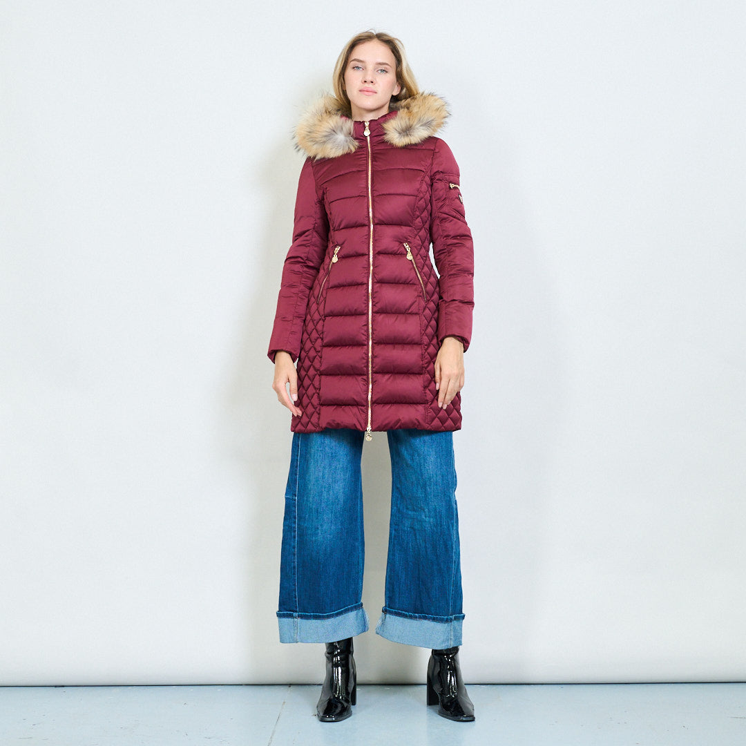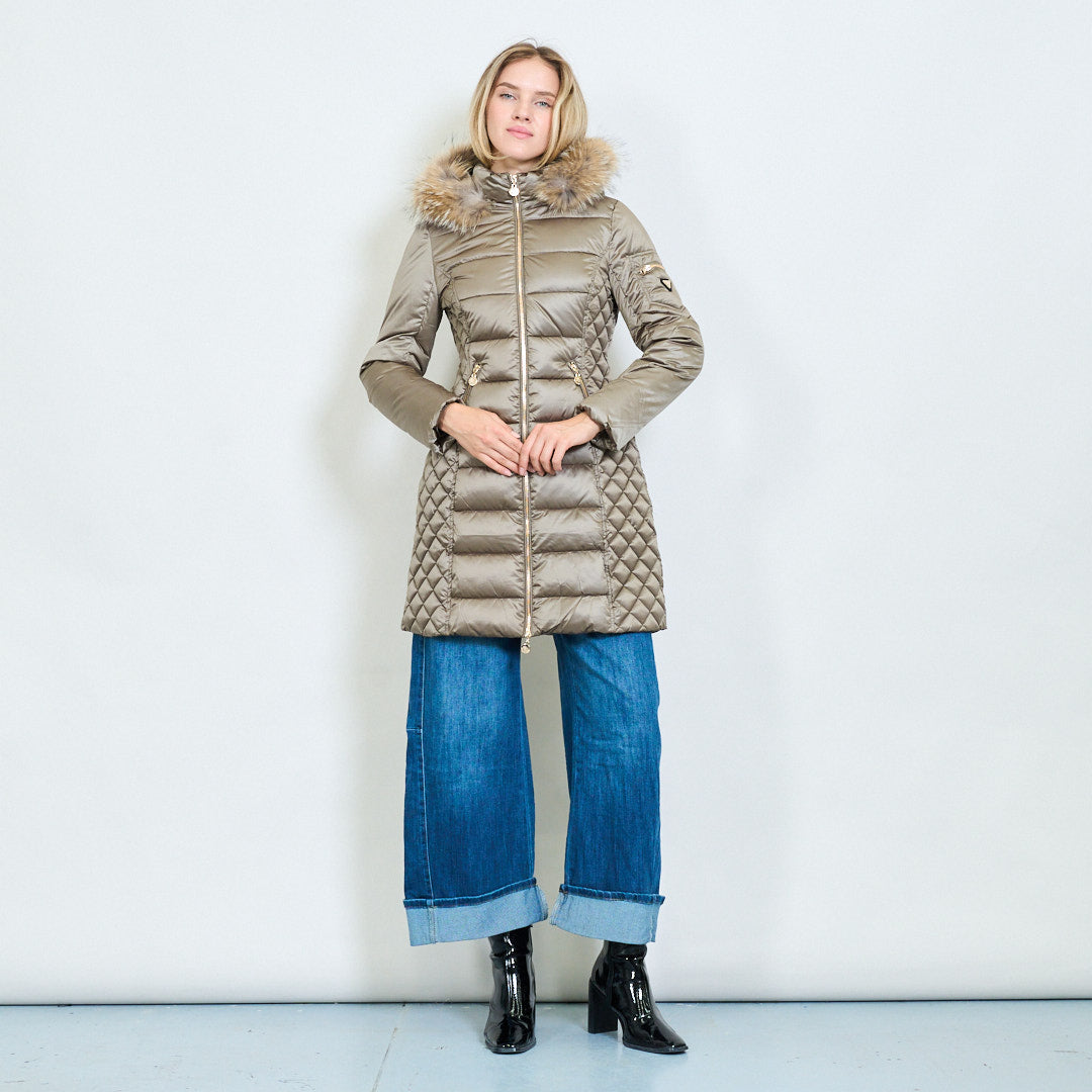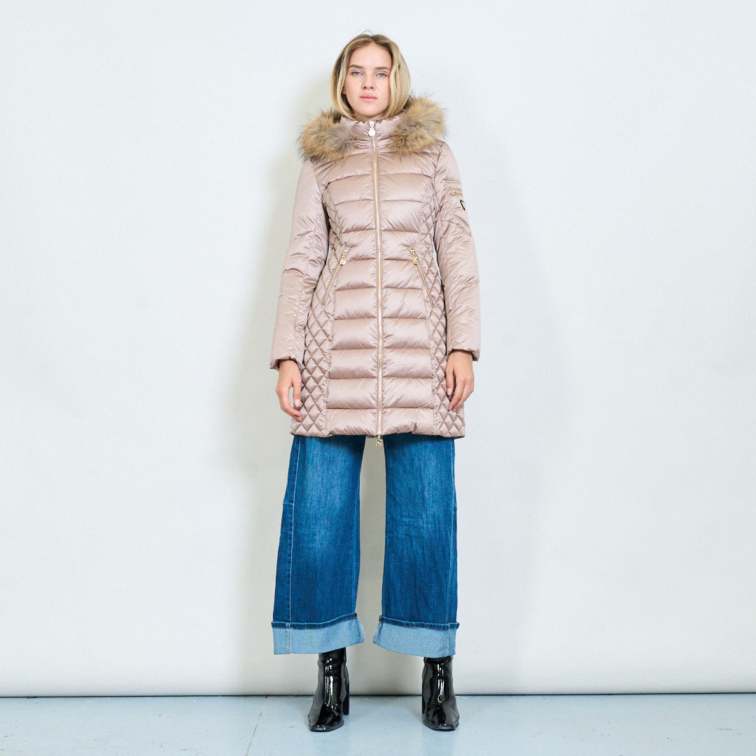 Cóta cuilteáilte le faux cochall faux bearrtha agus painéil taobh diamant mórdhíola
