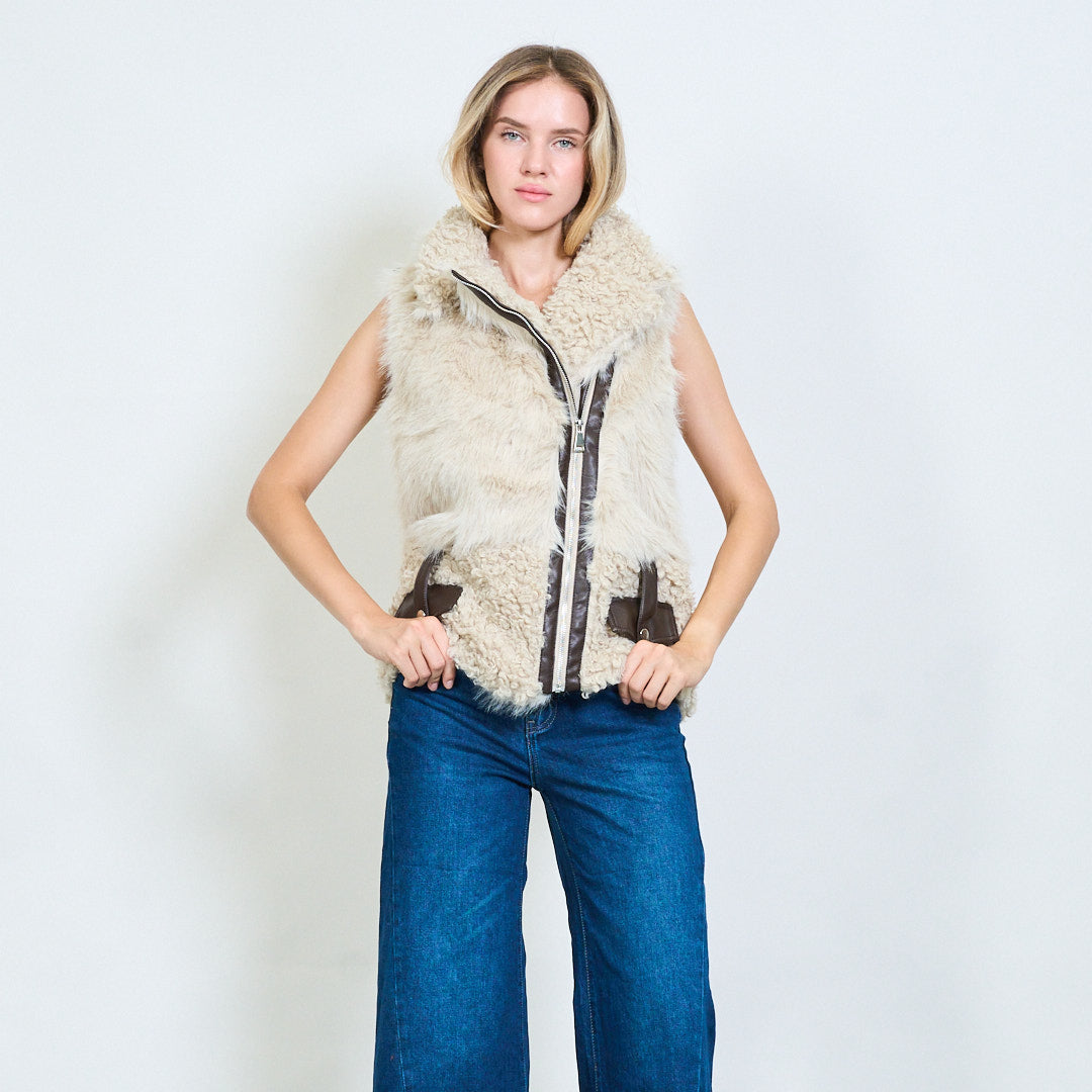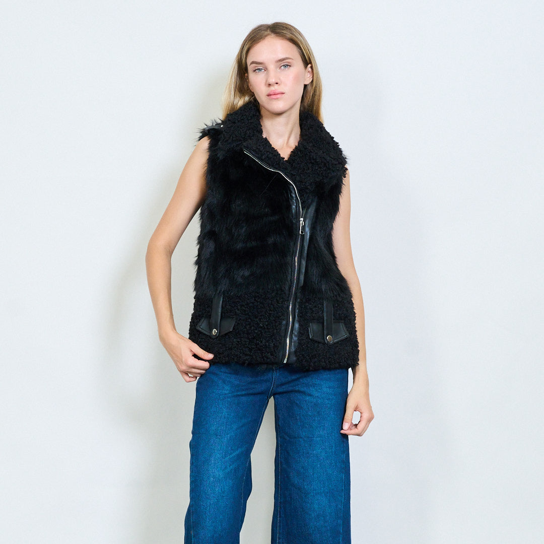 - Dílsiú sleeveless trom i lomadh faux bog agus cuasach