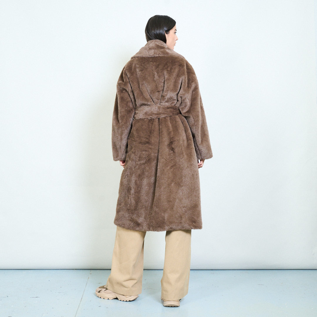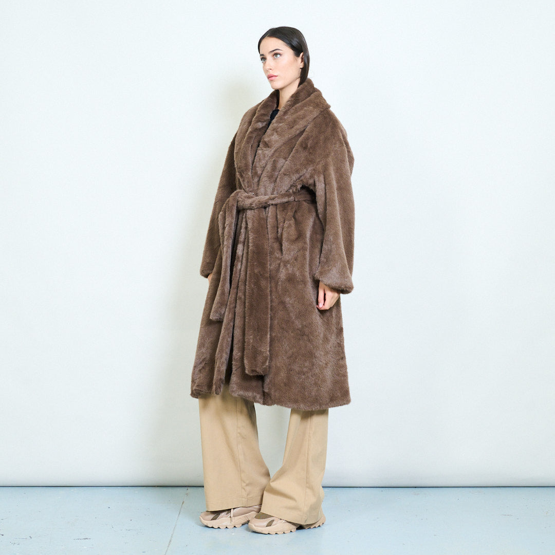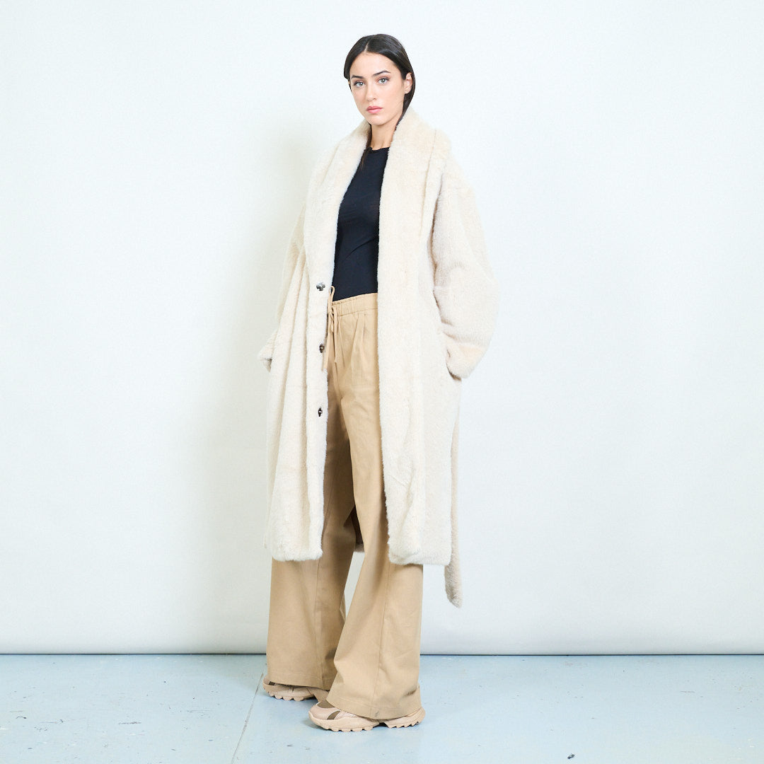 Cóta fillte fionnaidh faux ró-mhór lapel mórdhíola