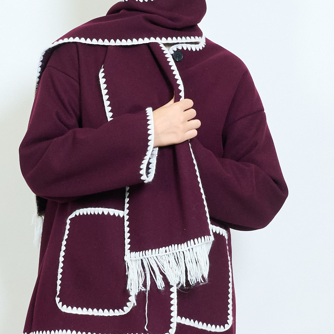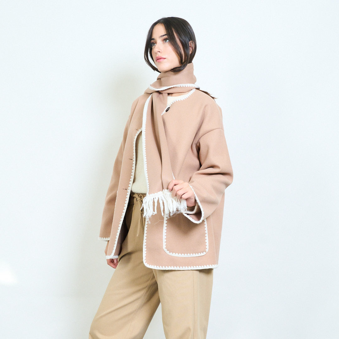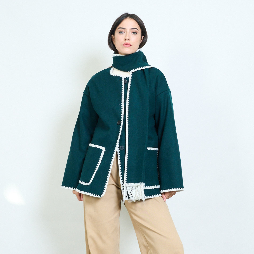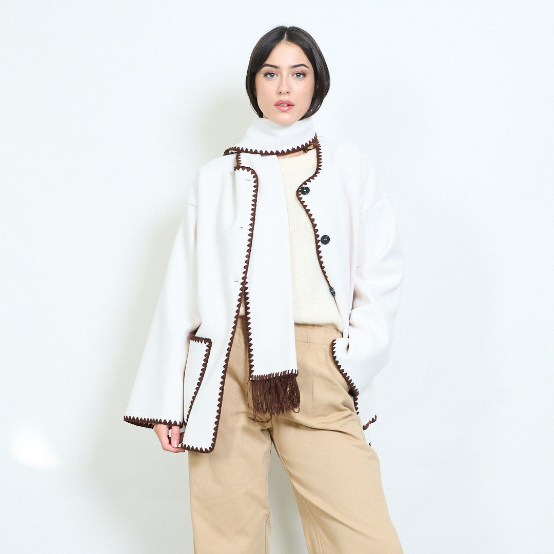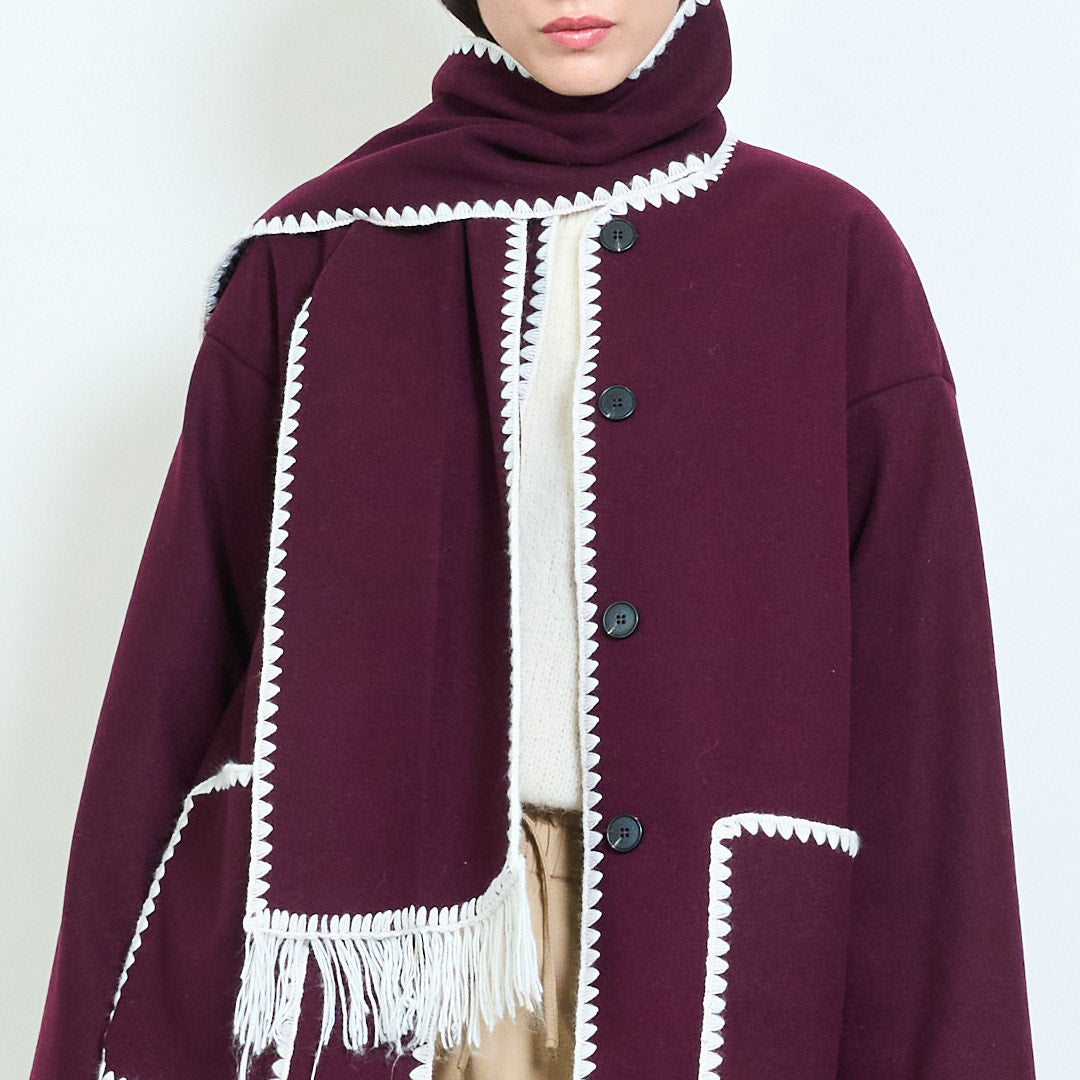 Cóta póca Baile Átha Troim scalloped le scairf ceangailte mórdhíola