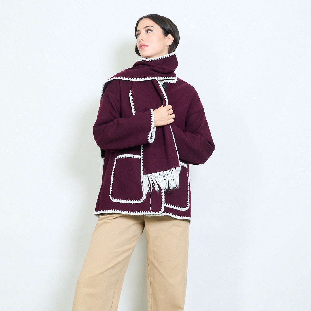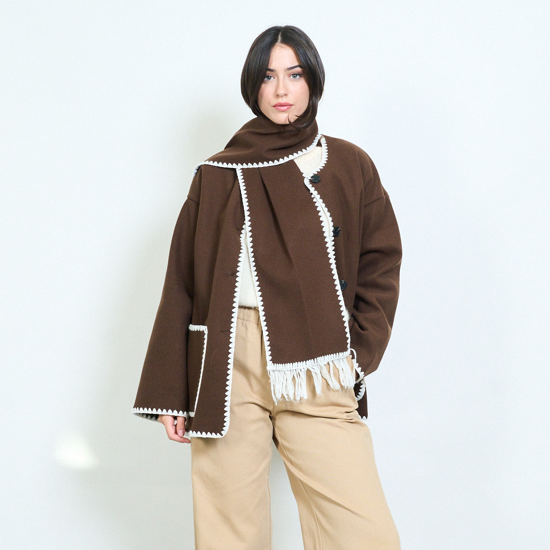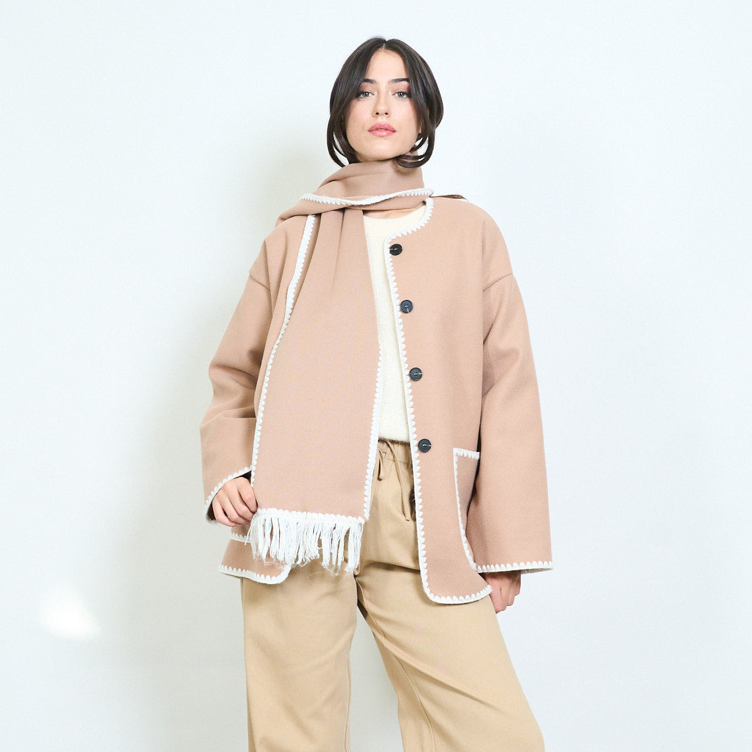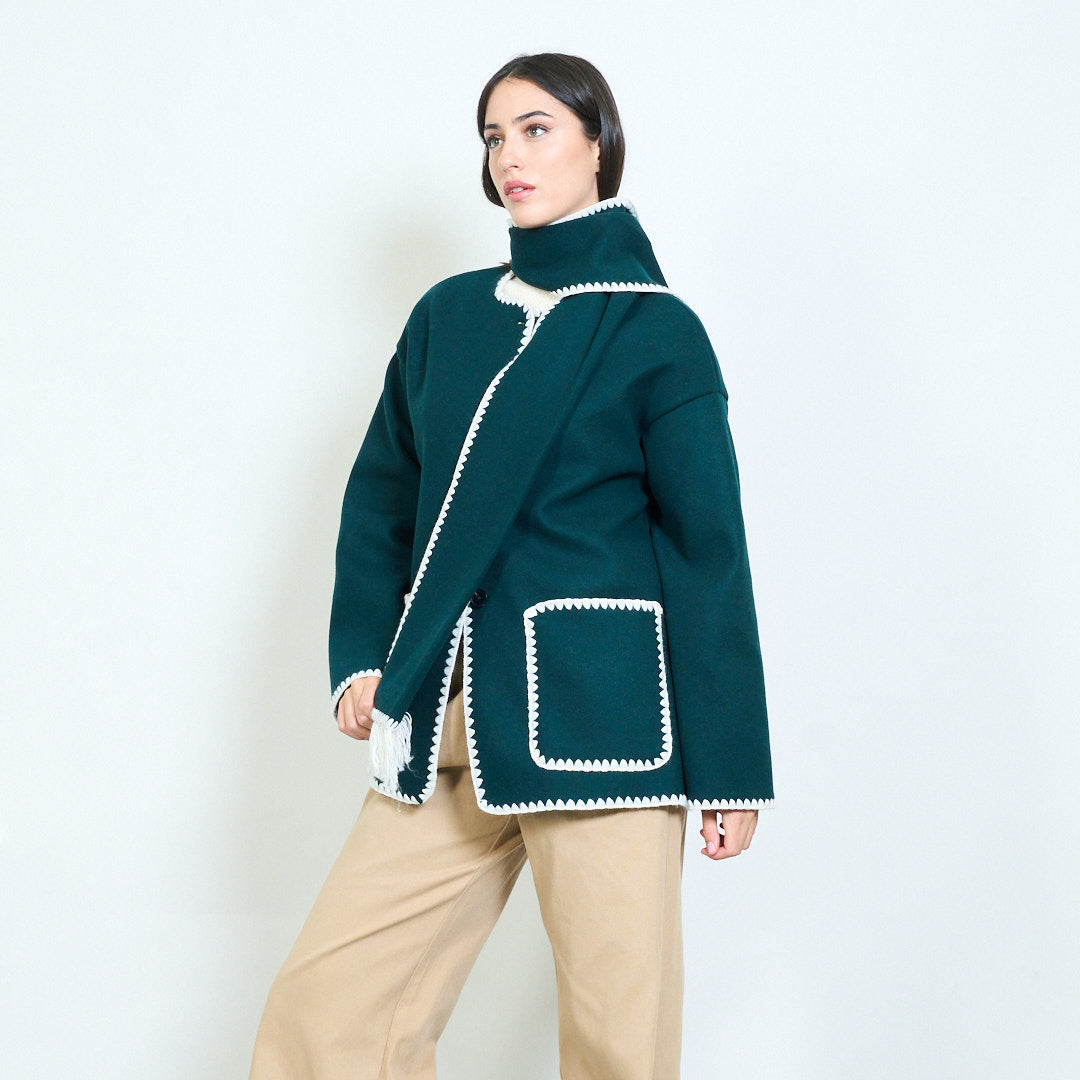 Cóta póca Baile Átha Troim scalloped le scairf ceangailte mórdhíola