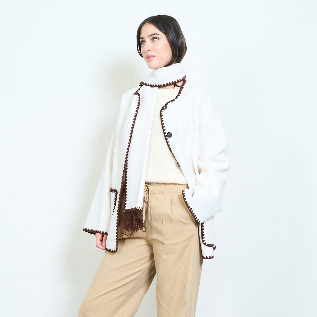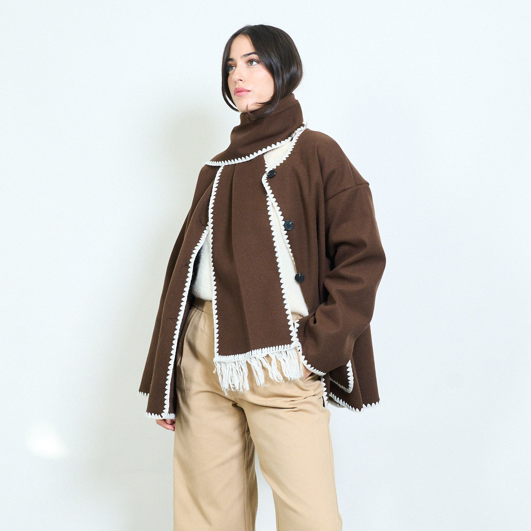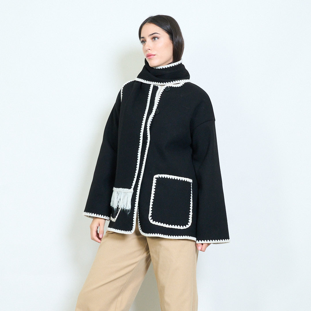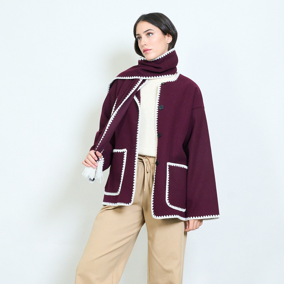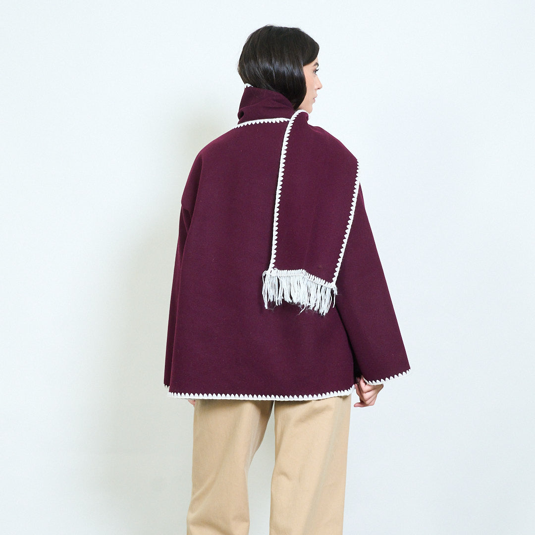 Cóta póca Baile Átha Troim scalloped le scairf ceangailte mórdhíola