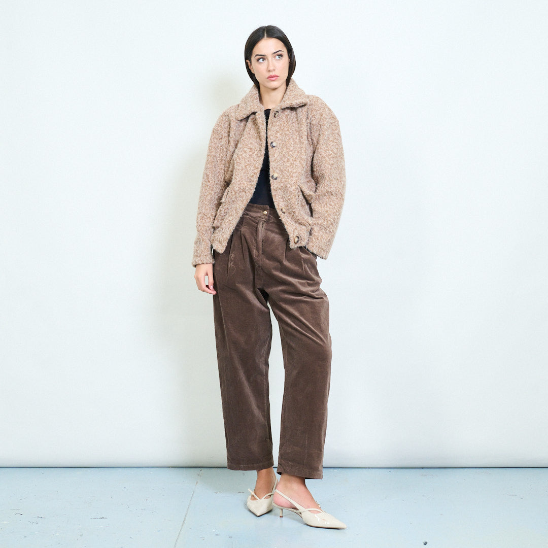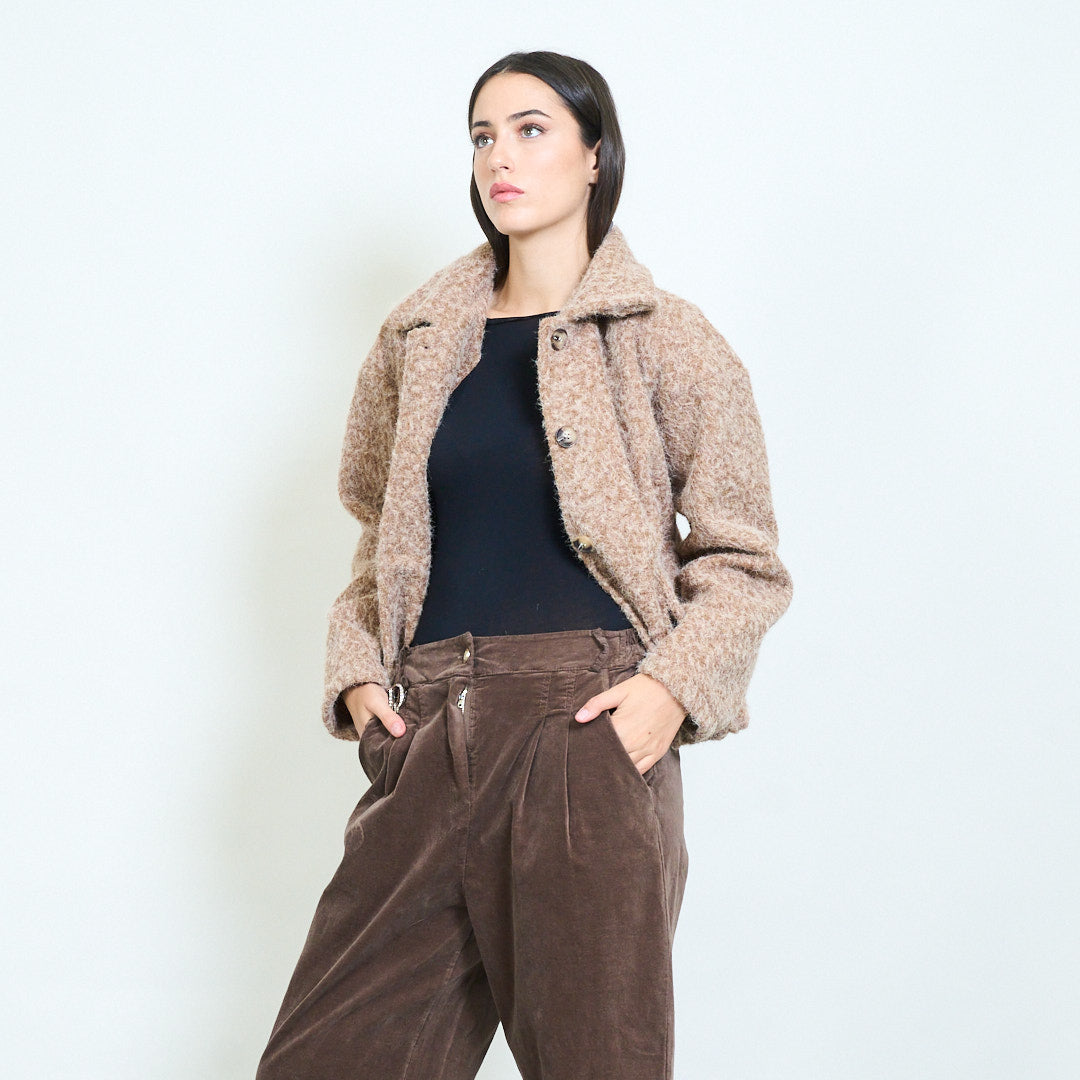 Seaicéad cnaipe cropped boucle uigeachta mórdhíola