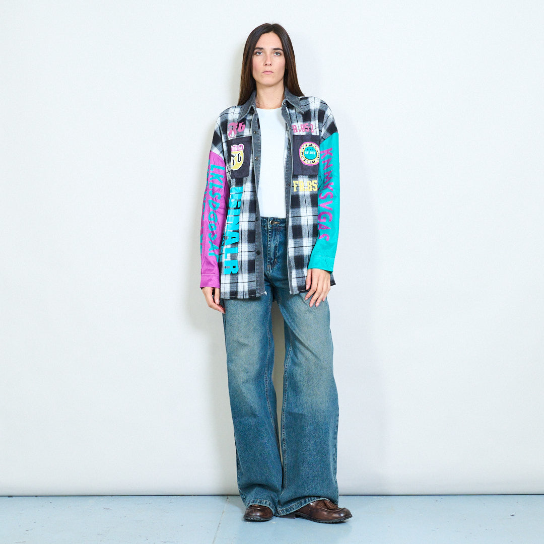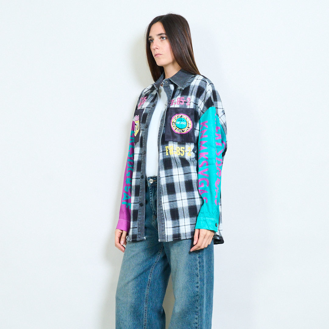 Jacket Léine ró -mhór -bhreacacha grafaicí Checkered Checkered