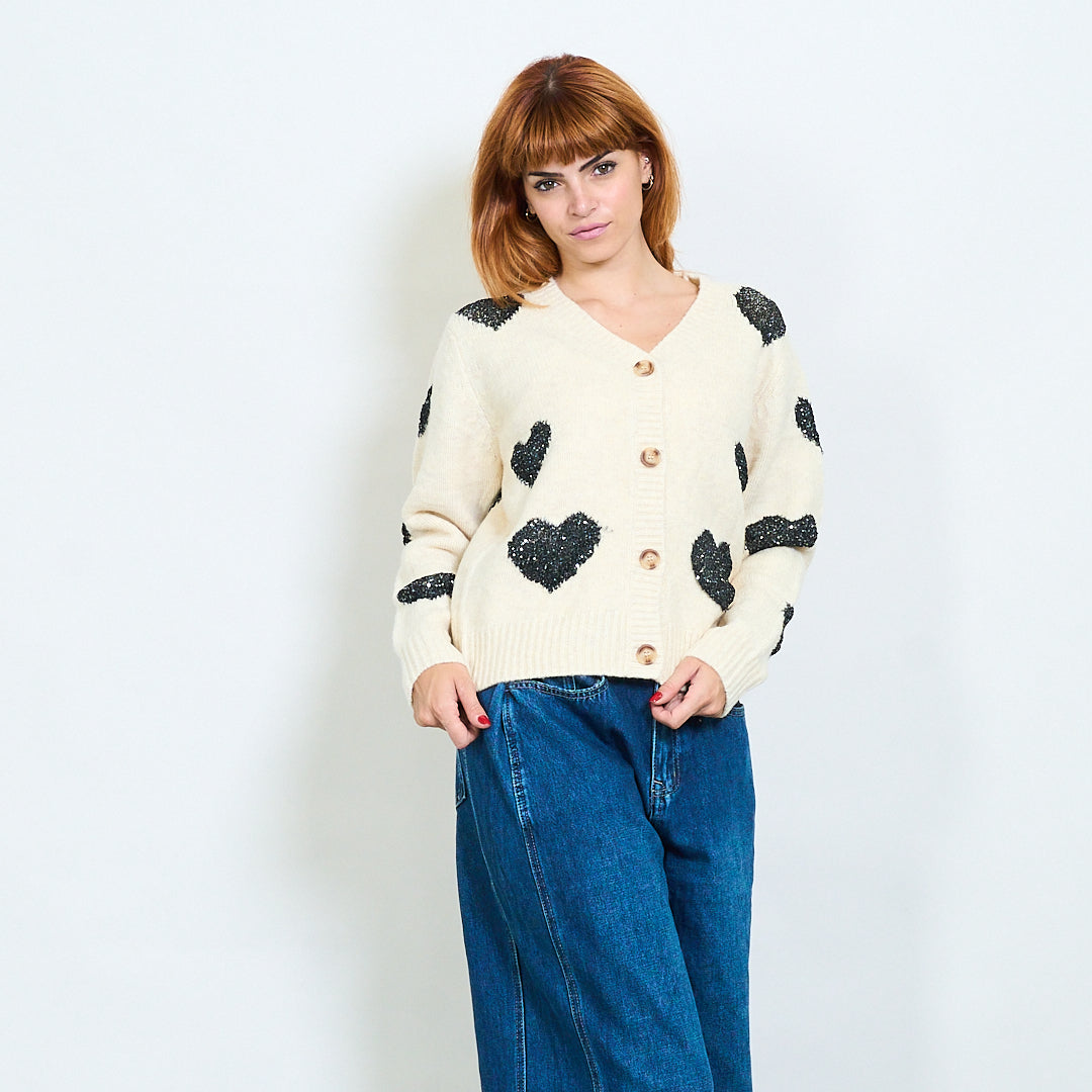 Cnaipe Móitíf Chroí Sparkly Cardigan mórdhíola