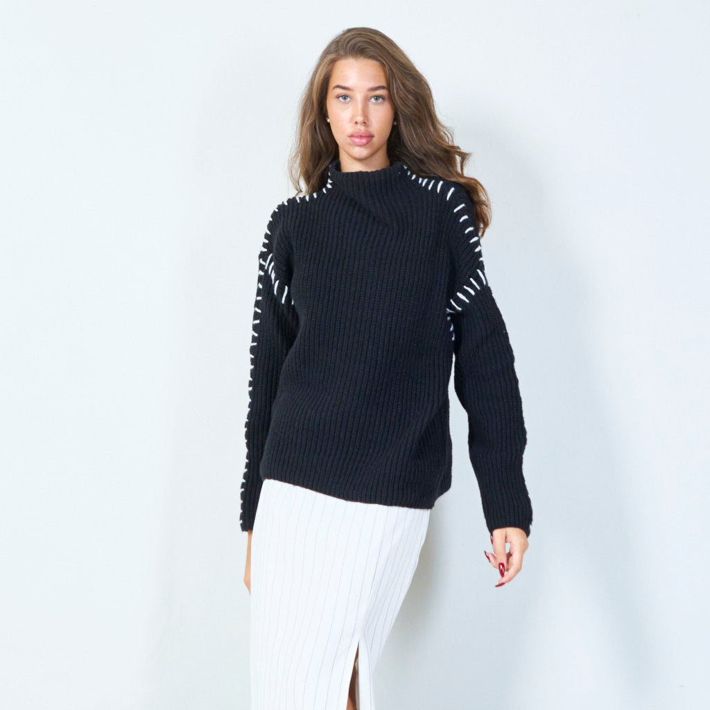 Geansaí mórdhíola cniotáilte muineál ard