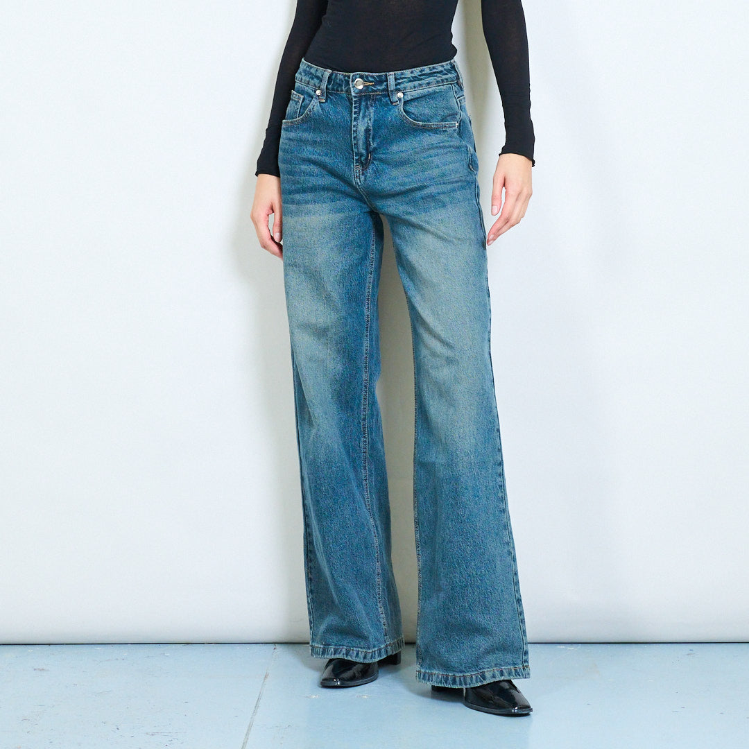 Jeans Denim Leathan Clasaiceach Ard -Chlasaiceach Mórdhíola