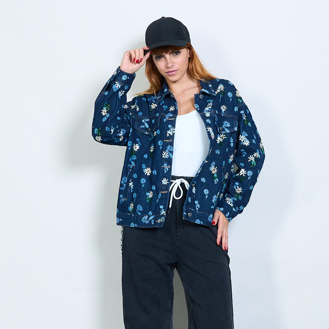 Pearl Bróidnithe Floral Embellished Jacket Denim Mórdhíola