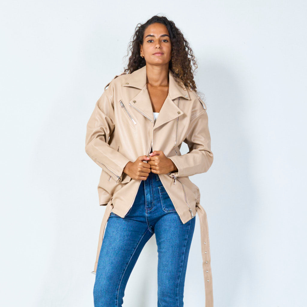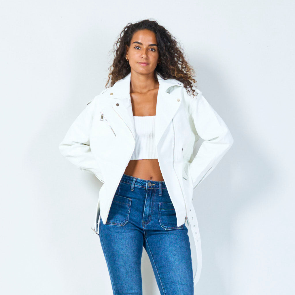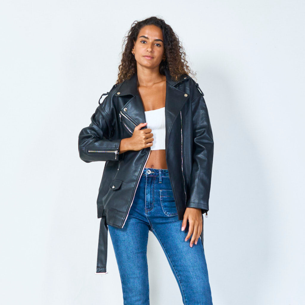 Seaicéad biker clasaiceach le sonraí zipper mórdhíola