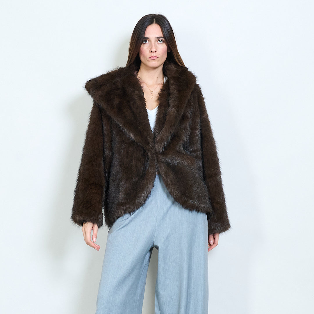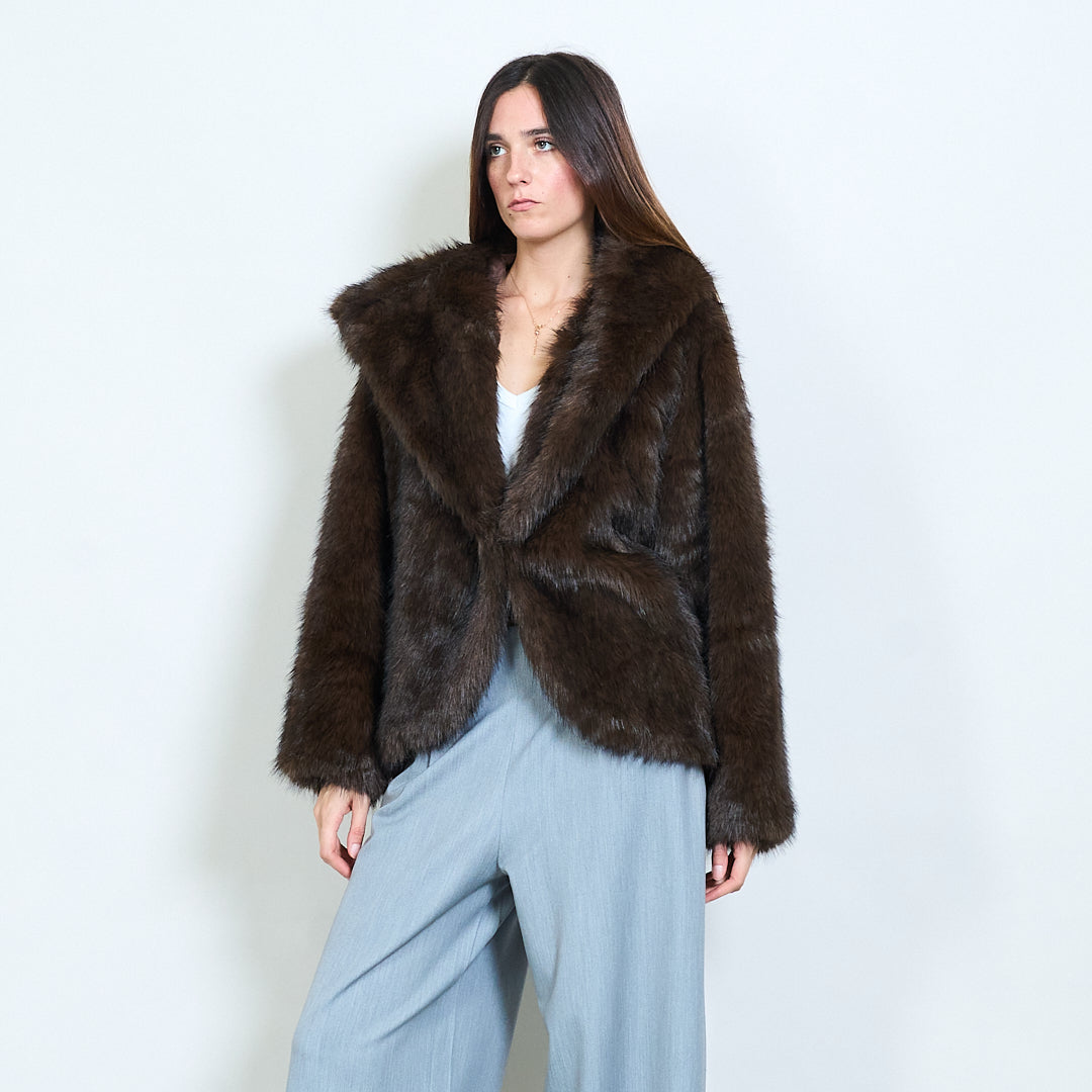 Seaicéad cochall fur plush faux le dearadh tosaigh oscailte mórdhíola