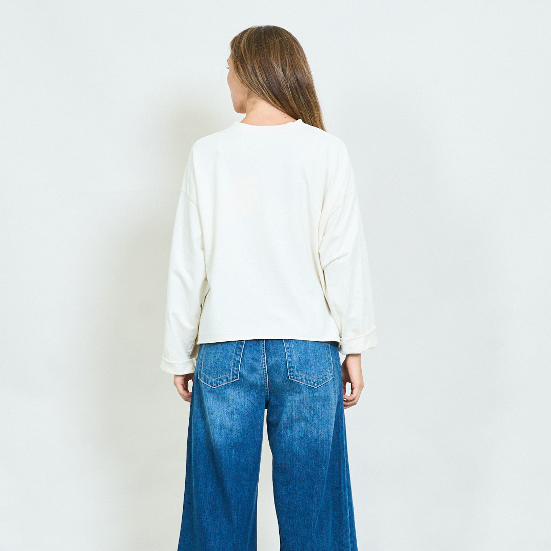 - Sweatshirt oiriúnach socair le guaillí titim