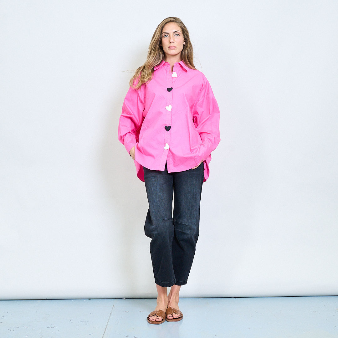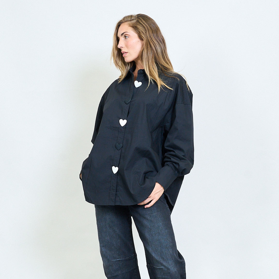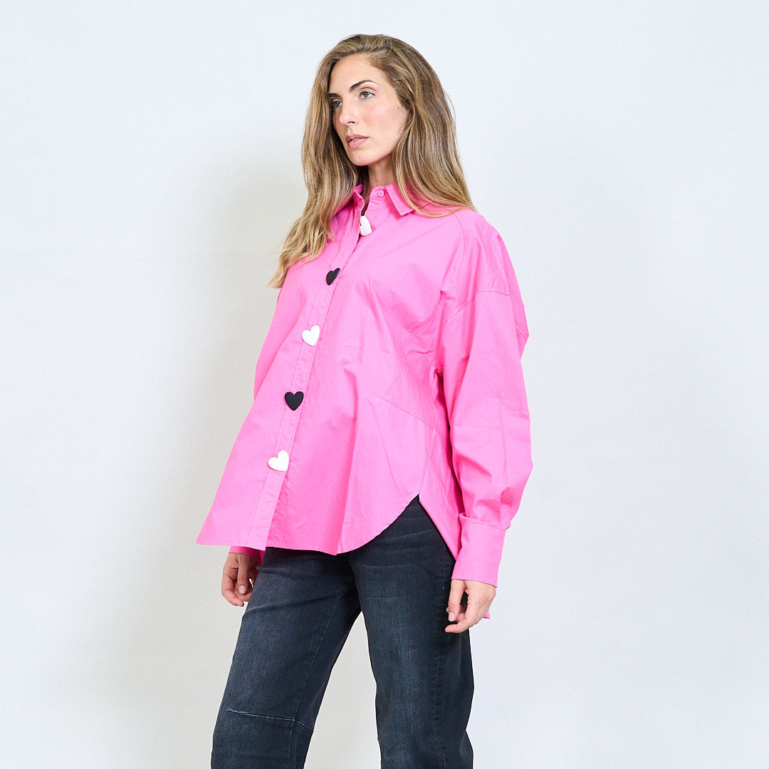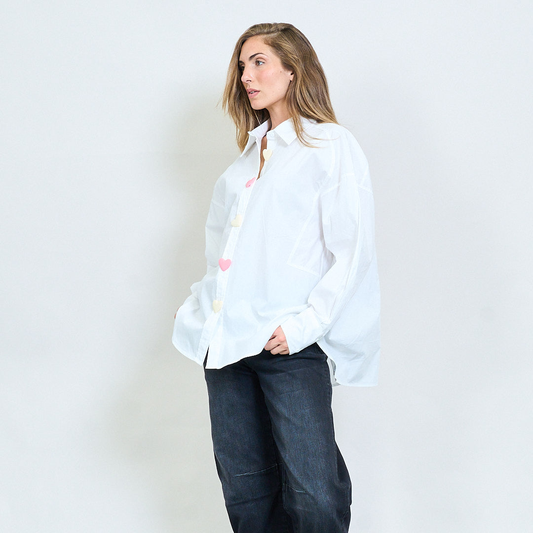 Camicia abbottonata con bottoni di contrasto a forma di cuore all'ingrosso