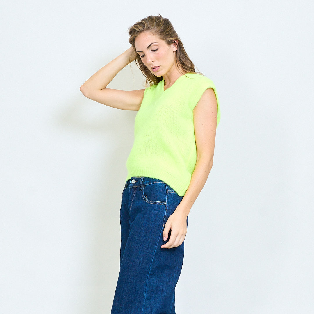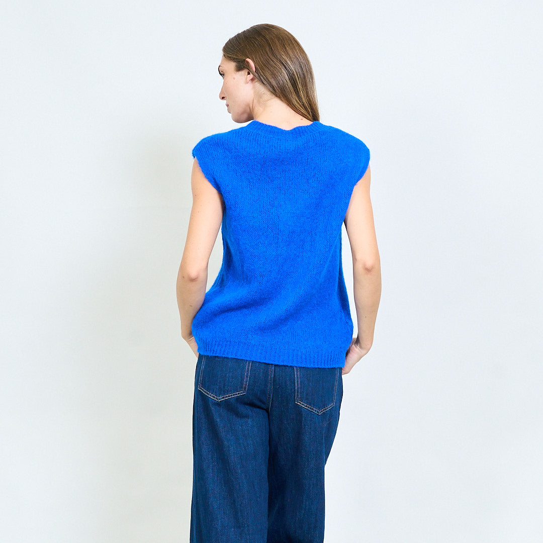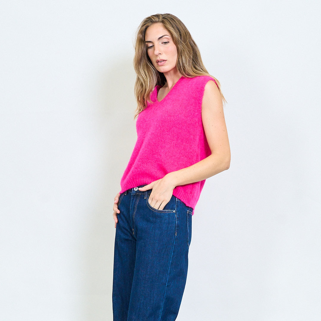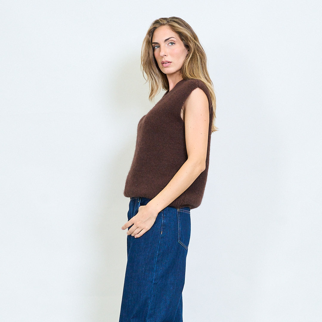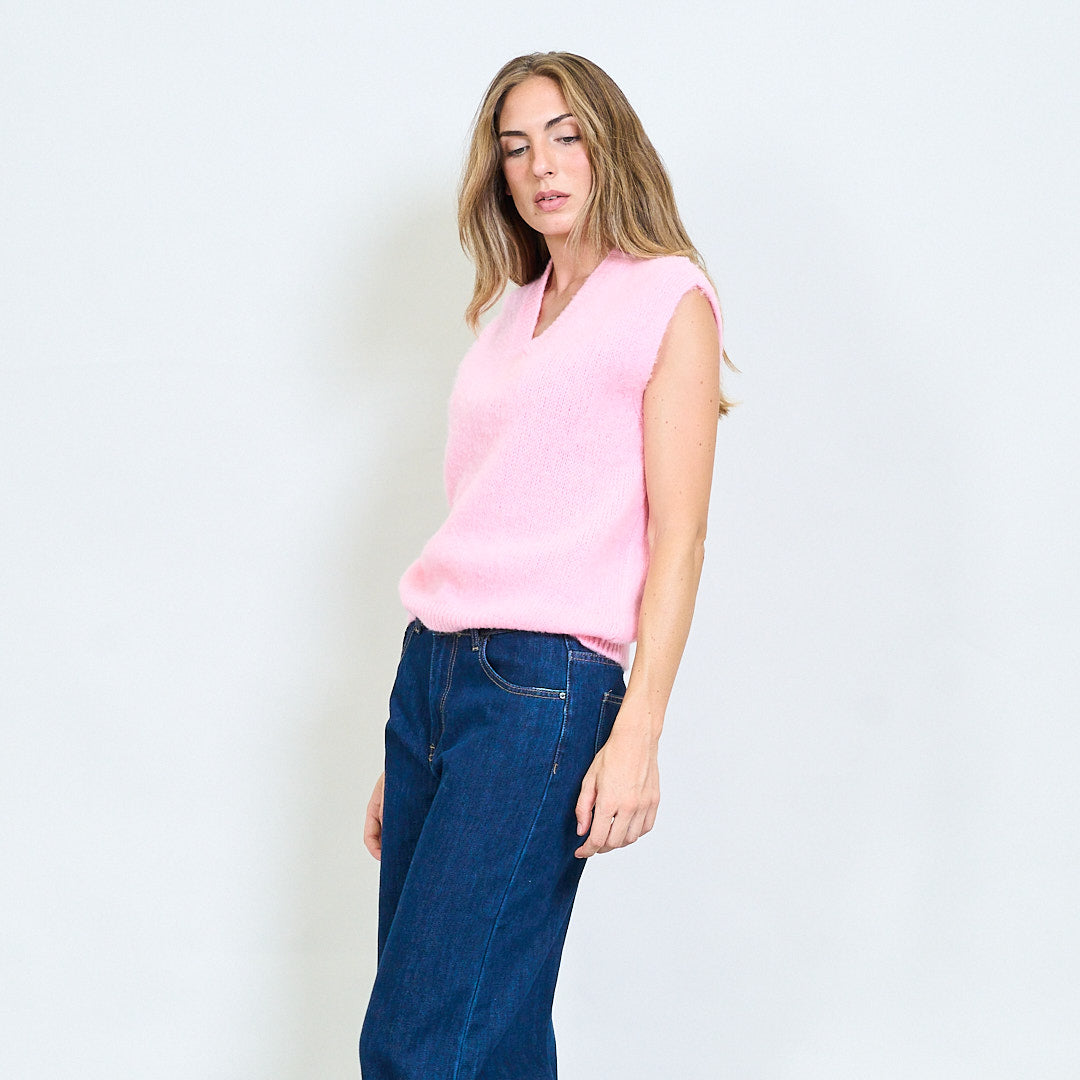 Giubbotto in maglia senza maniche fuzzy con bordi a coste all'ingrosso
