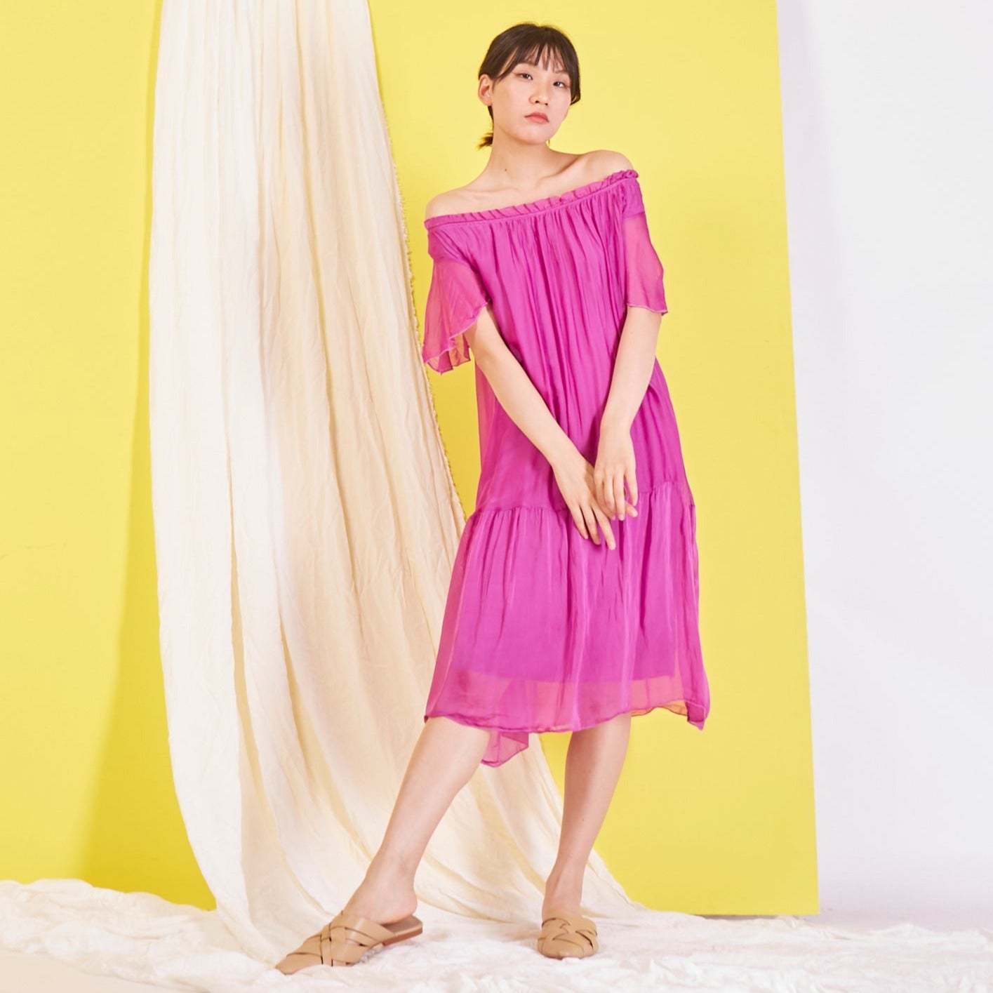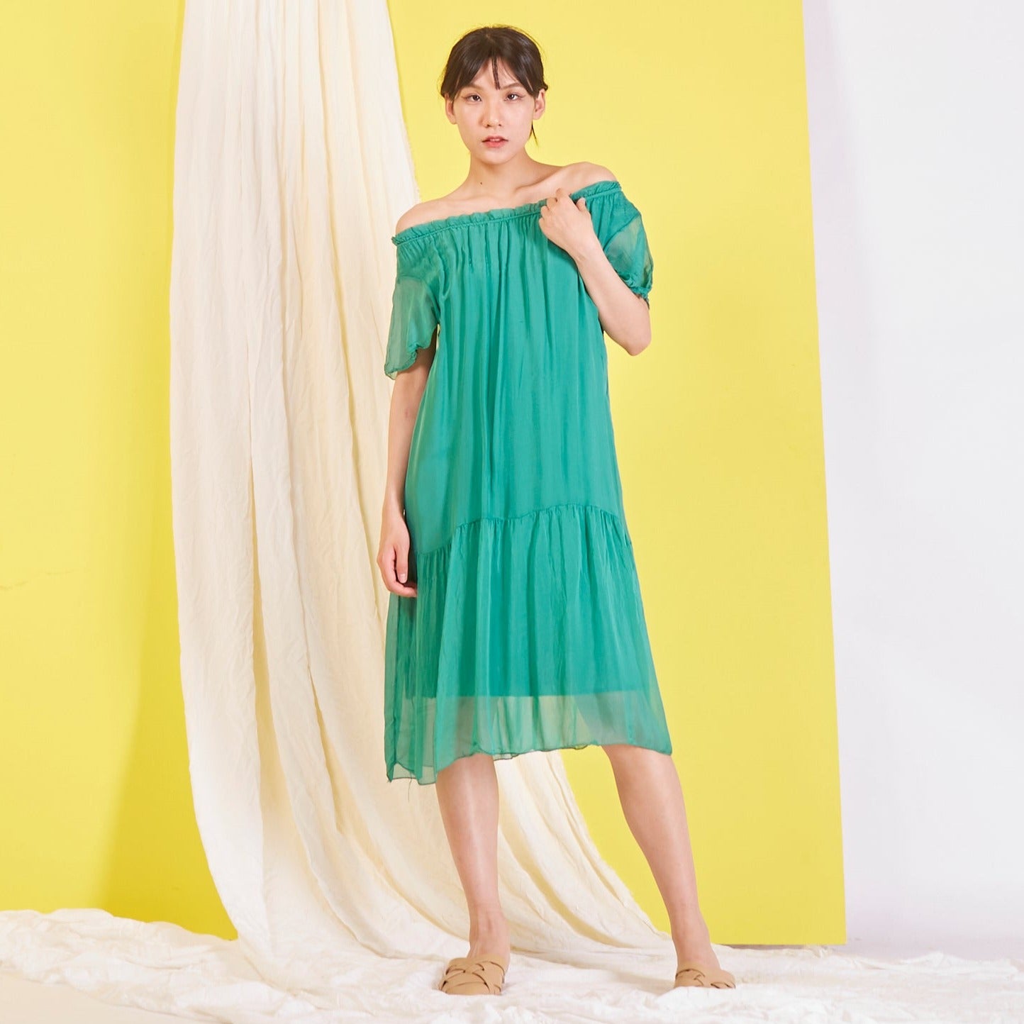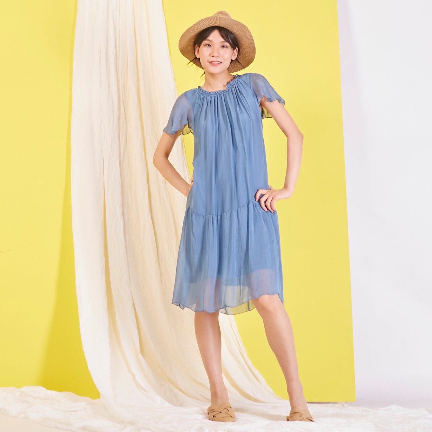Abito a collo elastico in chiffon in seta all'ingrosso