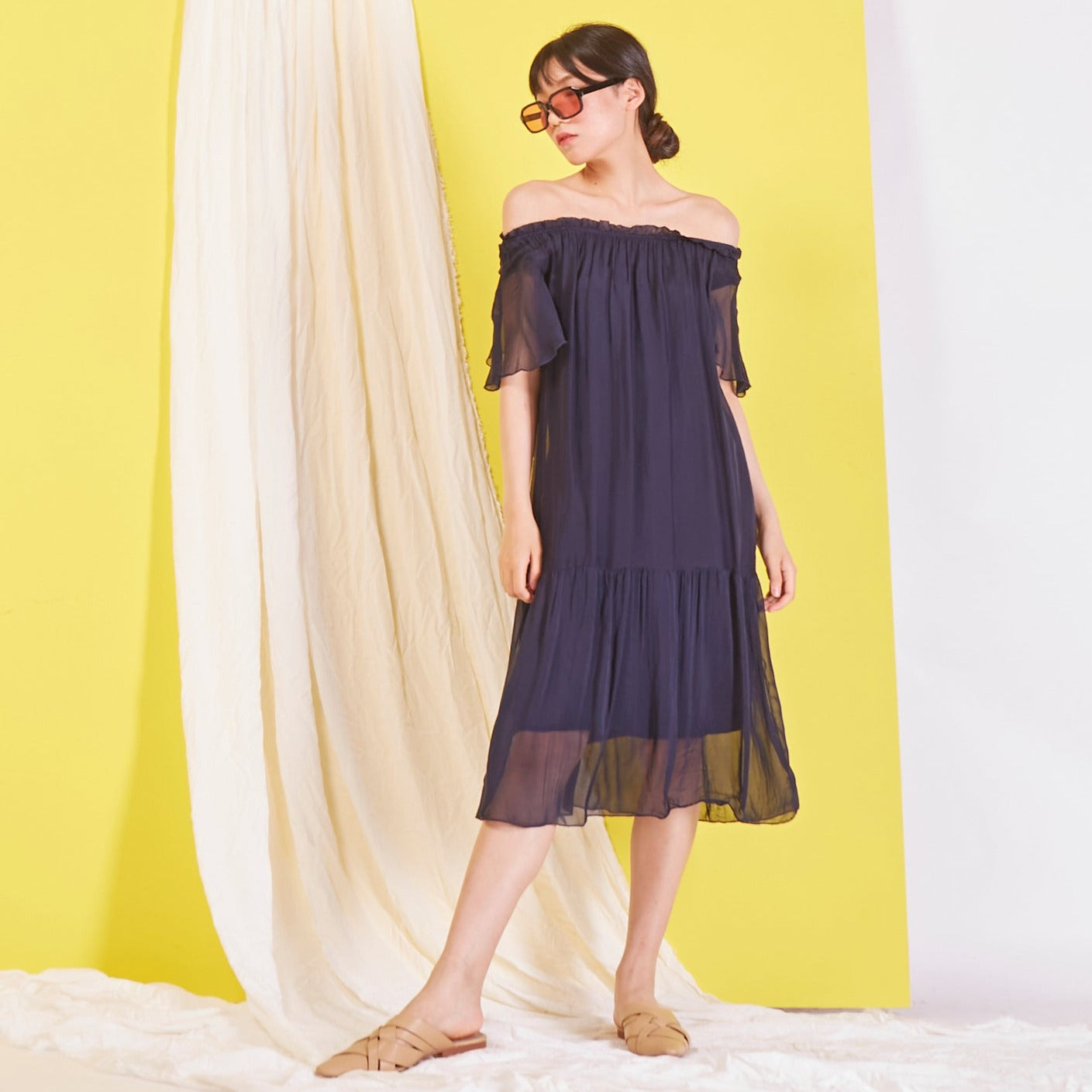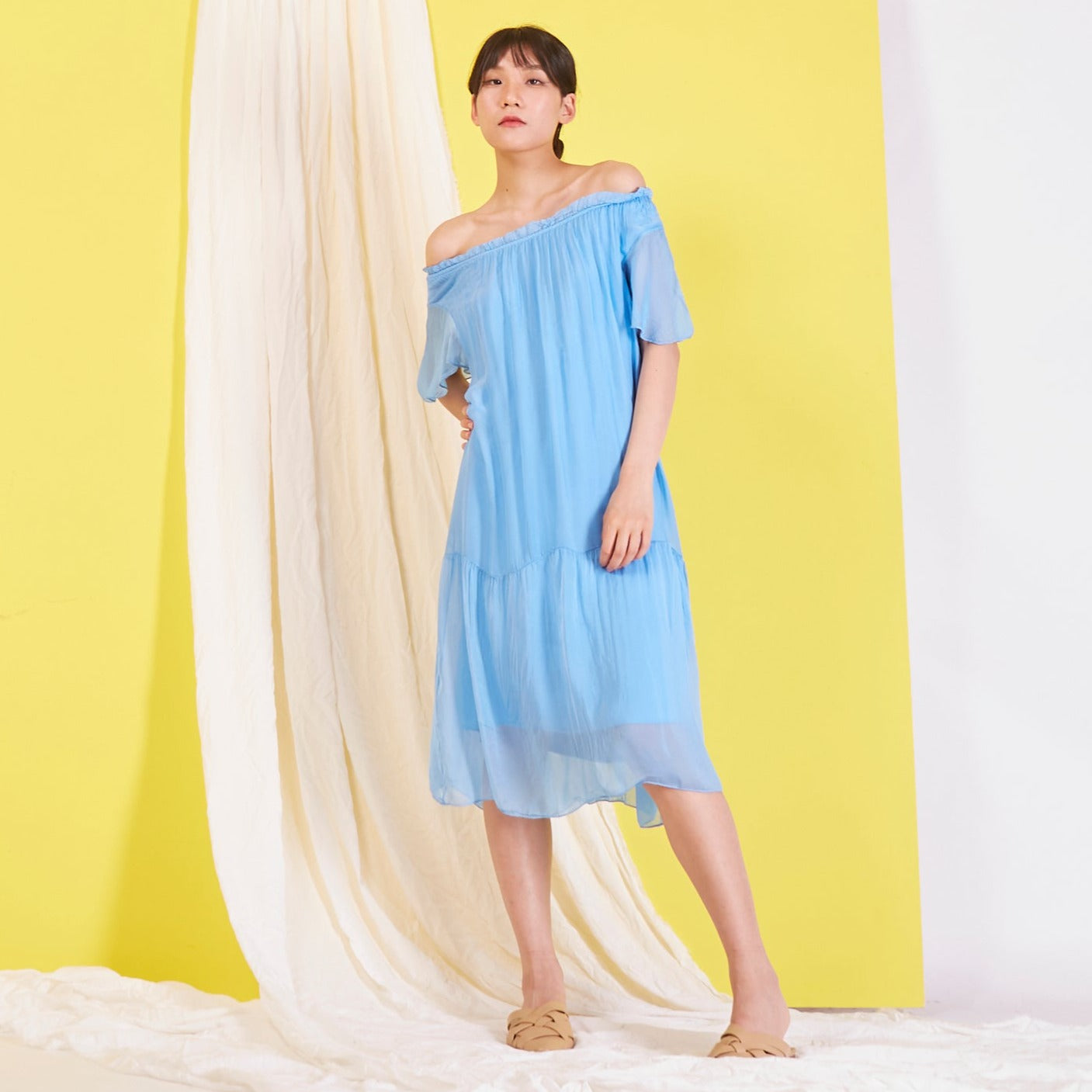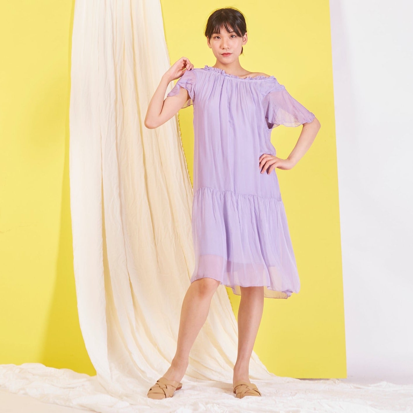 Abito a collo elastico in chiffon in seta all'ingrosso