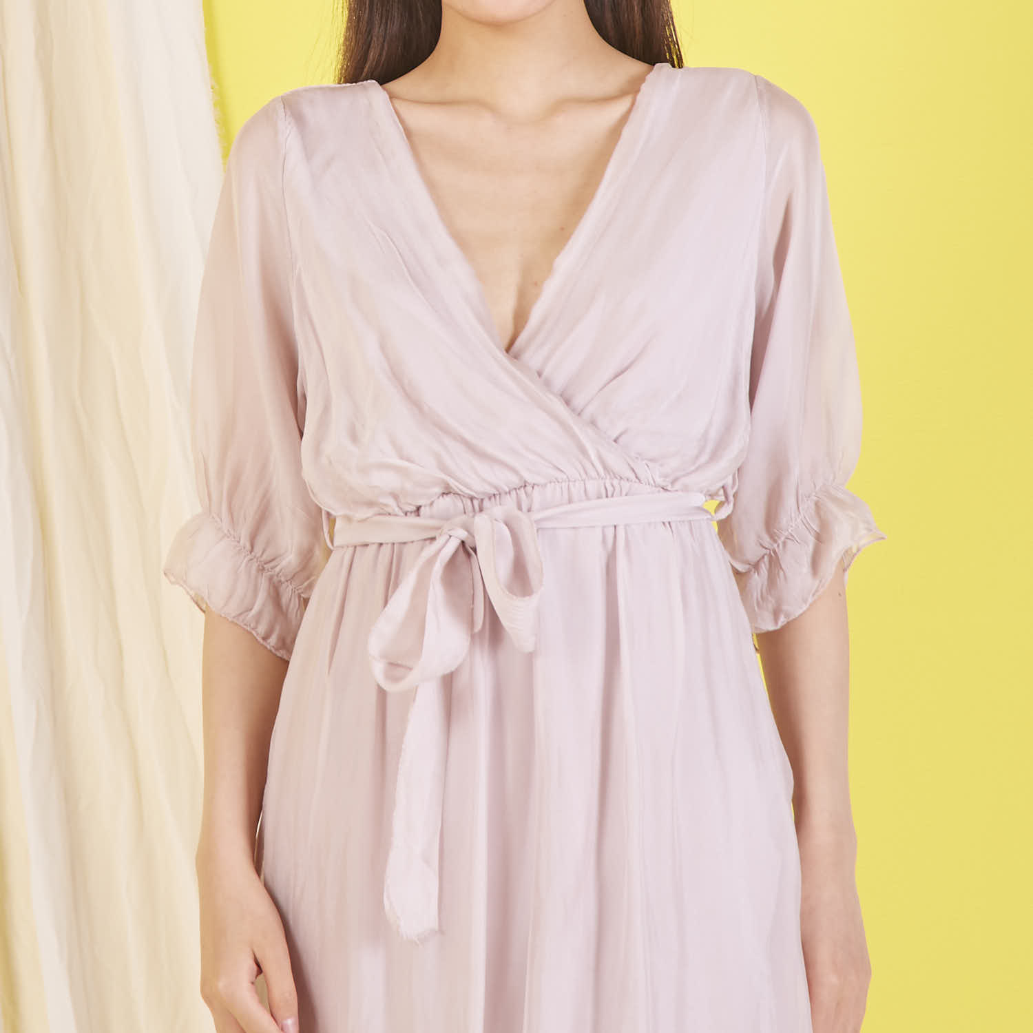 Abito midi chiffon midi in seta all'ingrosso con scollo a V incrocio
