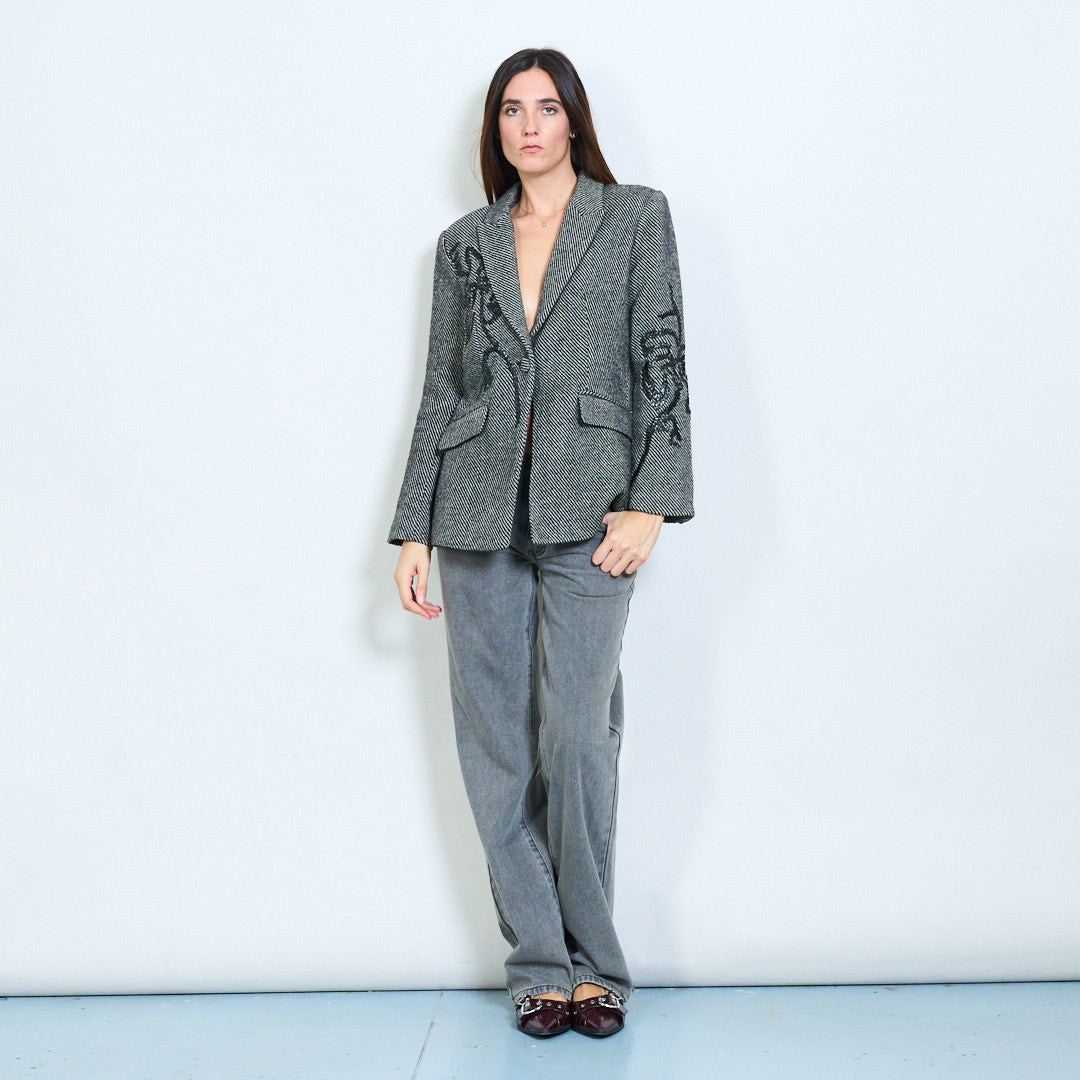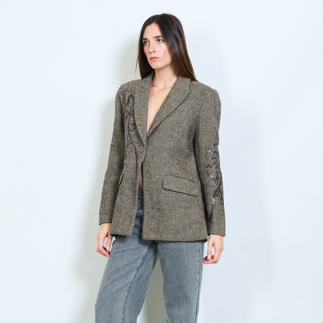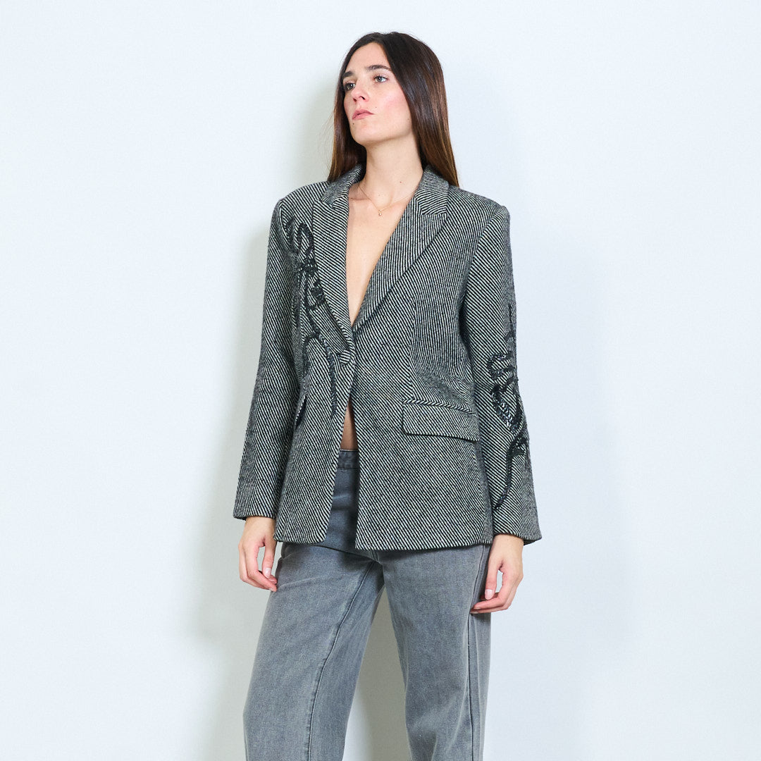 Blazer su misura modellata con abbellimento floreale all'ingrosso
