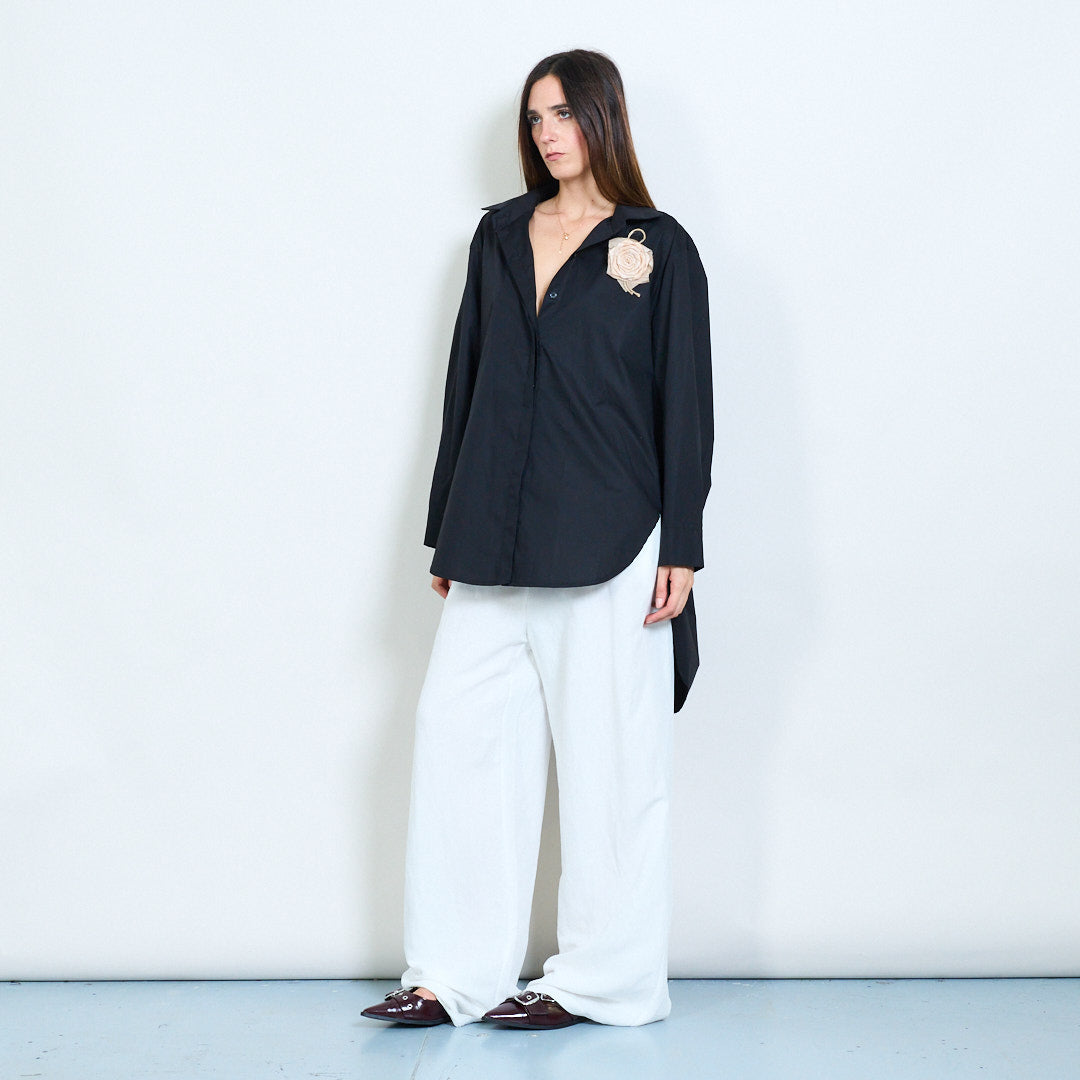 Camicia a maniche lunghe applicazioni floreali all'ingrosso