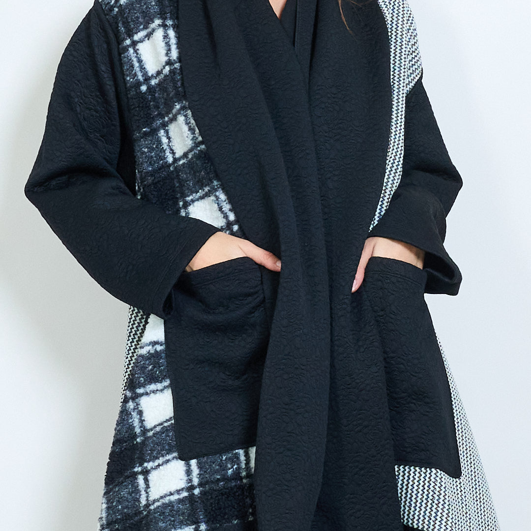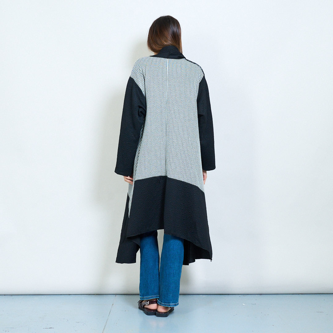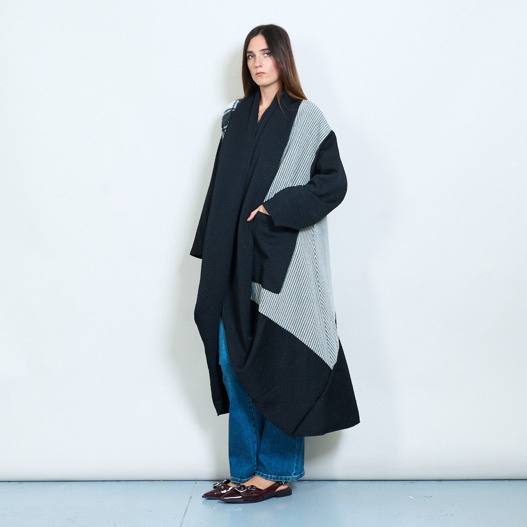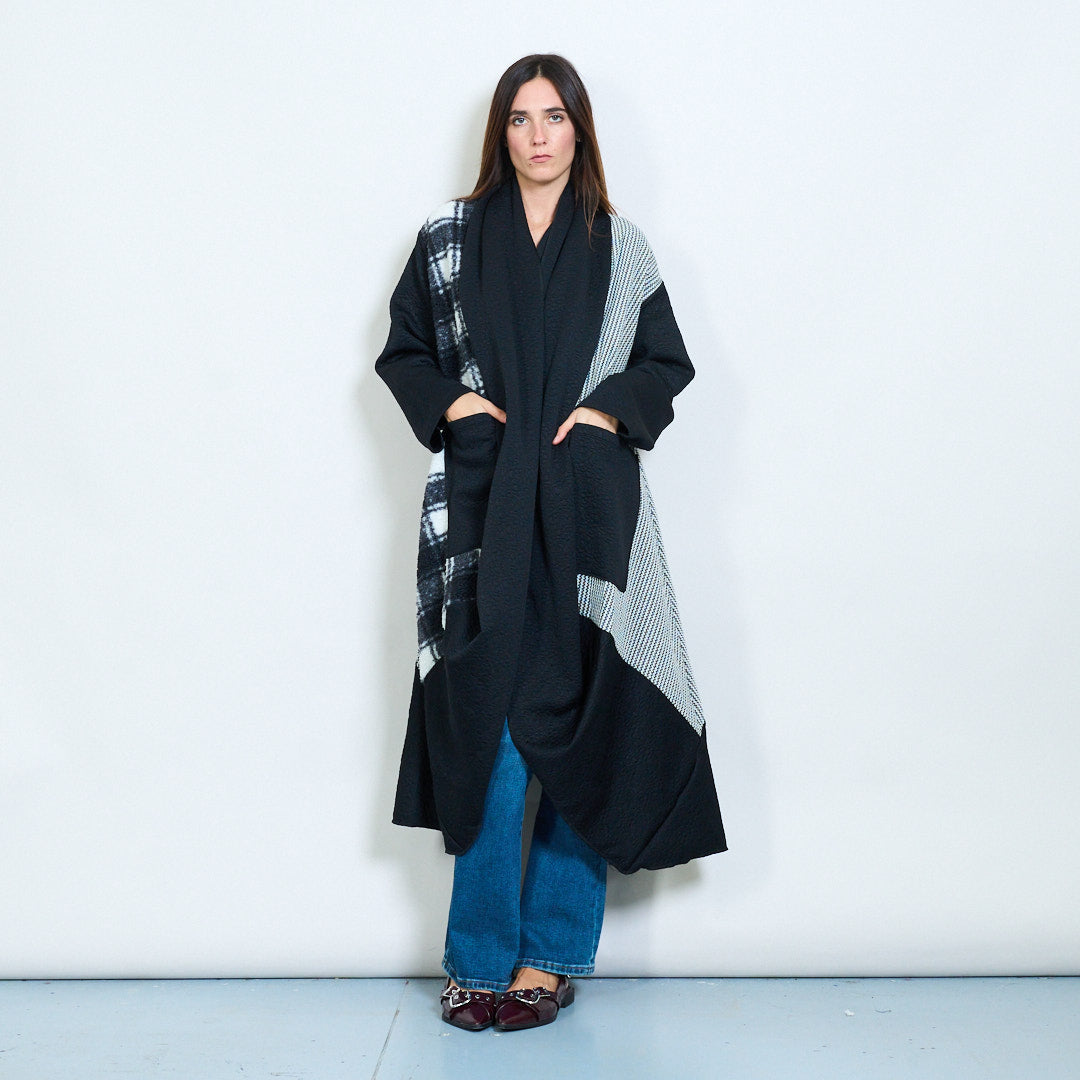 Cappotto a lungo patchwork di grandi dimensioni con silhouette drappeggiata all'ingrosso
