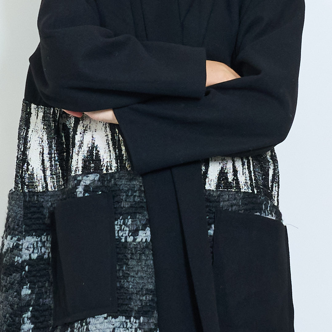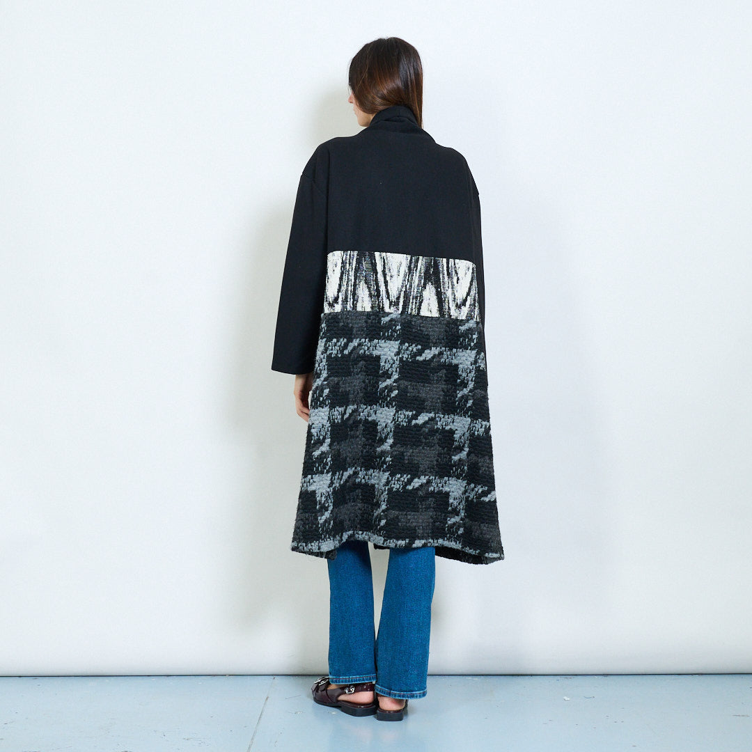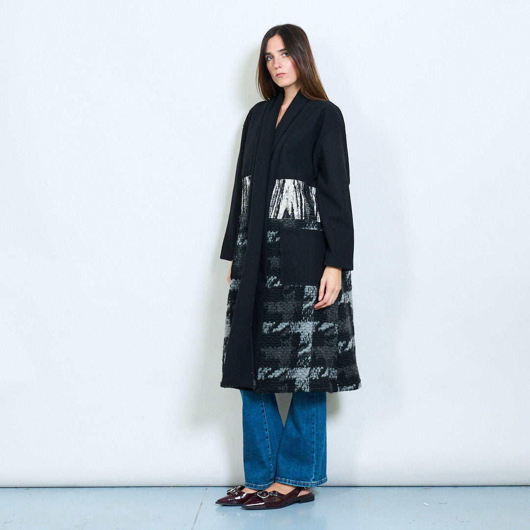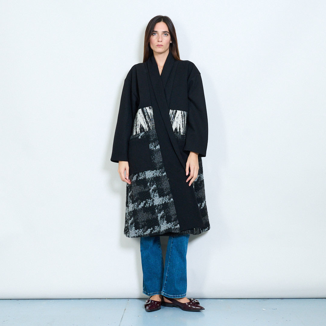 Cappotto avvolgente a lungo con motivi monocromo misti all'ingrosso