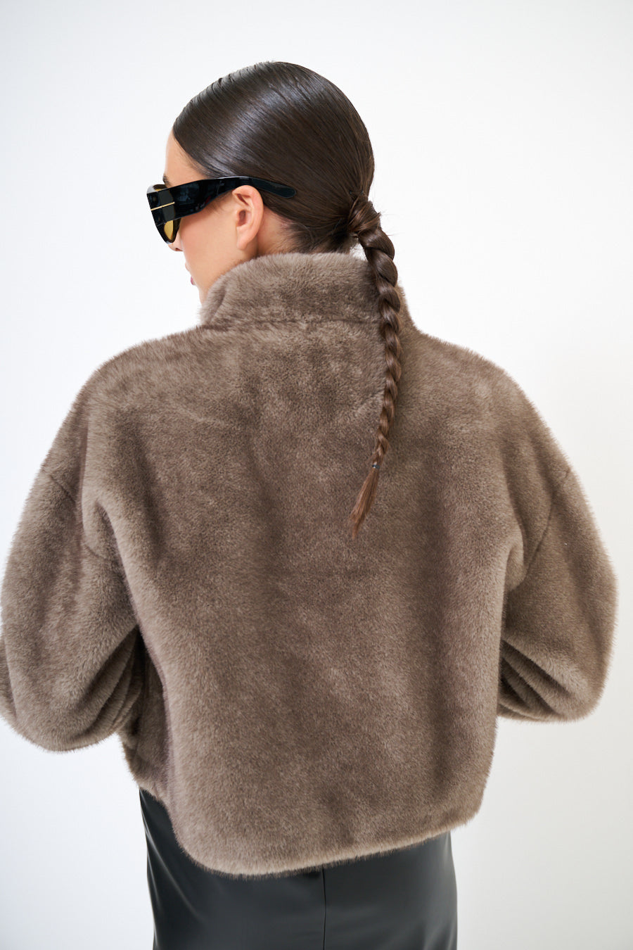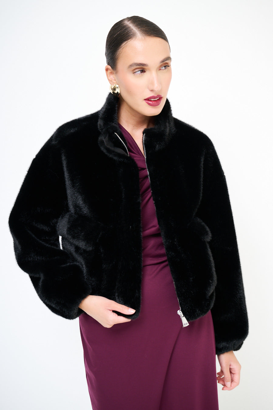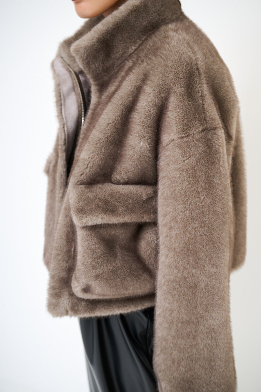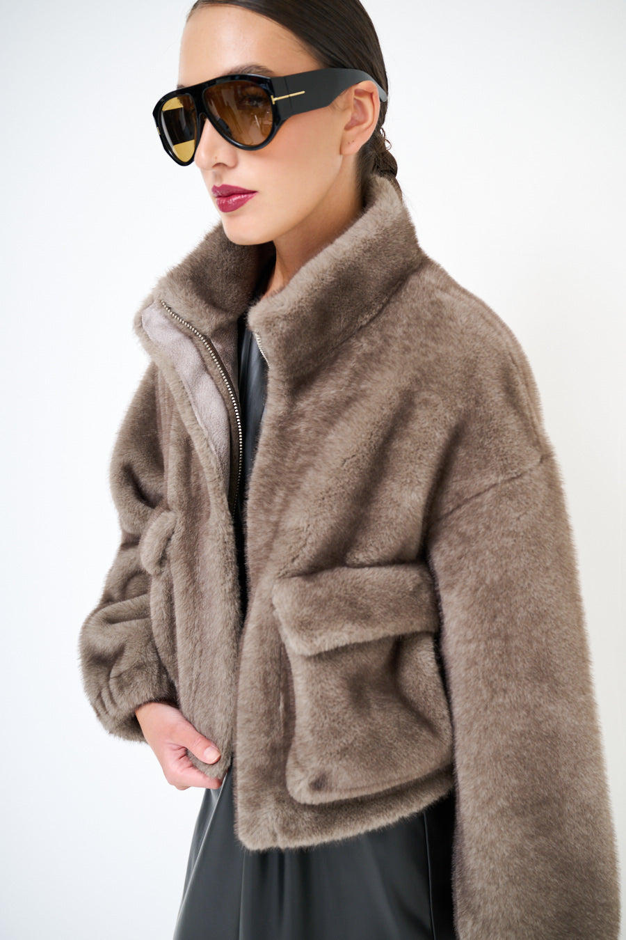 Cappotto di peluche con arricciatura anteriore zip all'ingrosso