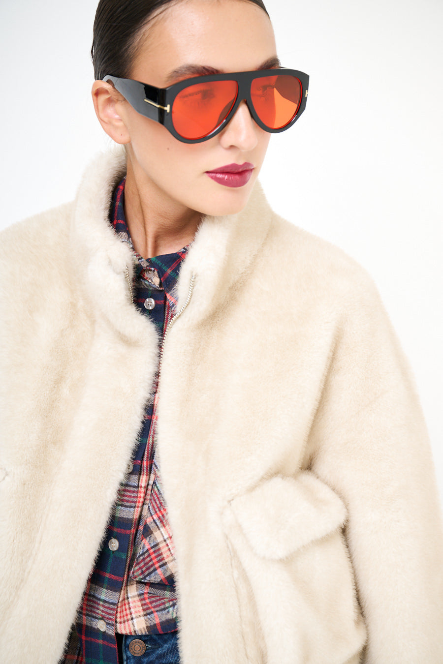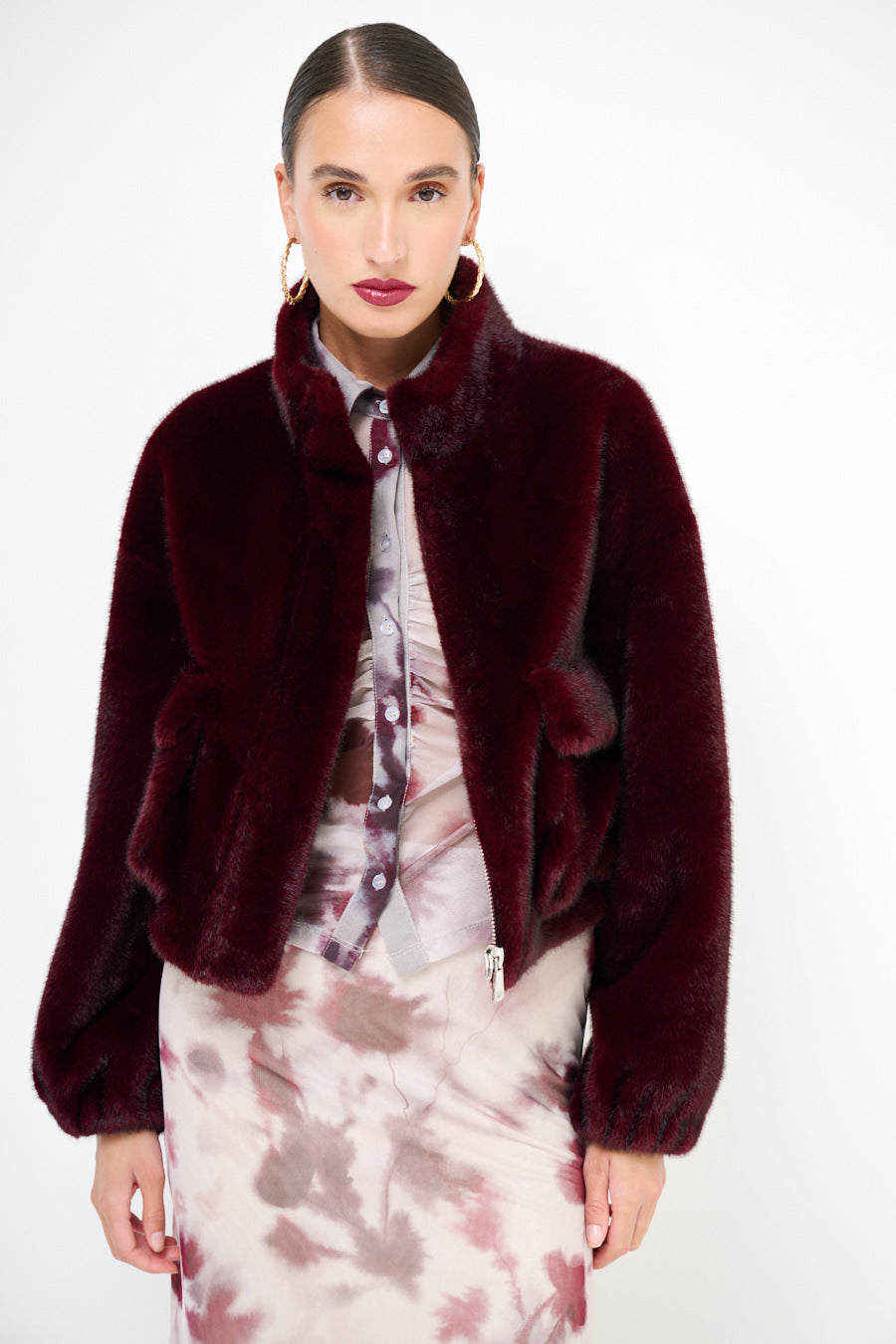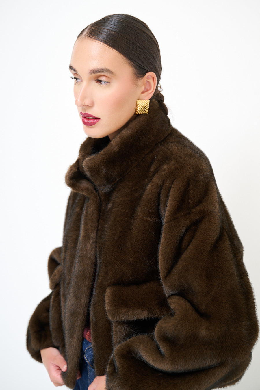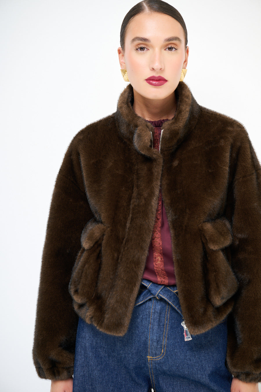 Cappotto di peluche con arricciatura anteriore zip all'ingrosso