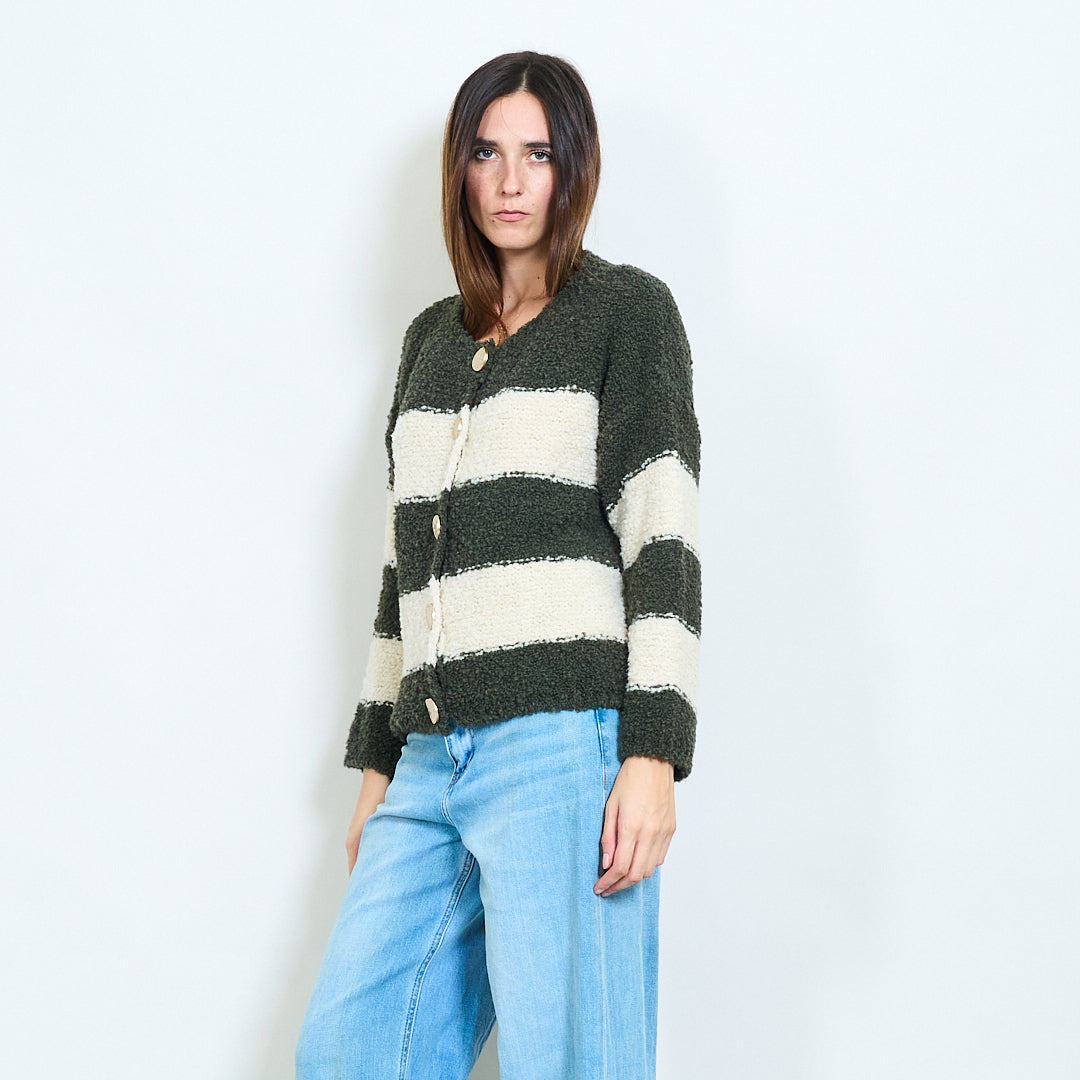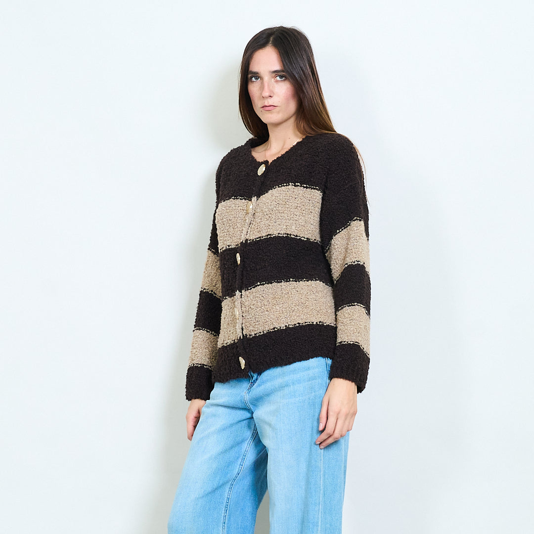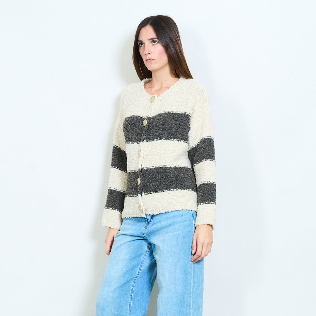 Cardigan a maglia a strisce testurizzate con pulsante anteriore all'ingrosso