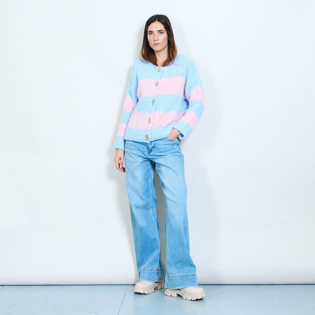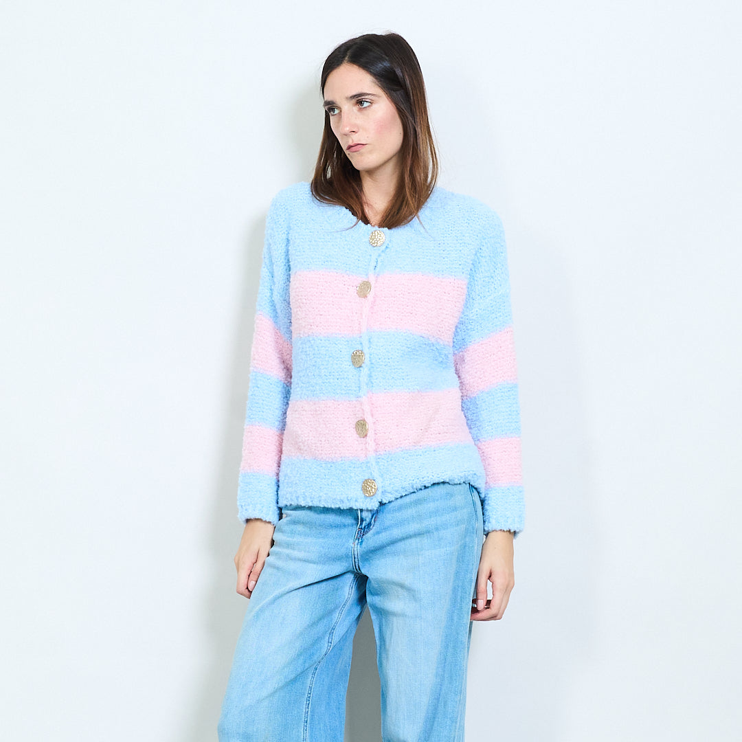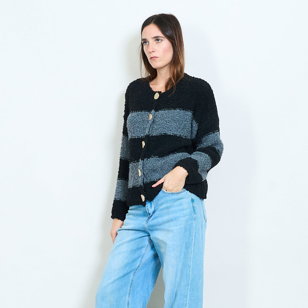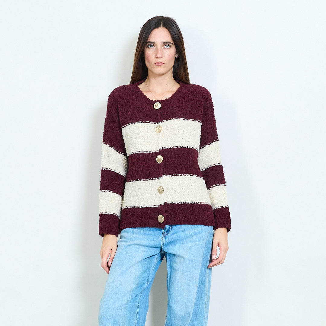 Cardigan a maglia a strisce testurizzate con pulsante anteriore all'ingrosso
