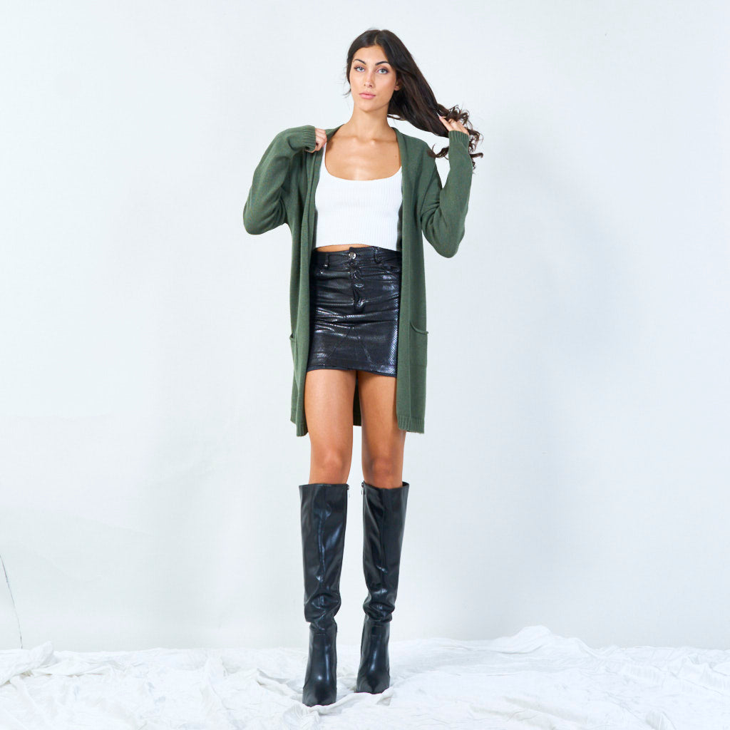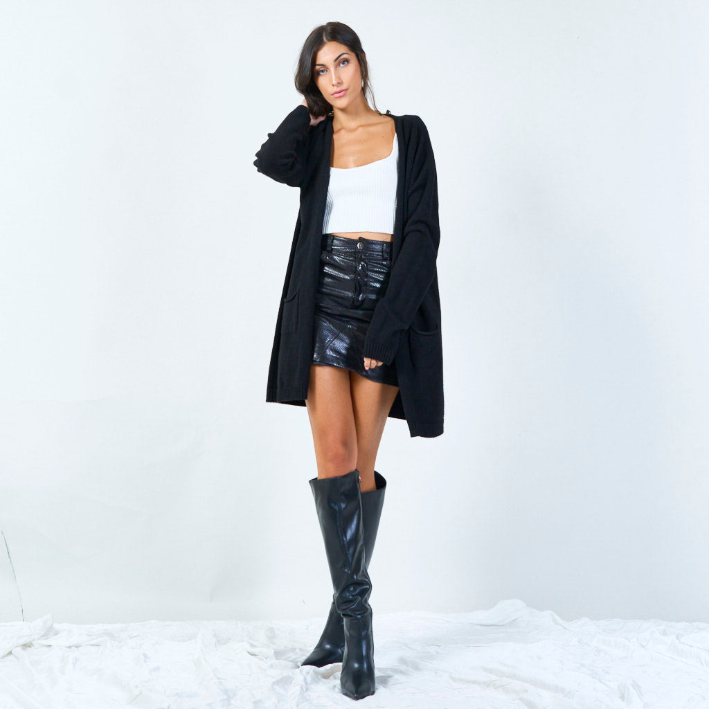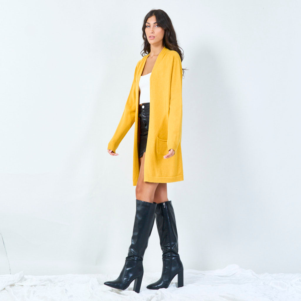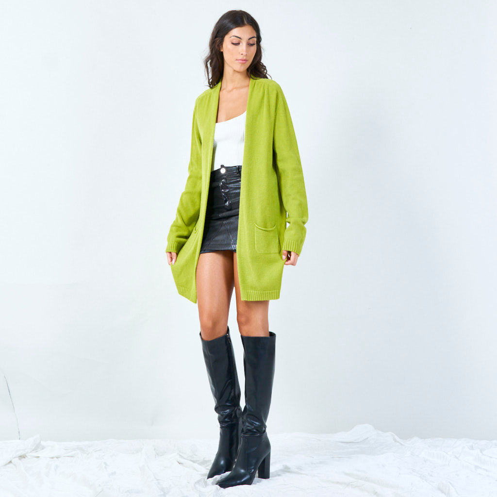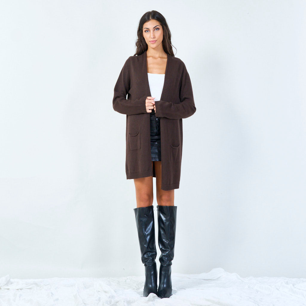 Cardigan lungo a faccia aperta con tasche all'ingrosso