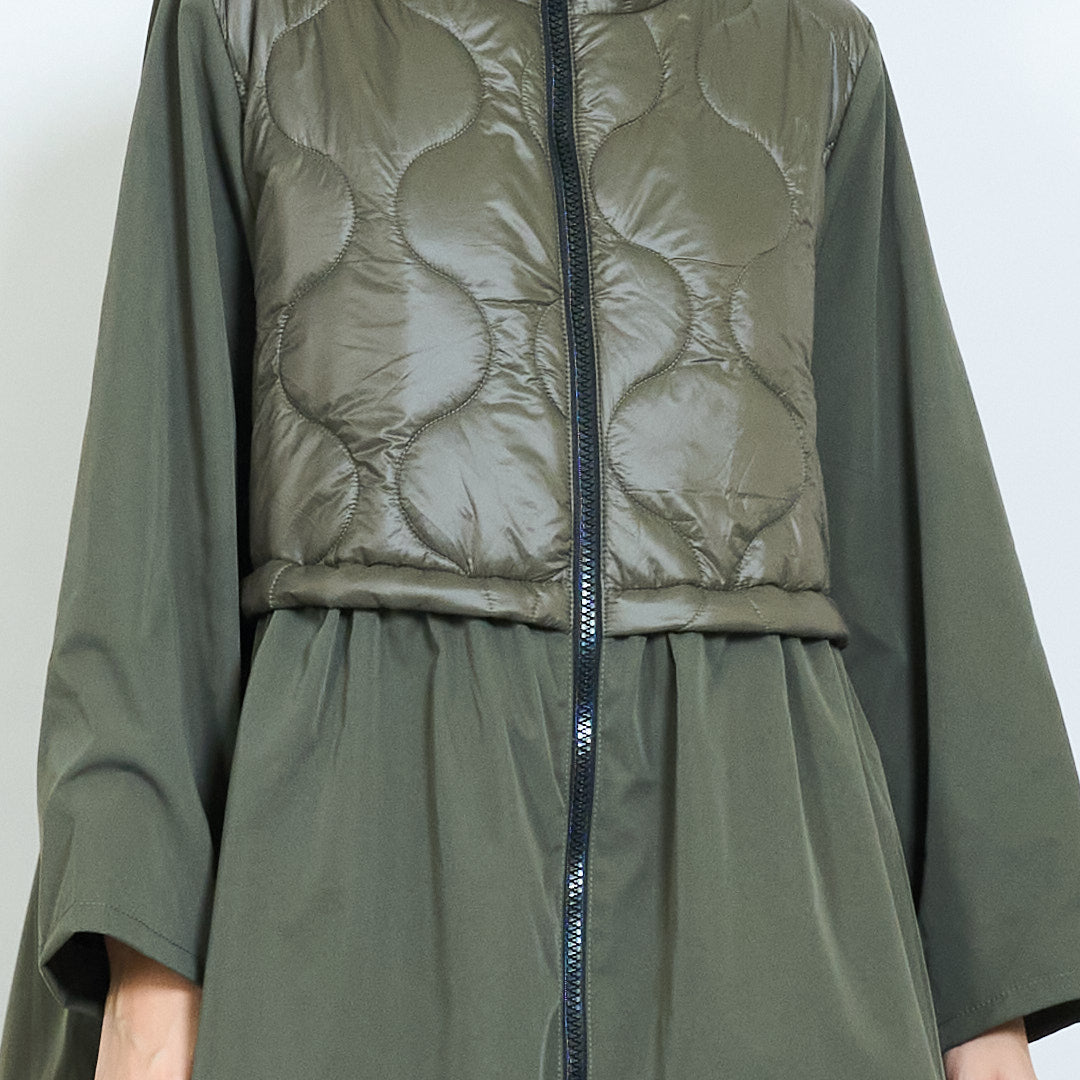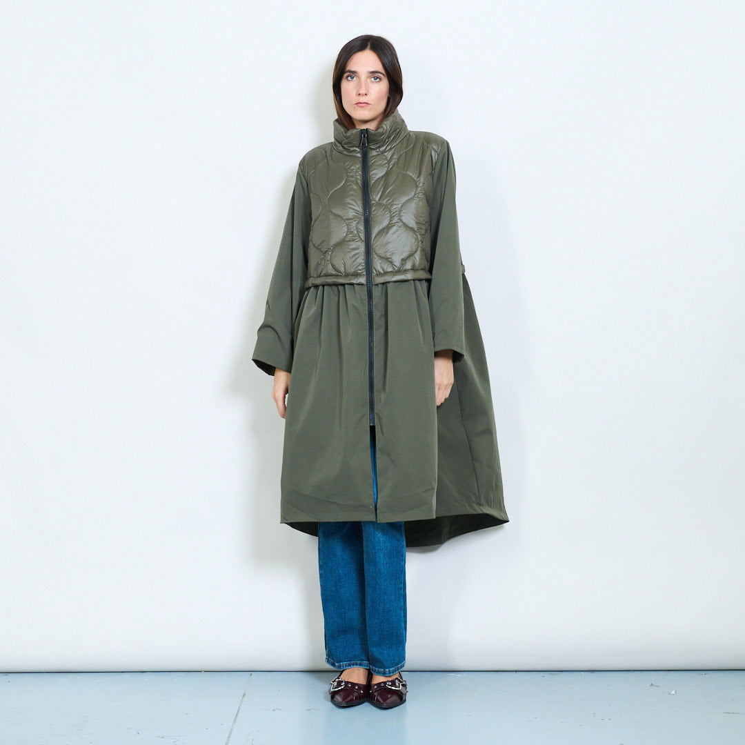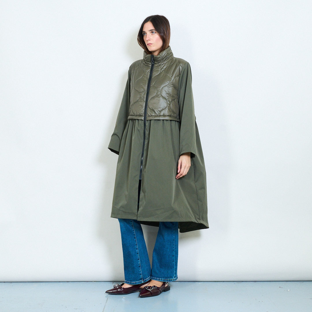 Coat a due toni con pannello trapuntato e chiusura zip all'ingrosso