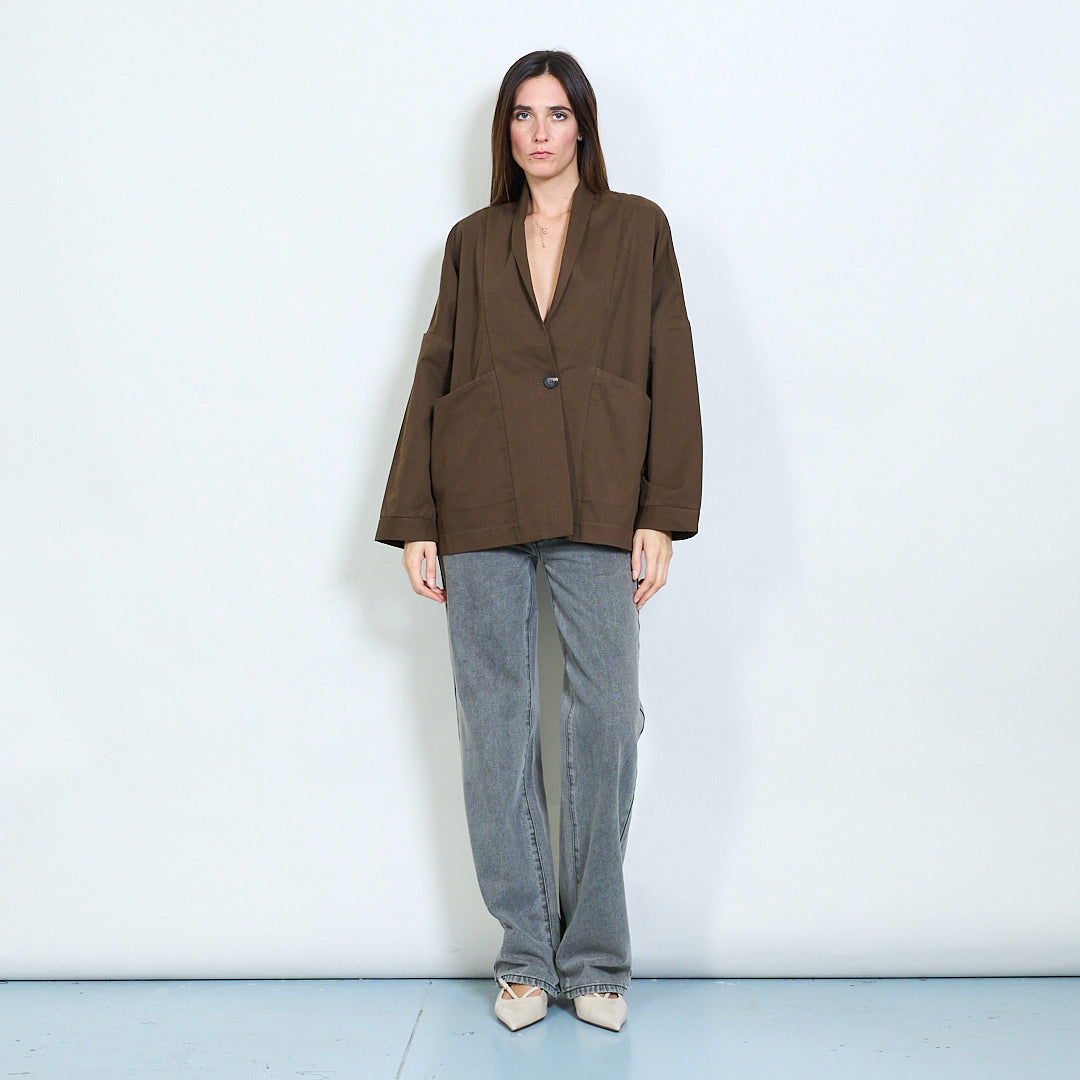 Giacca blazer in forma rilassata a manica lunga a bottone singolo all'ingrosso