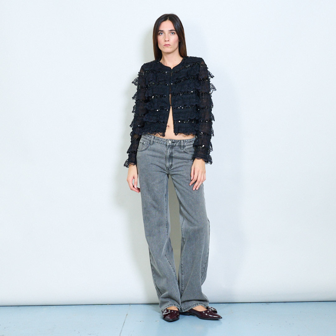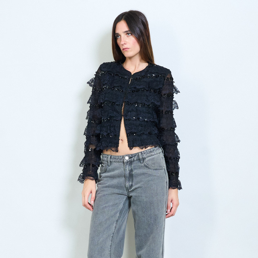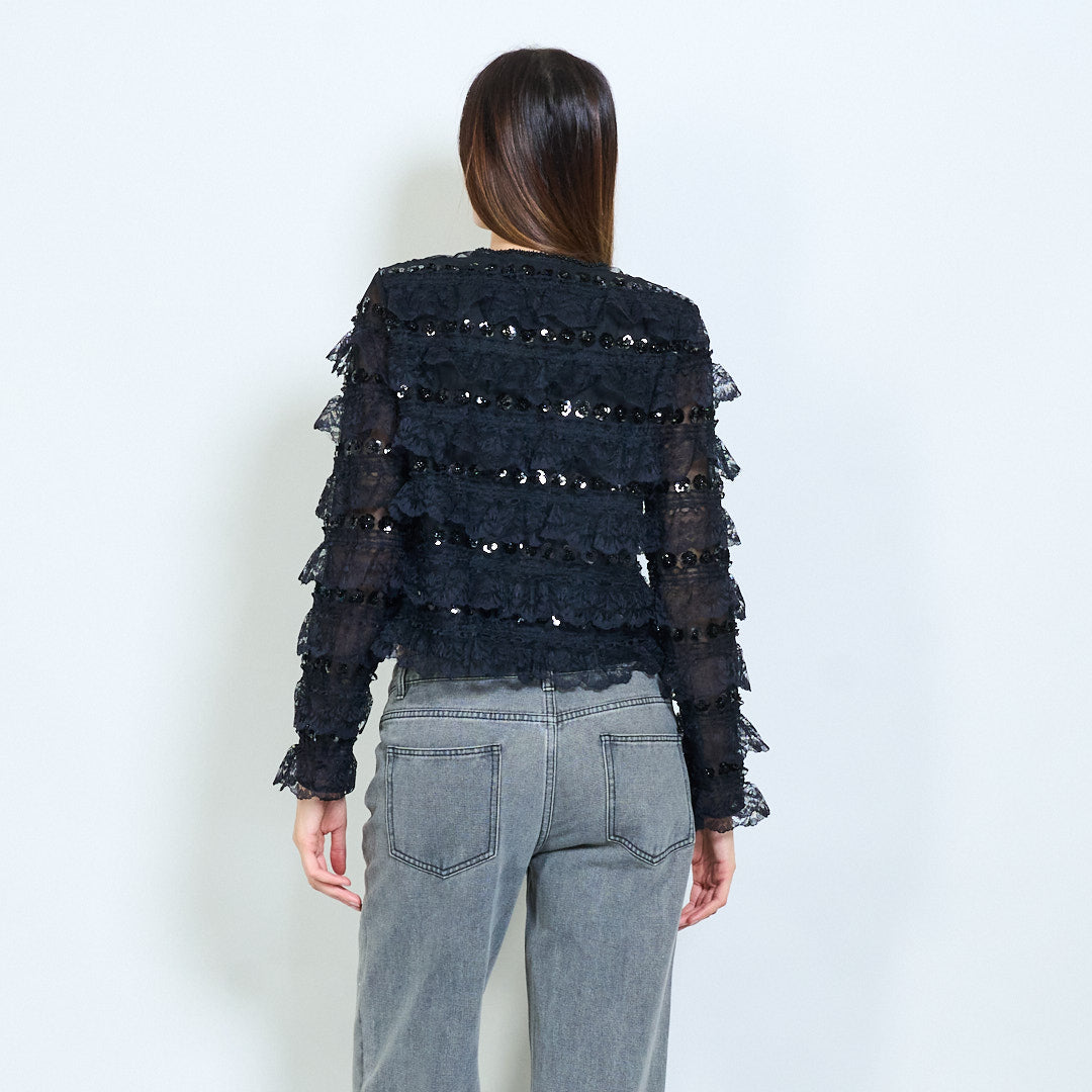 Giacca corto in paillettestri a strati di pizzo all'ingrosso