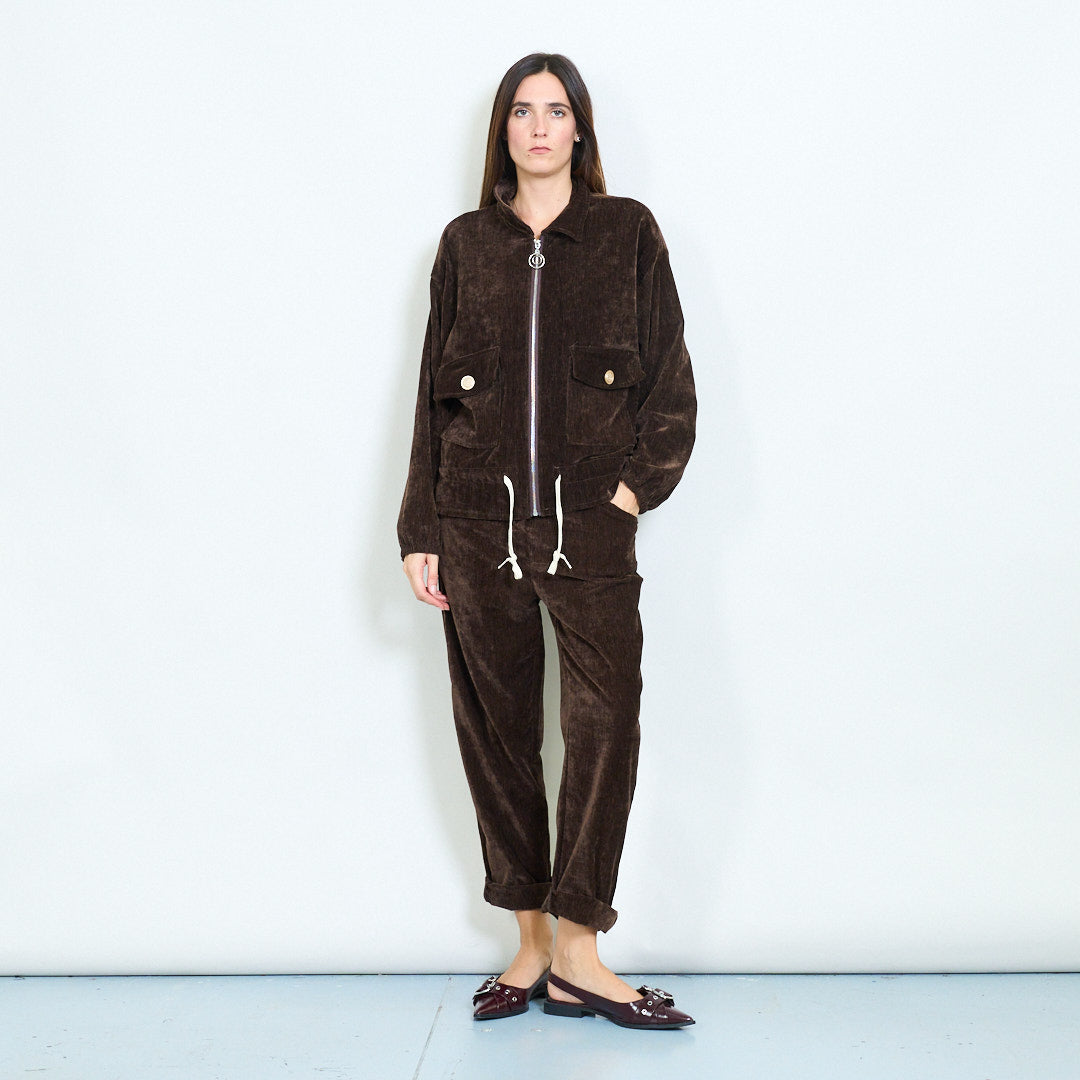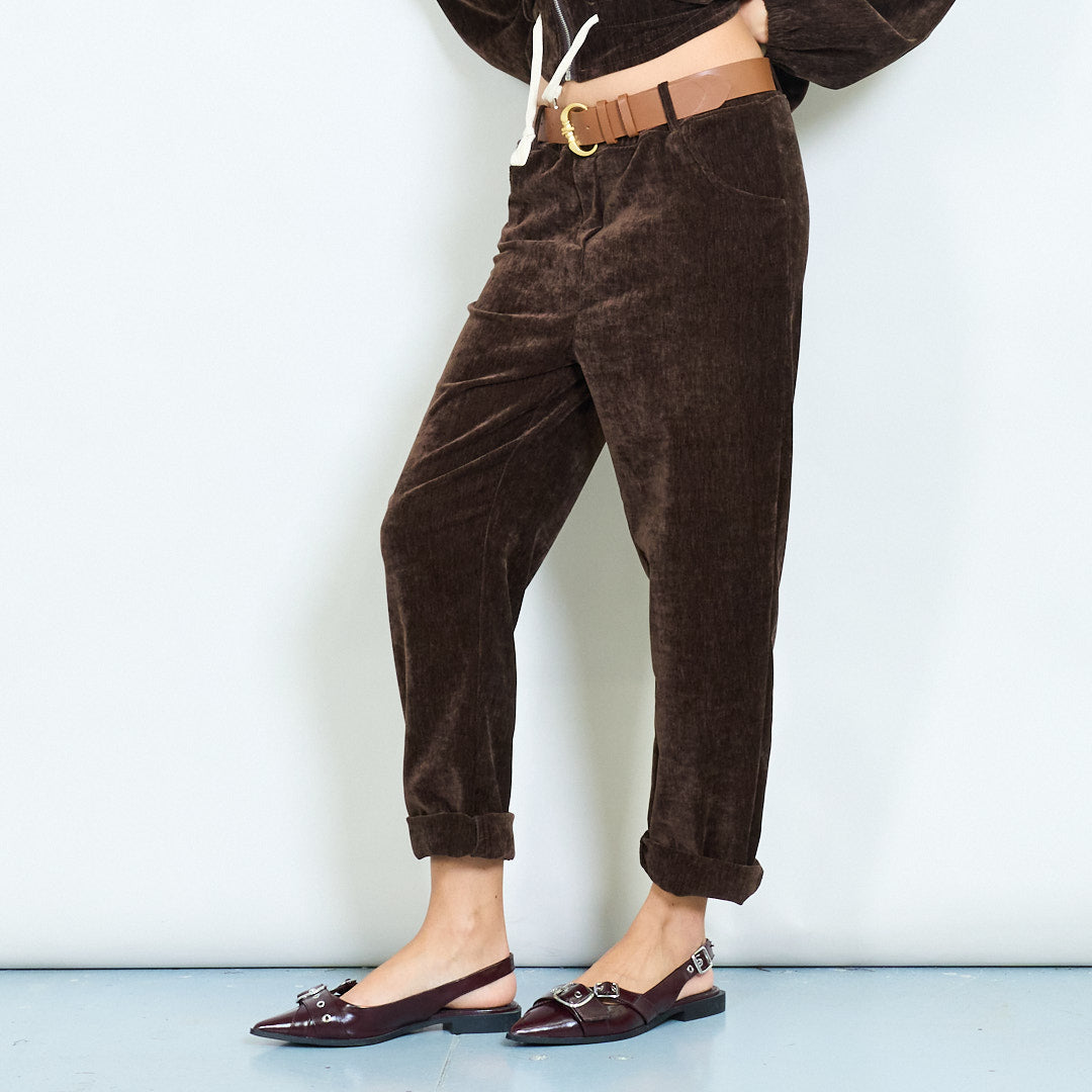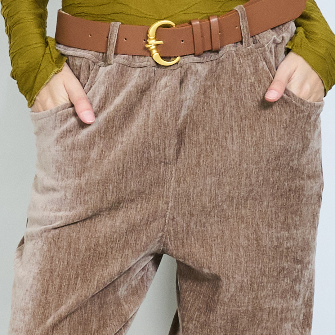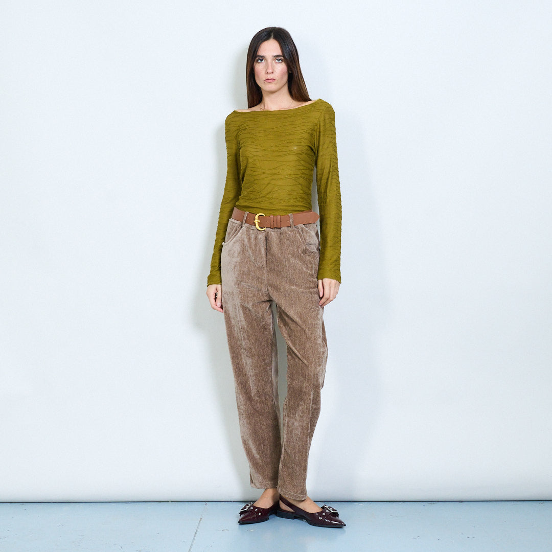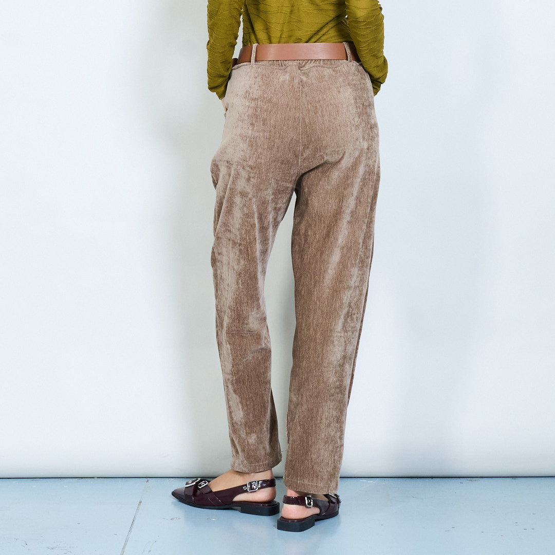 - Pantaloni in velluto morbido in tono neutro beige-marrone