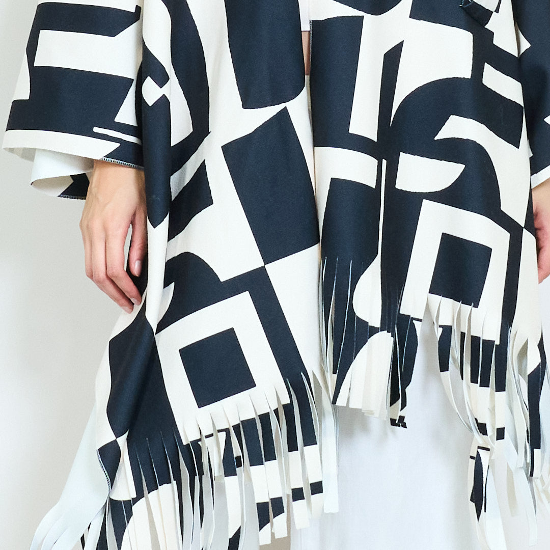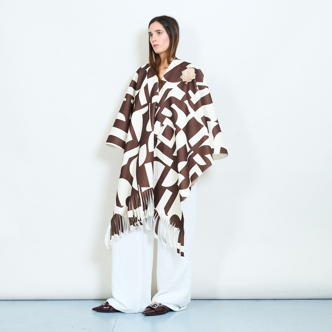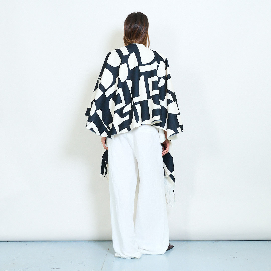 - Dichiarazione Poncho con stampa geometrica di grandi dimensioni per un look audace