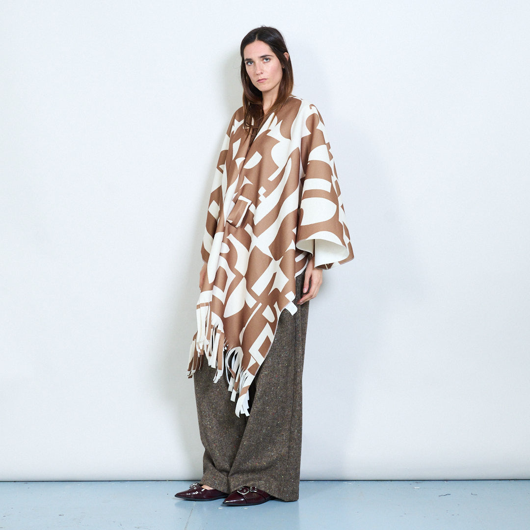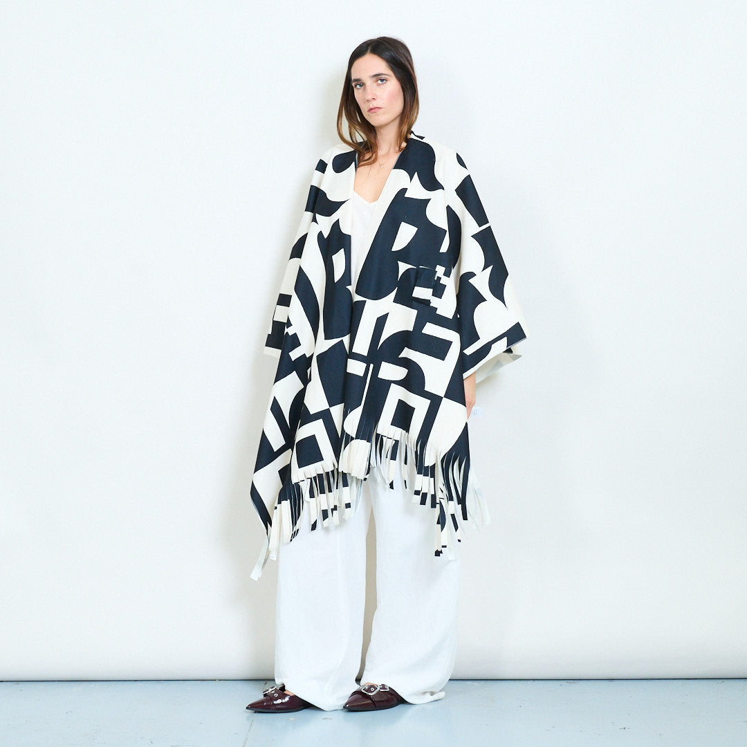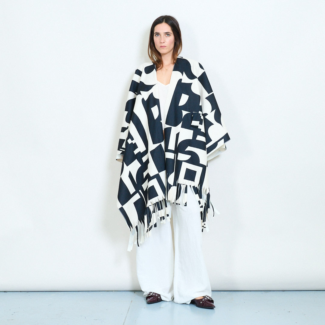 - Dichiarazione Poncho con stampa geometrica di grandi dimensioni per un look audace