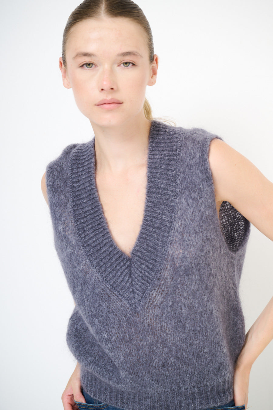 Sleeveless Fuzzy Munce profondo Vestro a V Neck Wholesale