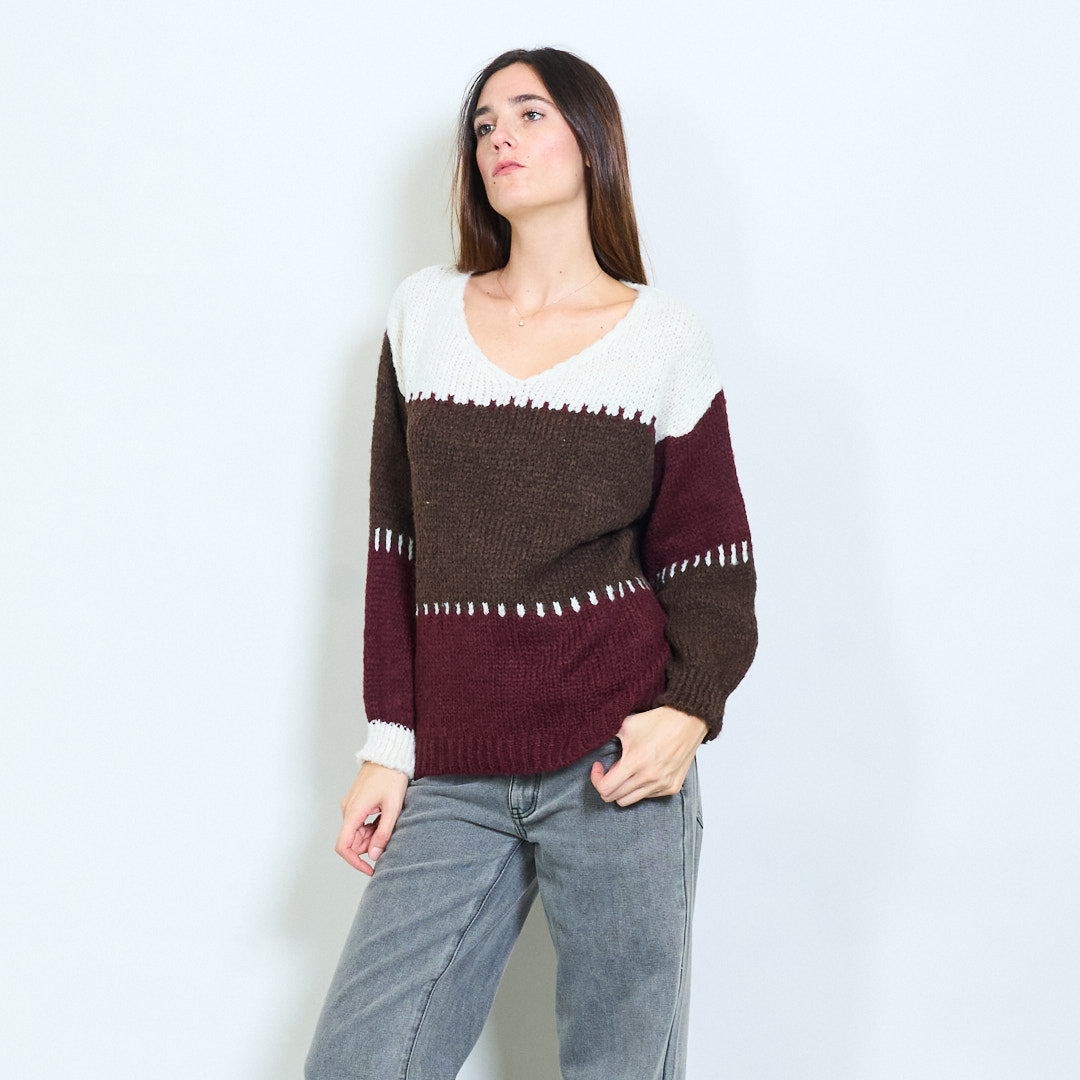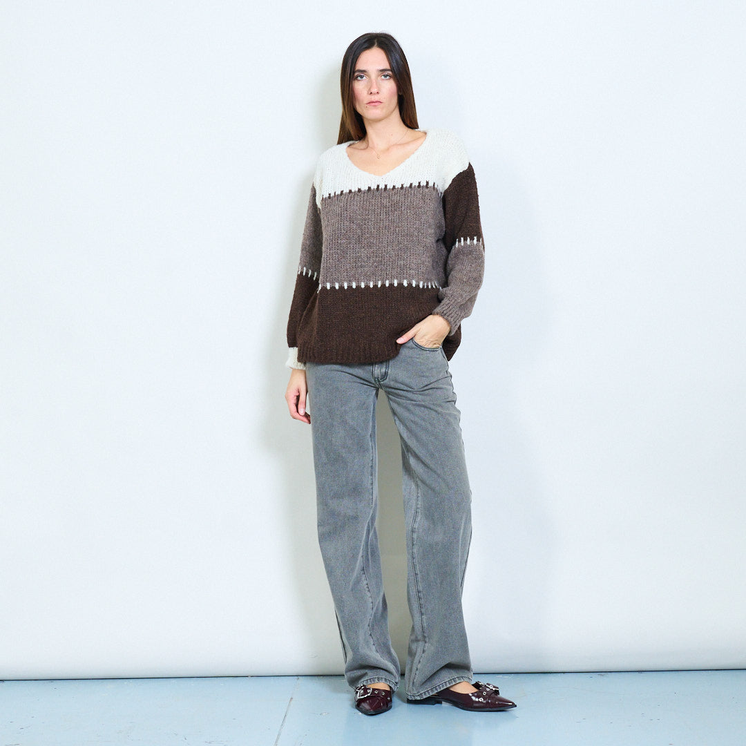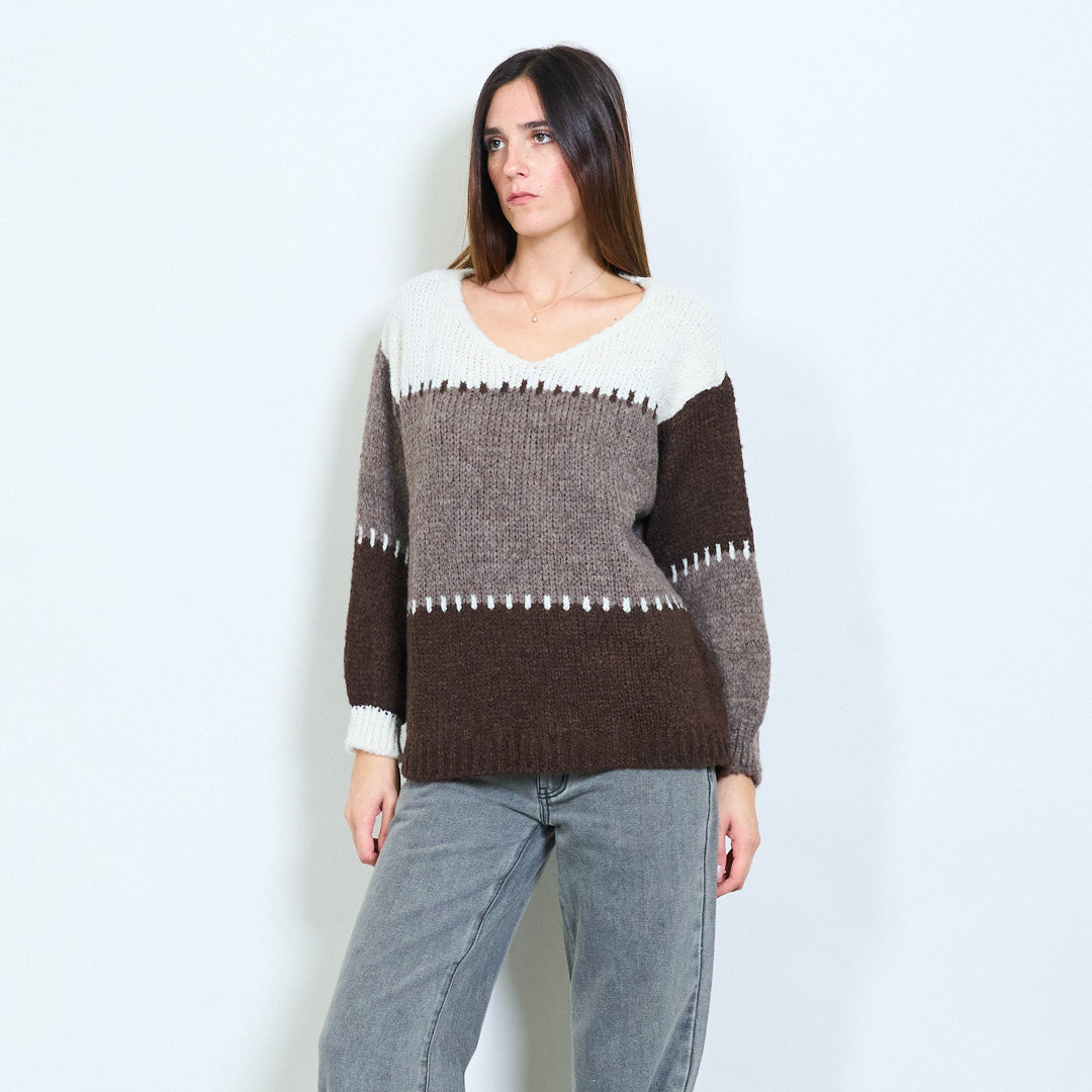 Stritod Block Pattern V-Neck Overszed Munti di maglia all'ingrosso