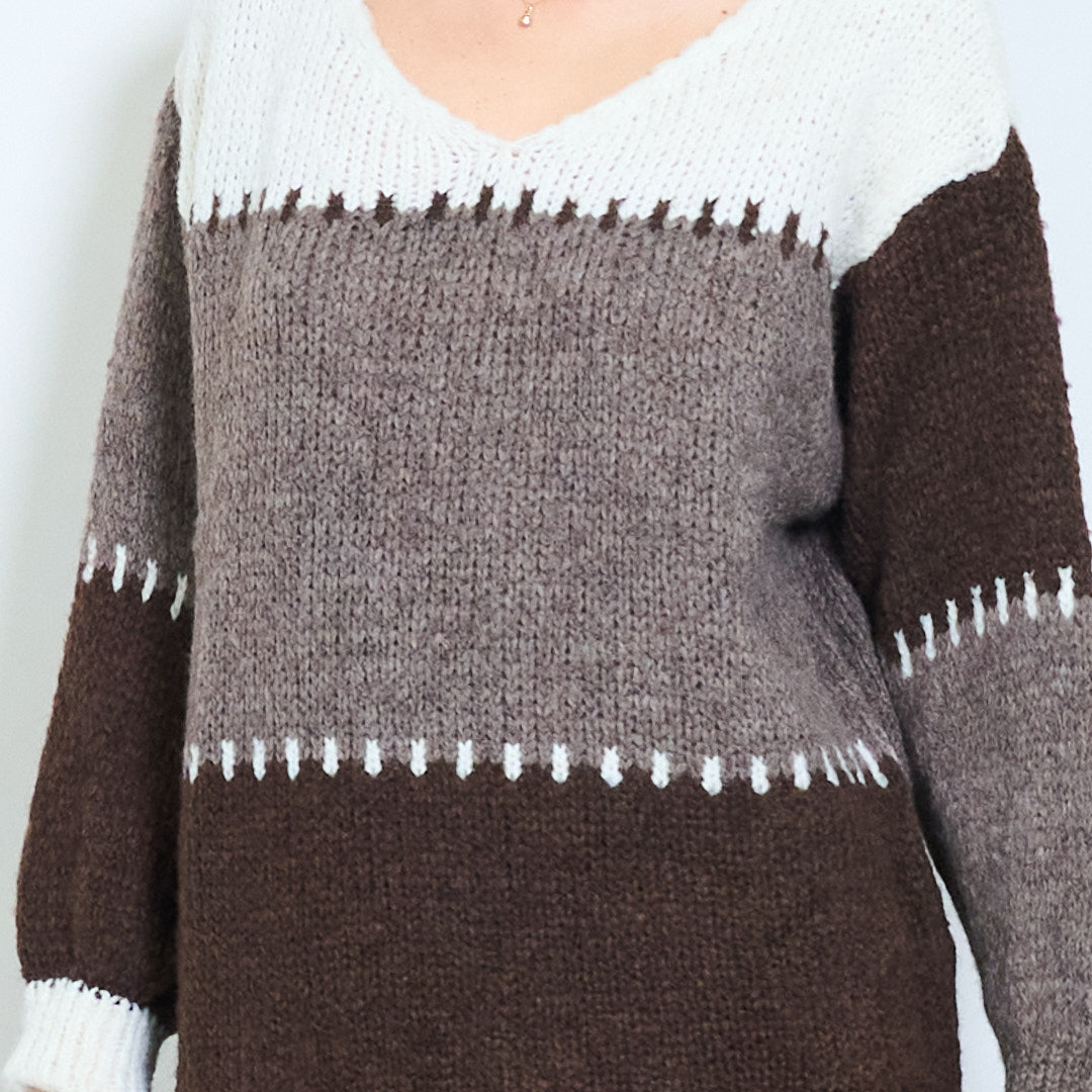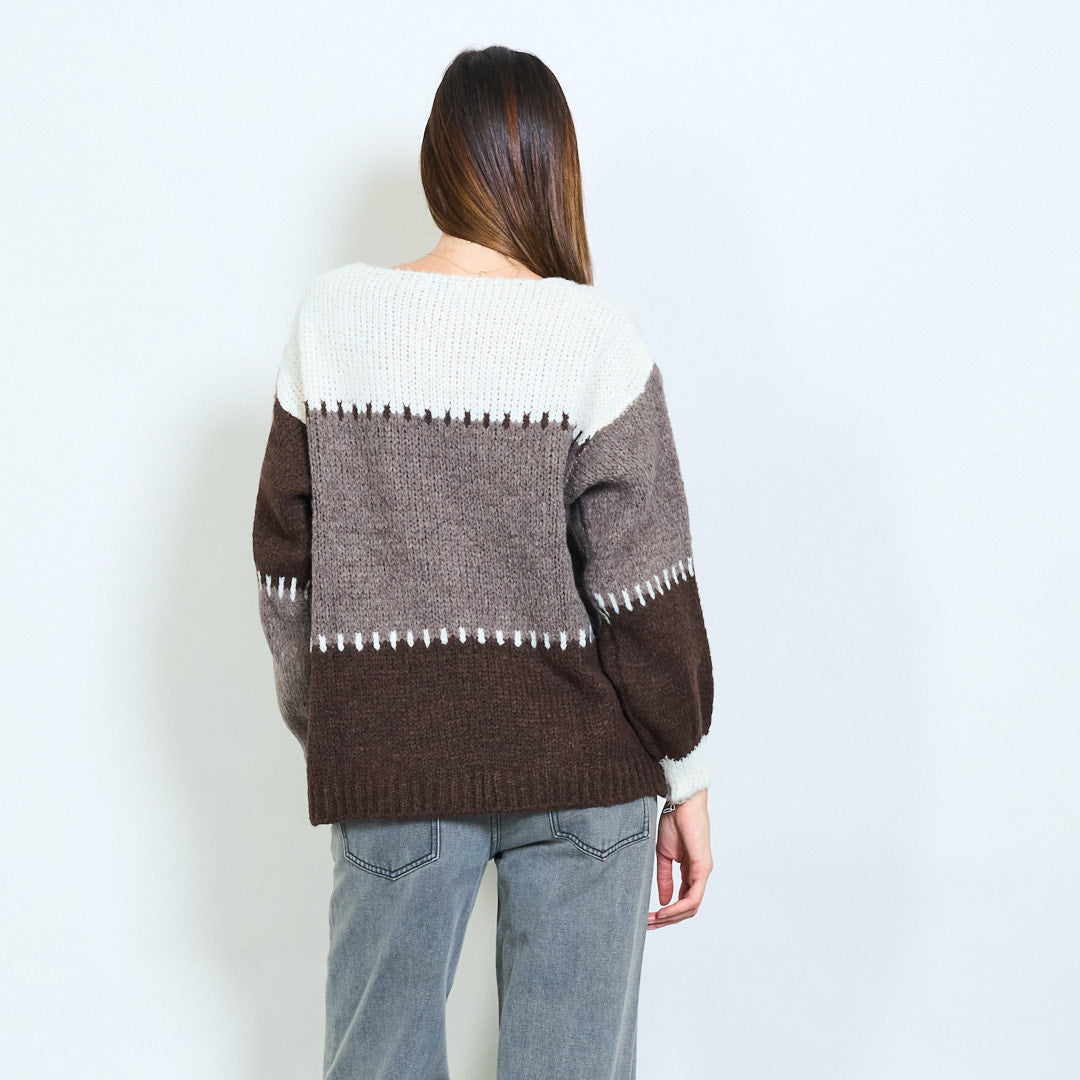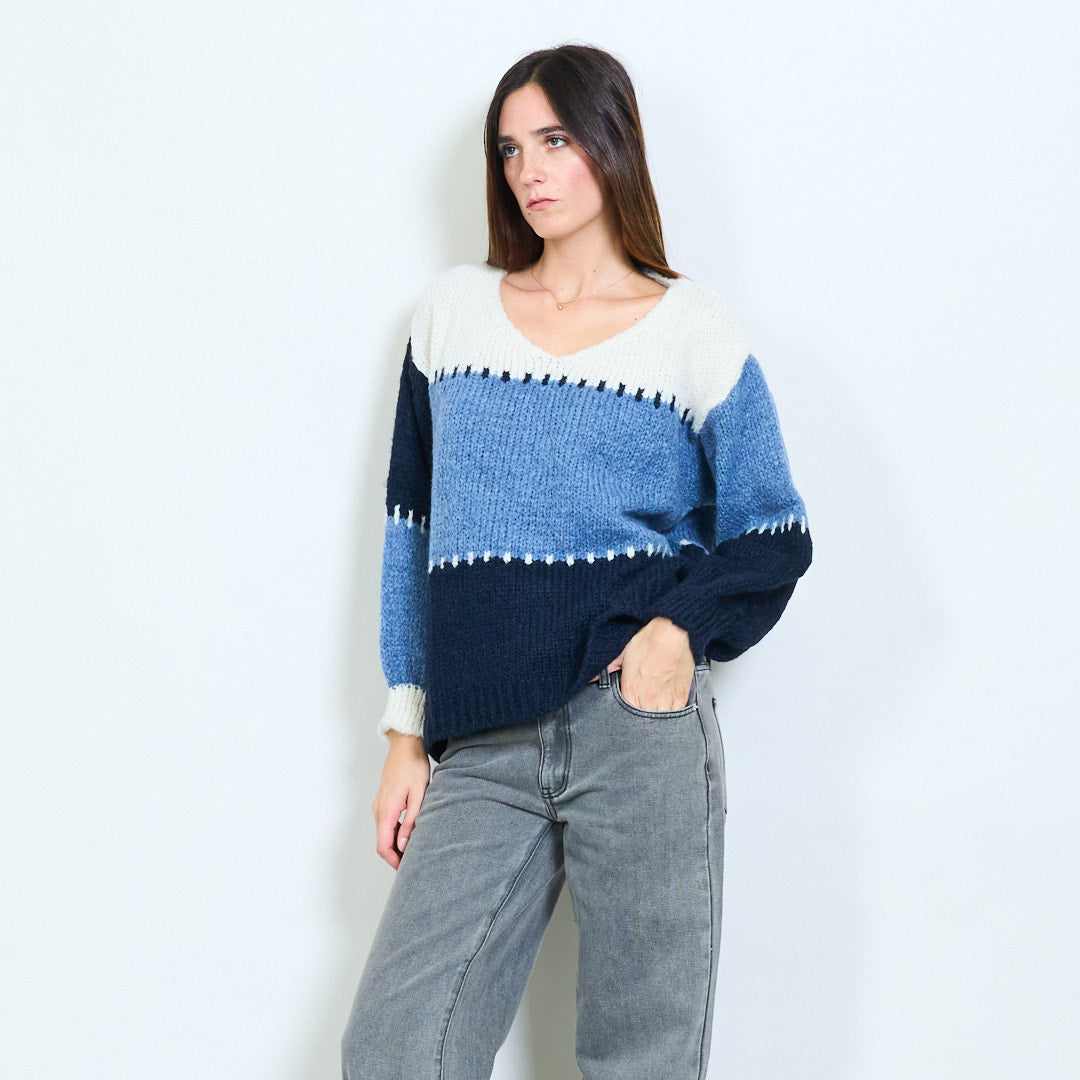 Stritod Block Pattern V-Neck Overszed Munti di maglia all'ingrosso