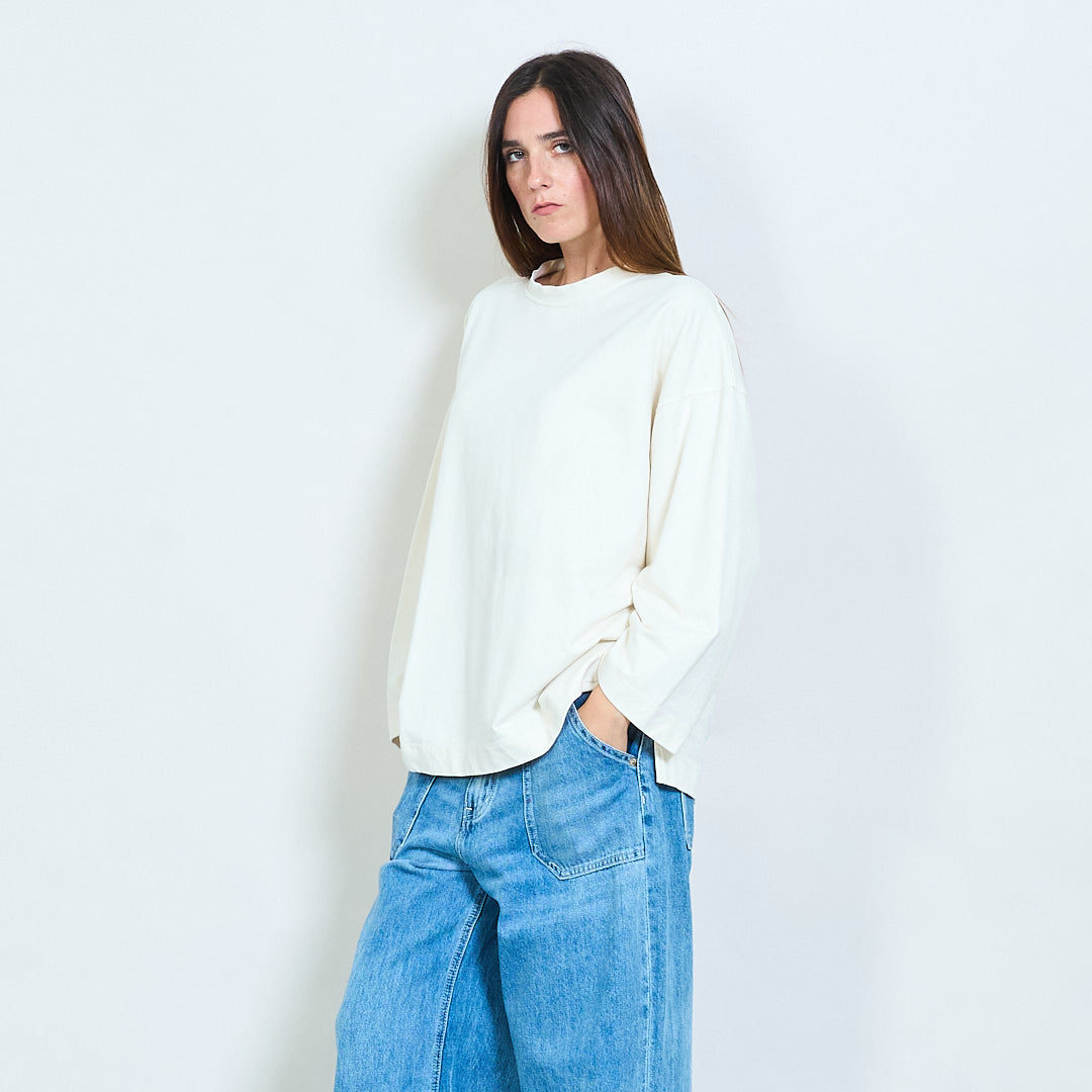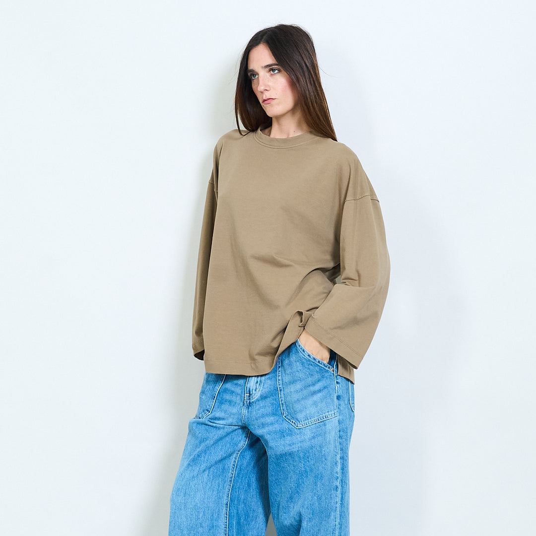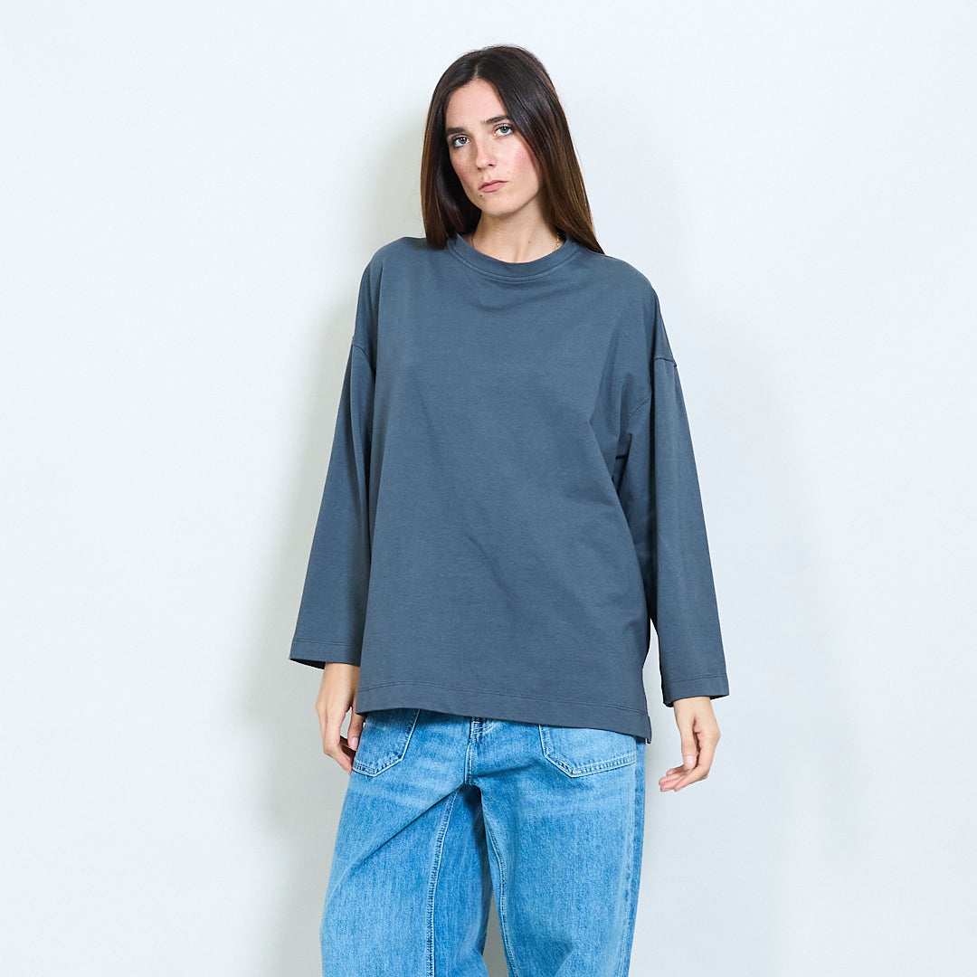 - Maniche lunghe con spalle lasciate cadere per uno stile casual
