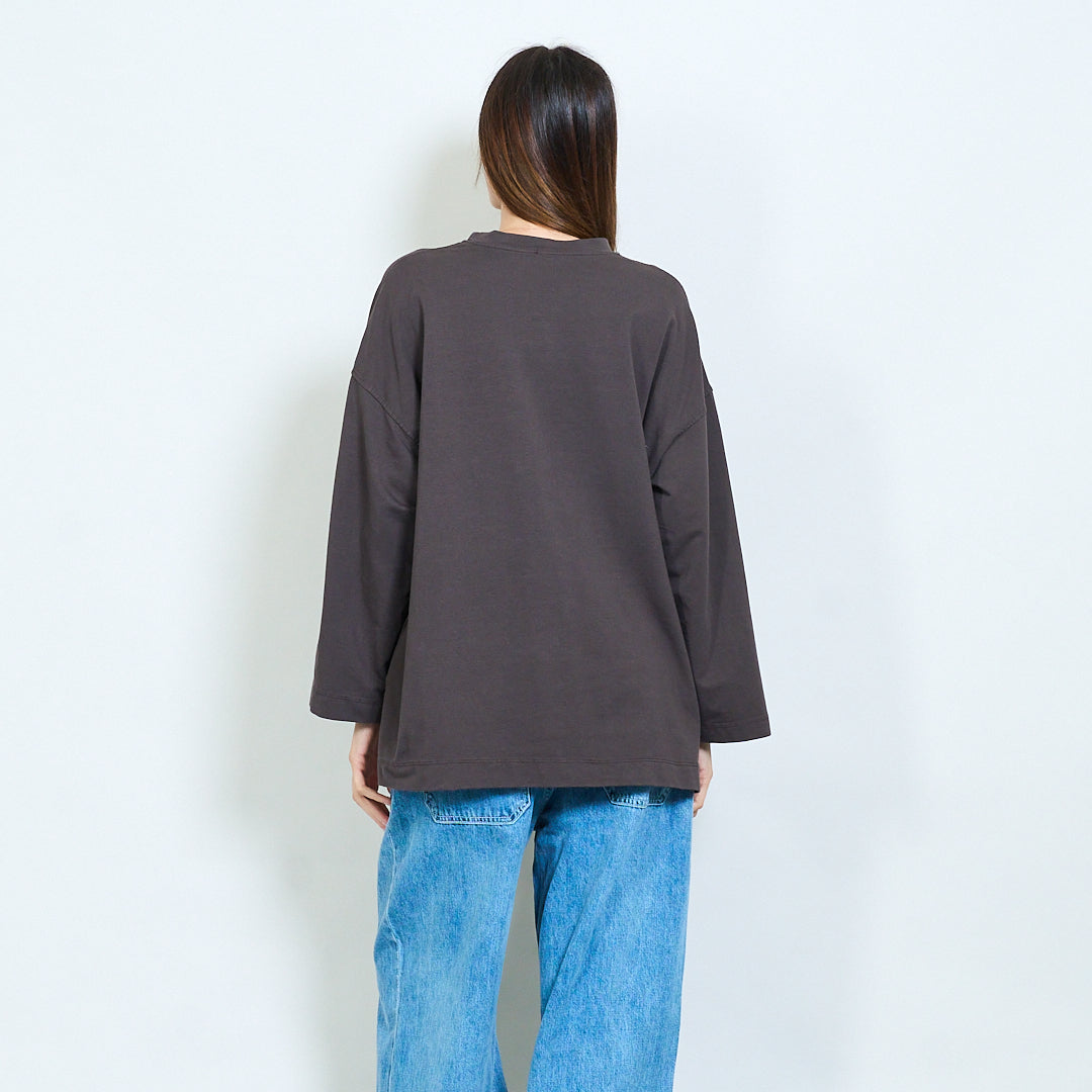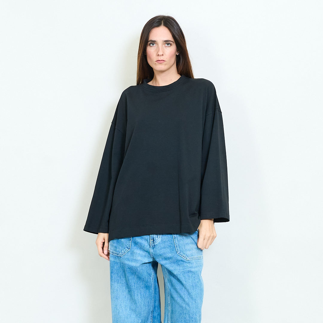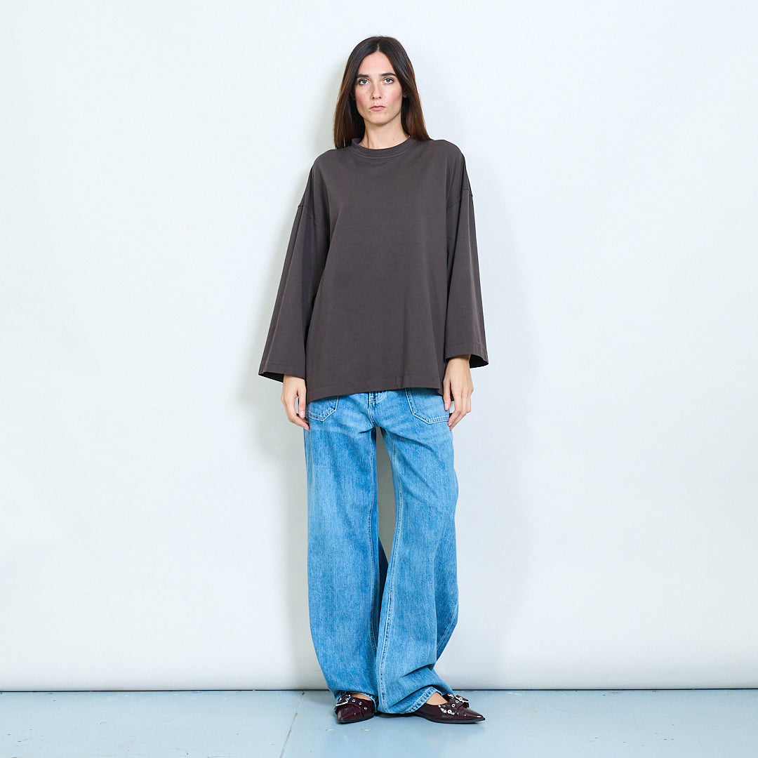 - Maniche lunghe con spalle lasciate cadere per uno stile casual