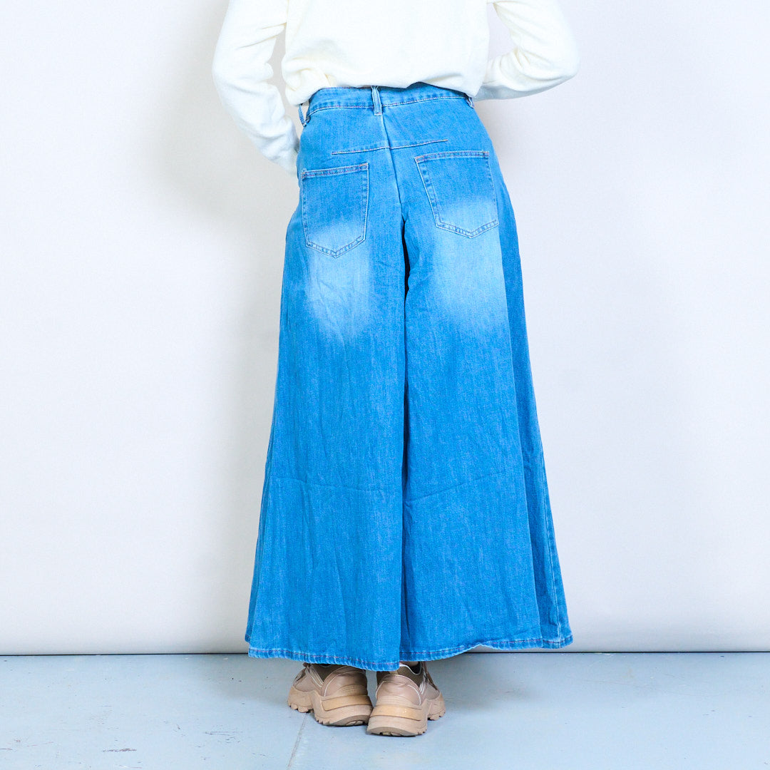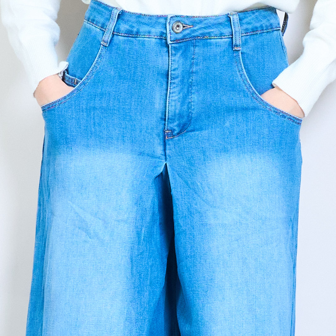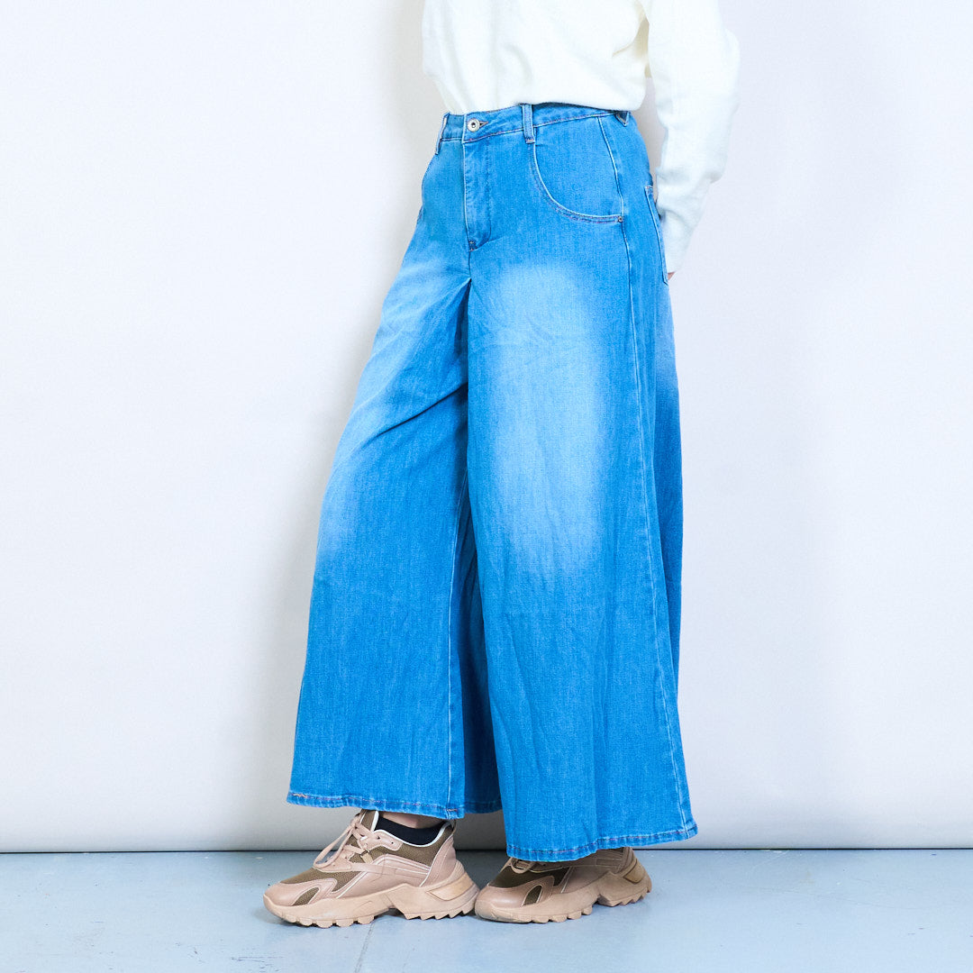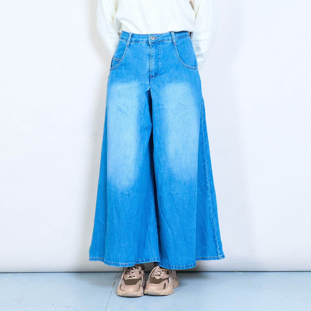 Vendita all'ingrosso di pantaloni in denim con silhouette fluida e gamba larga