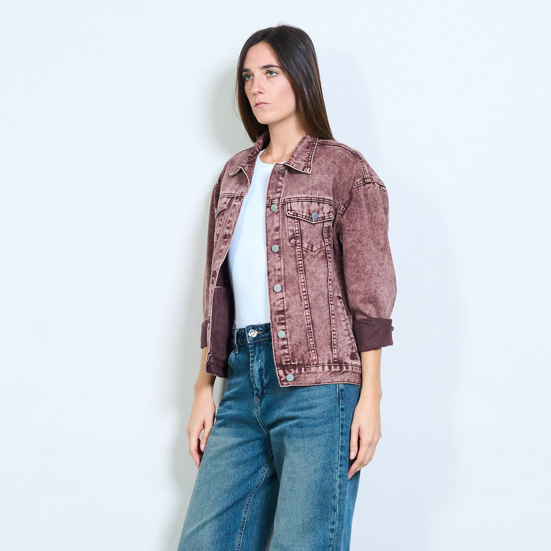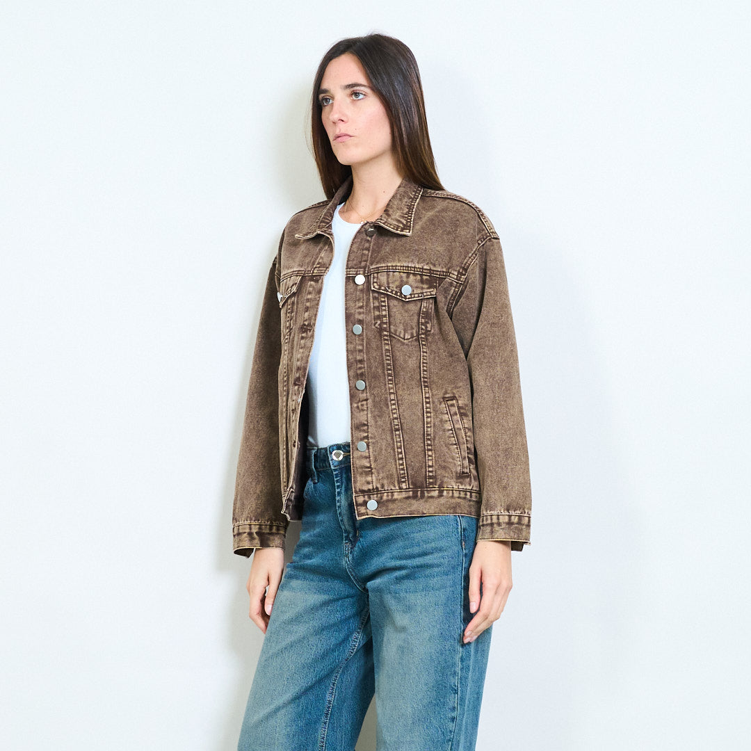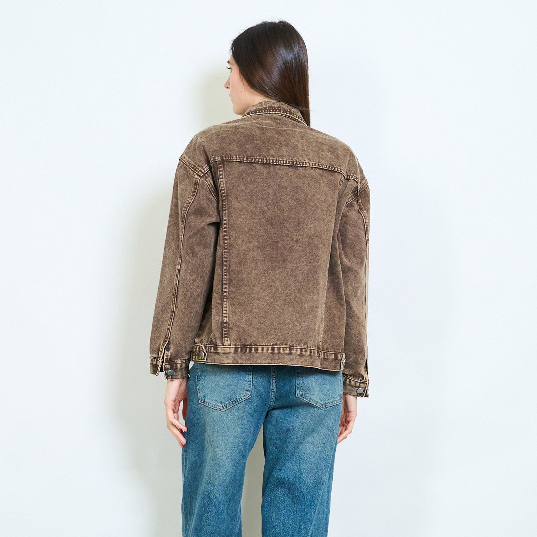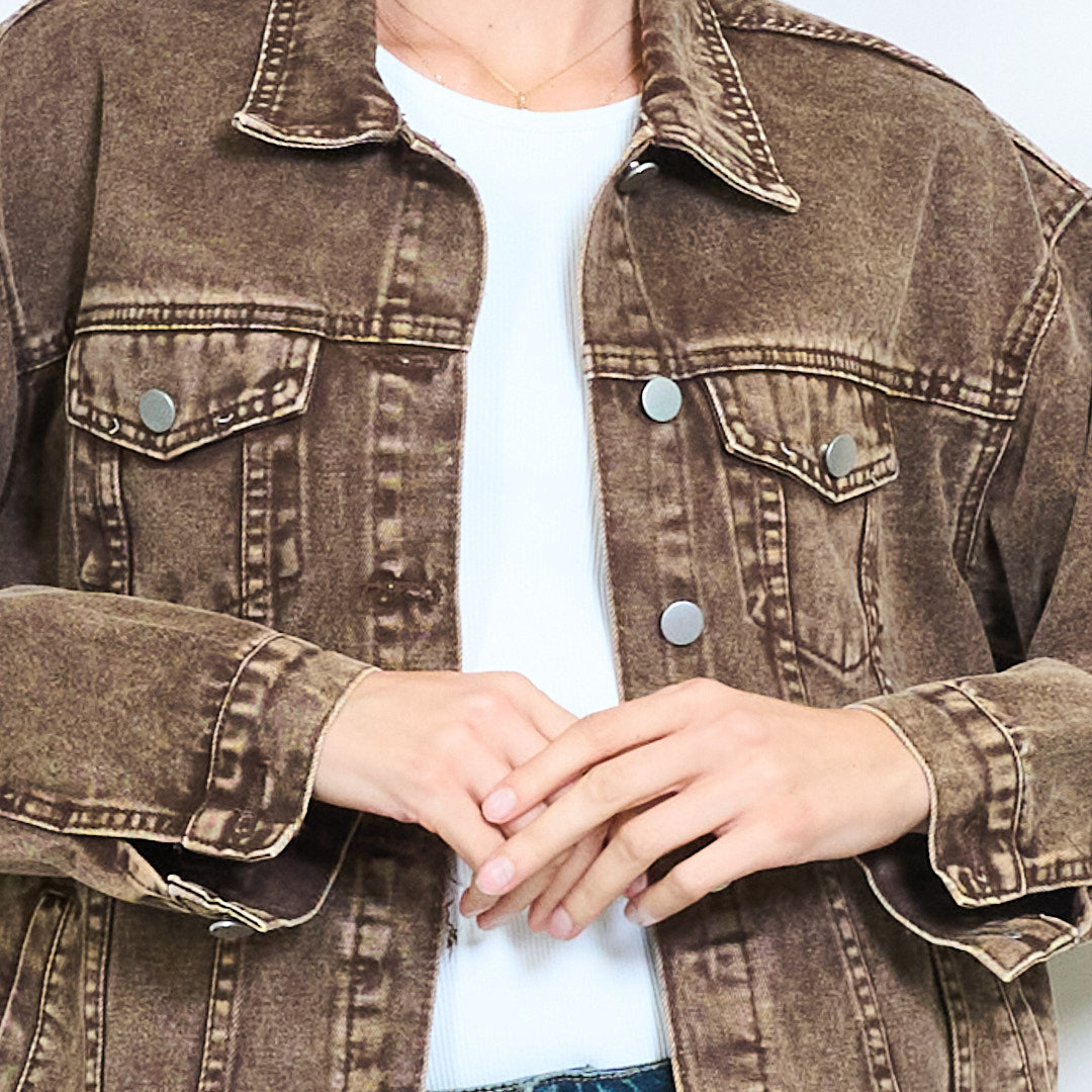 Vendita all'ingrosso di giacche in denim vintage lavate con bottoni sul davanti