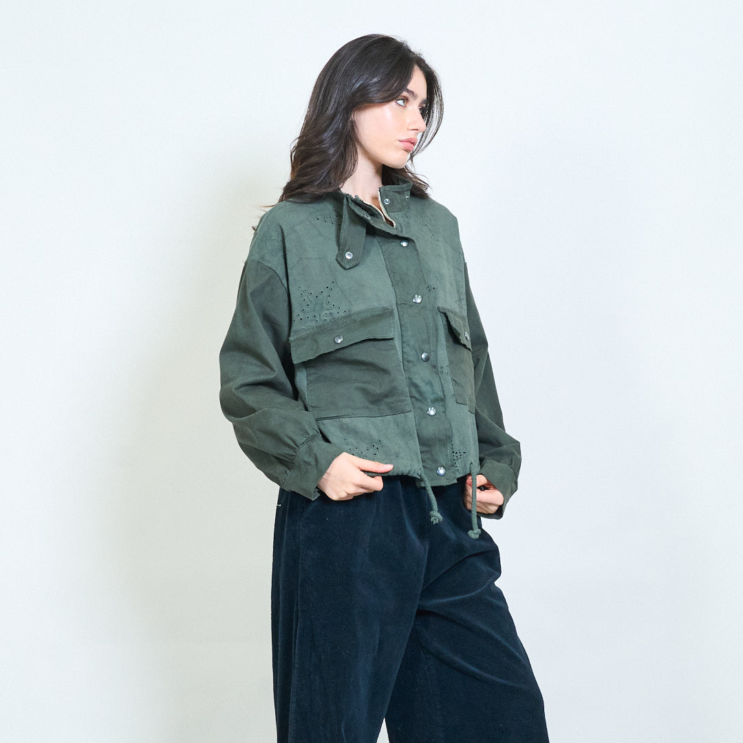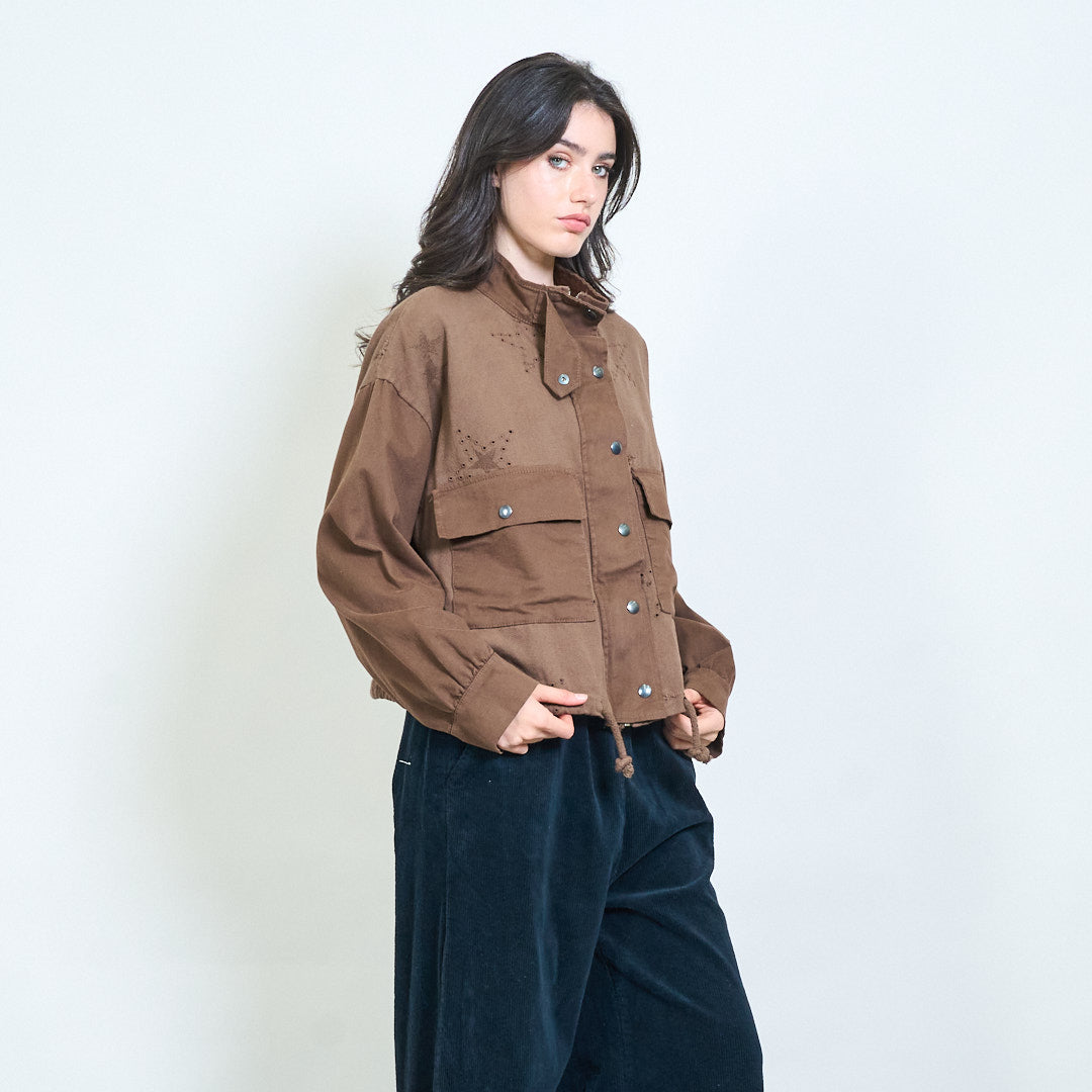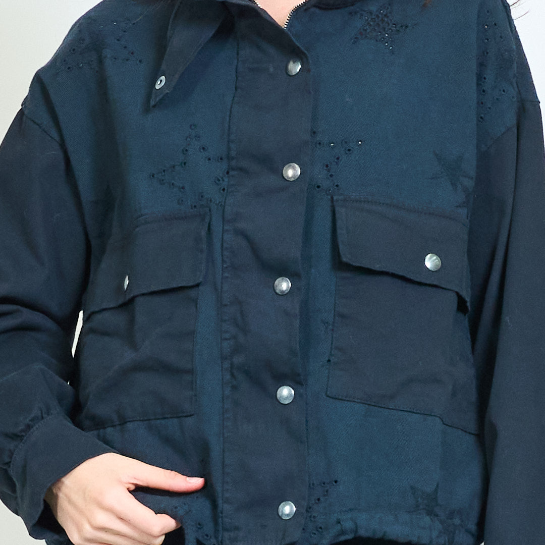 Vendita all'ingrosso di giacche utility corte ricamate con occhielli a stella