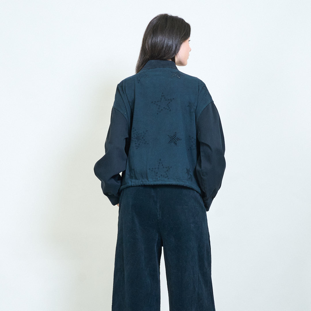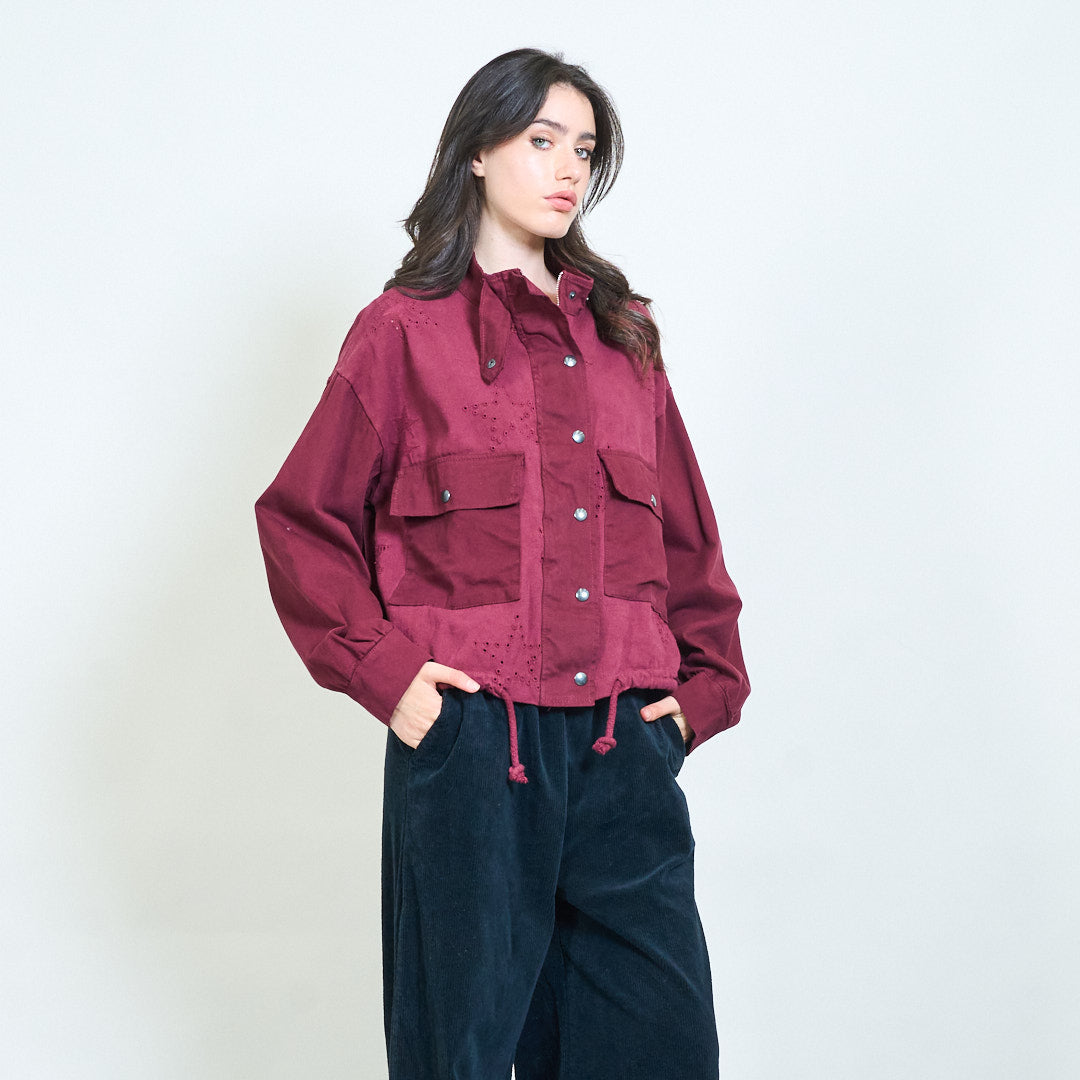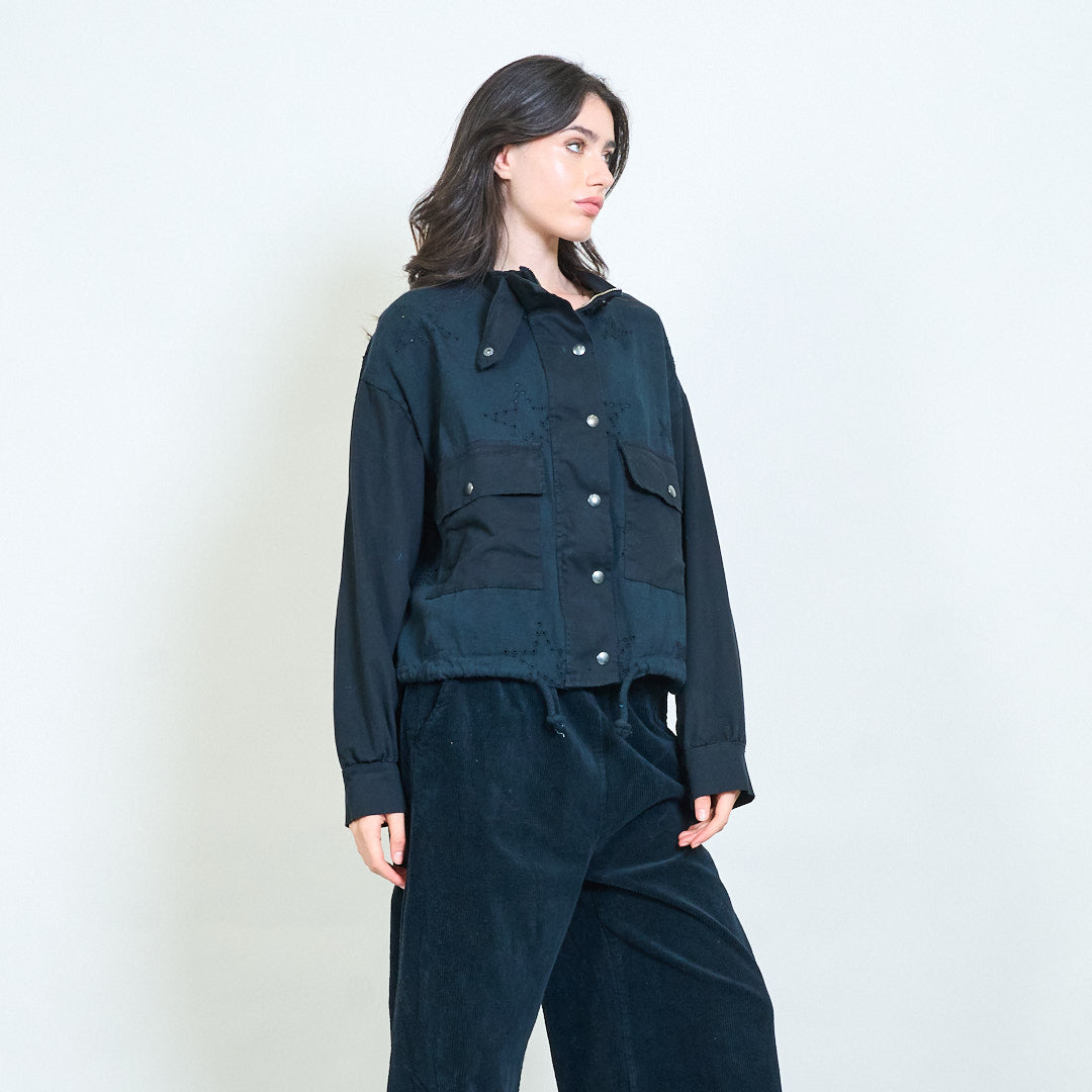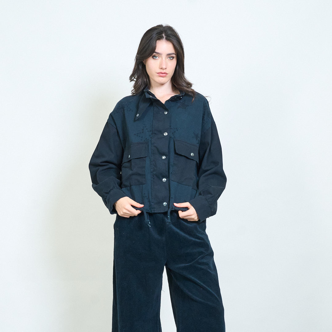 Vendita all'ingrosso di giacche utility corte ricamate con occhielli a stella