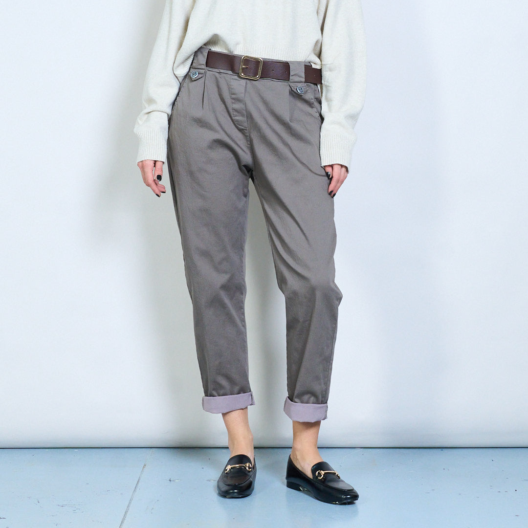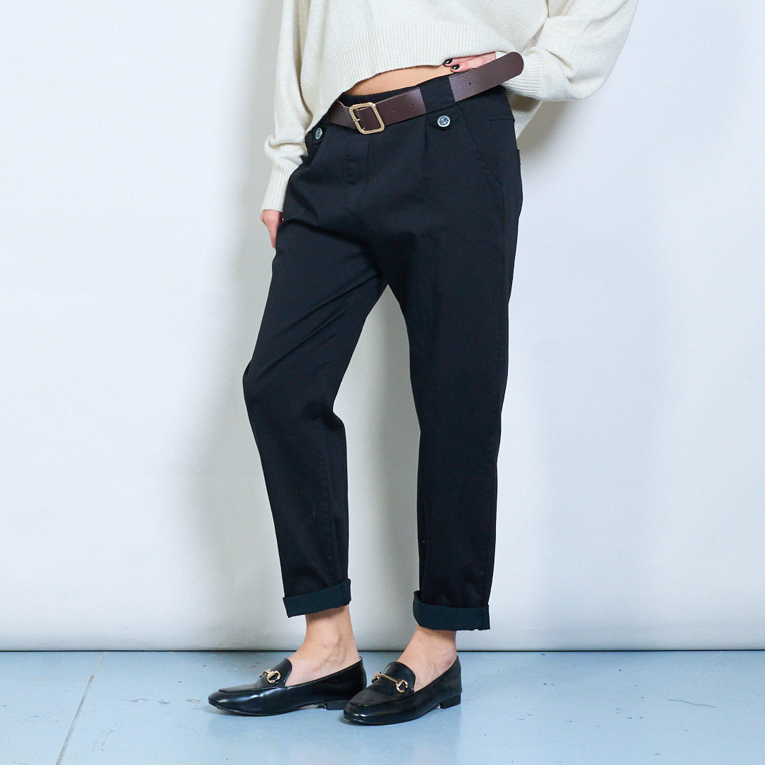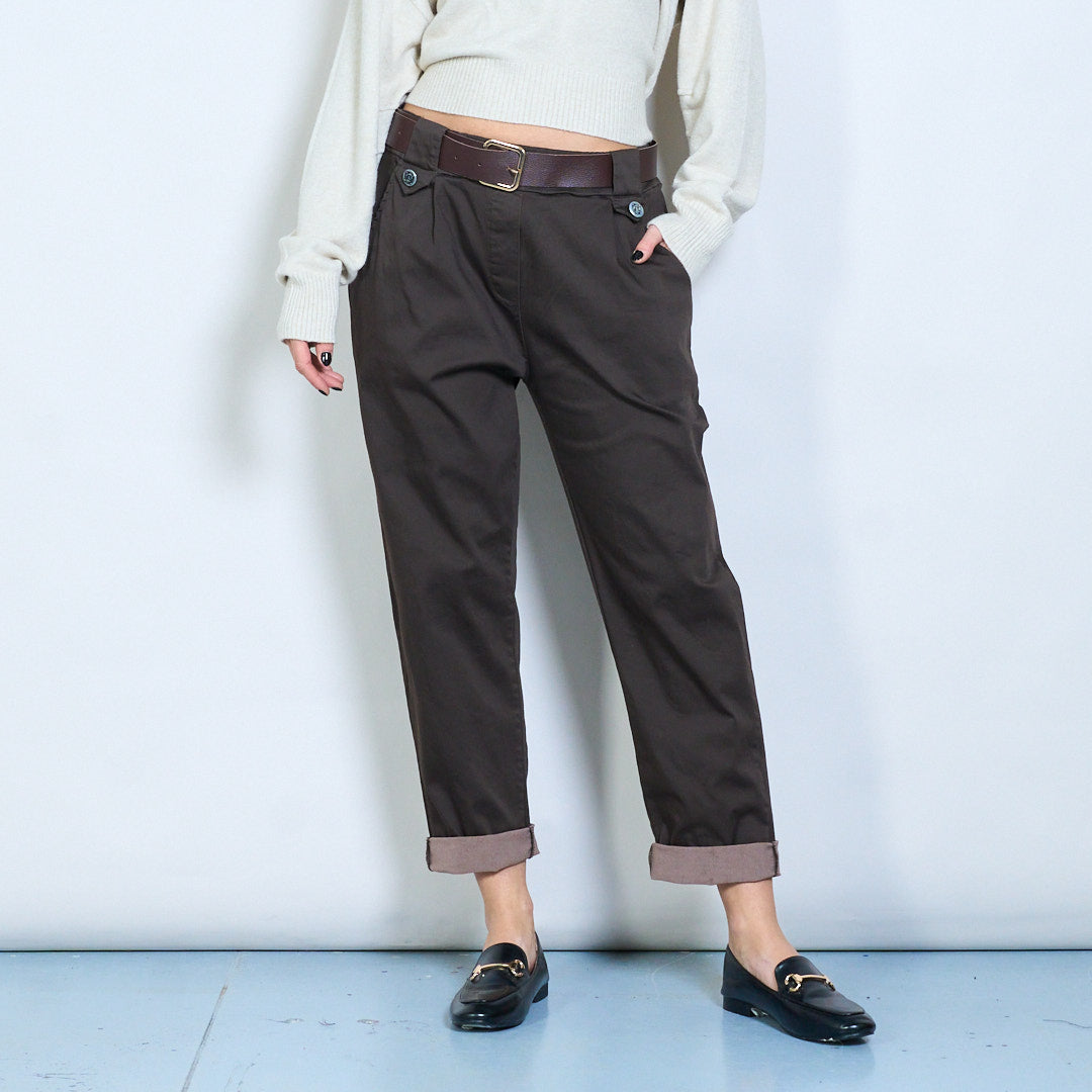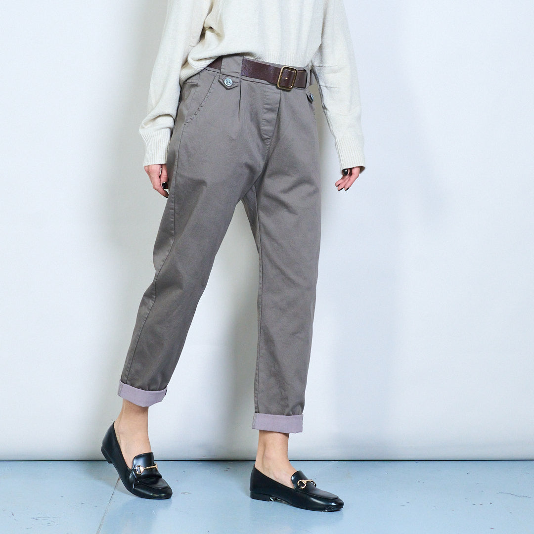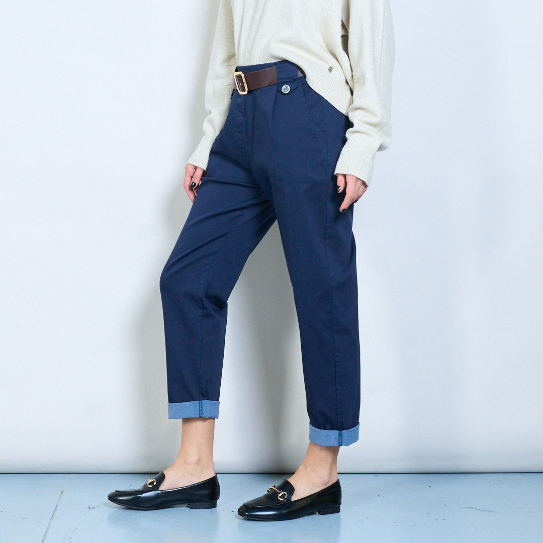 Pantaloni affusolati a vita alta con polsino a contrasto e cintura di tendenza all'ingrosso