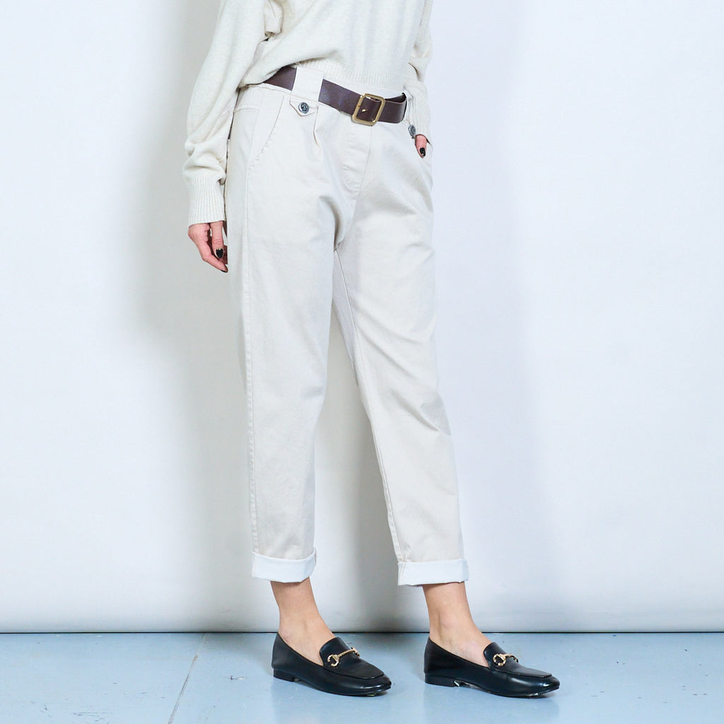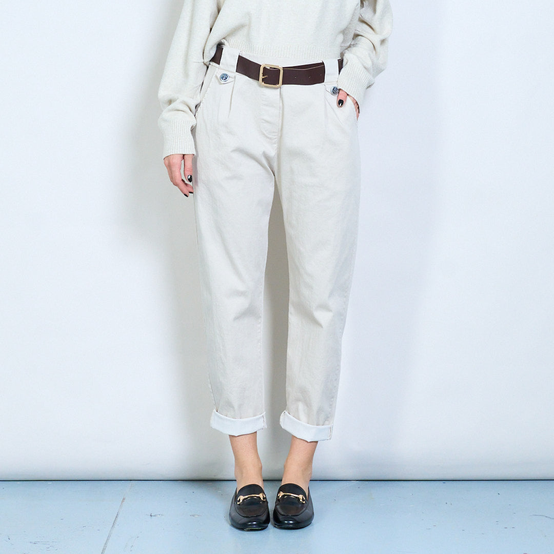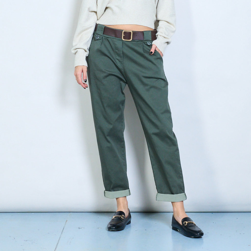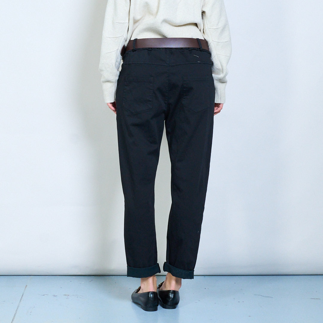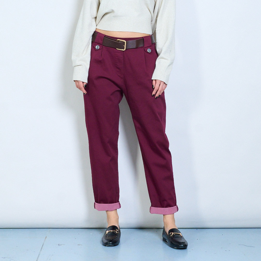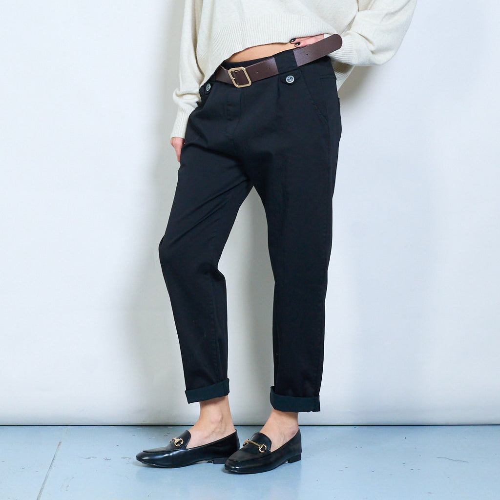 Pantaloni affusolati a vita alta con polsino a contrasto e cintura di tendenza all'ingrosso