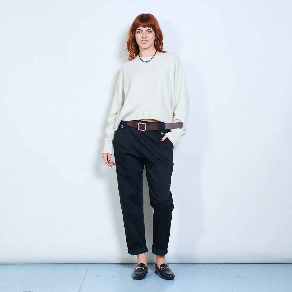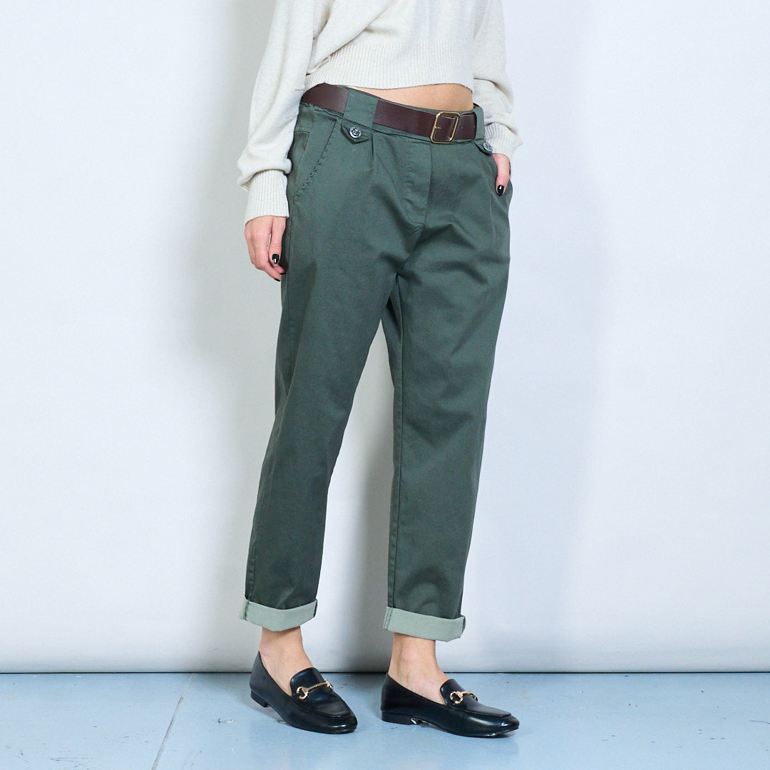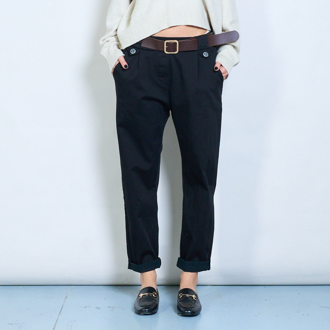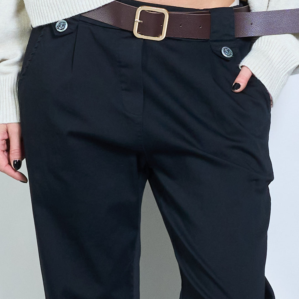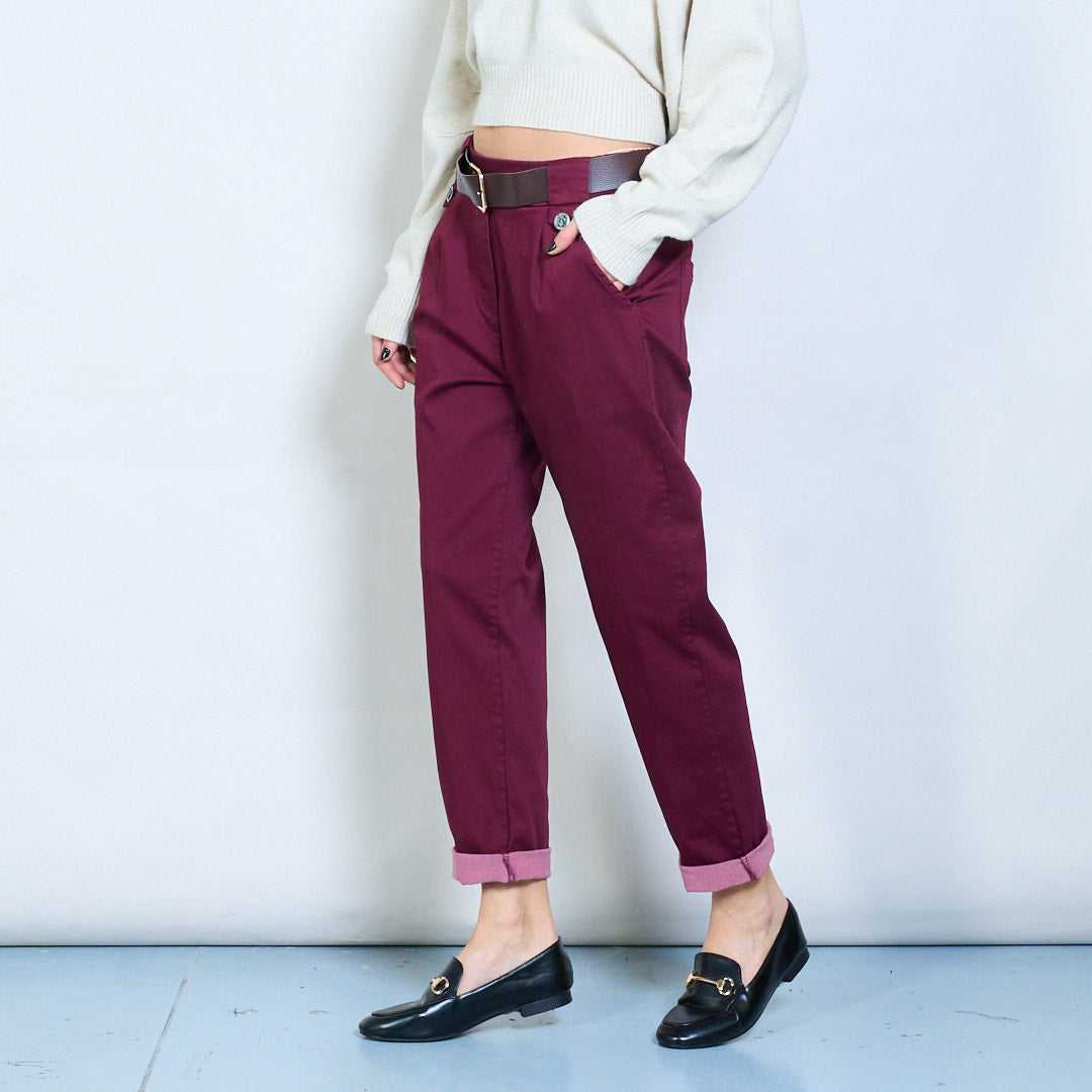 Pantaloni affusolati a vita alta con polsino a contrasto e cintura di tendenza all'ingrosso