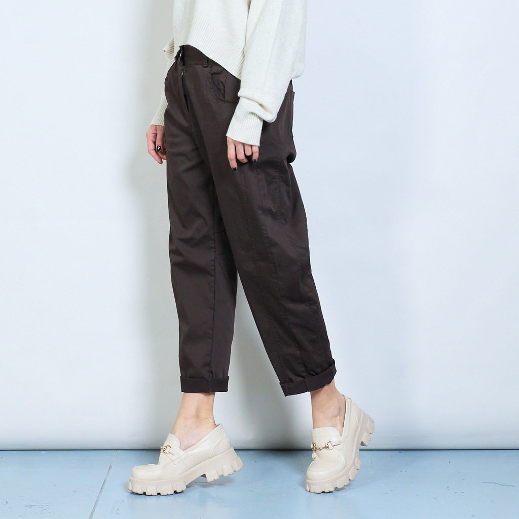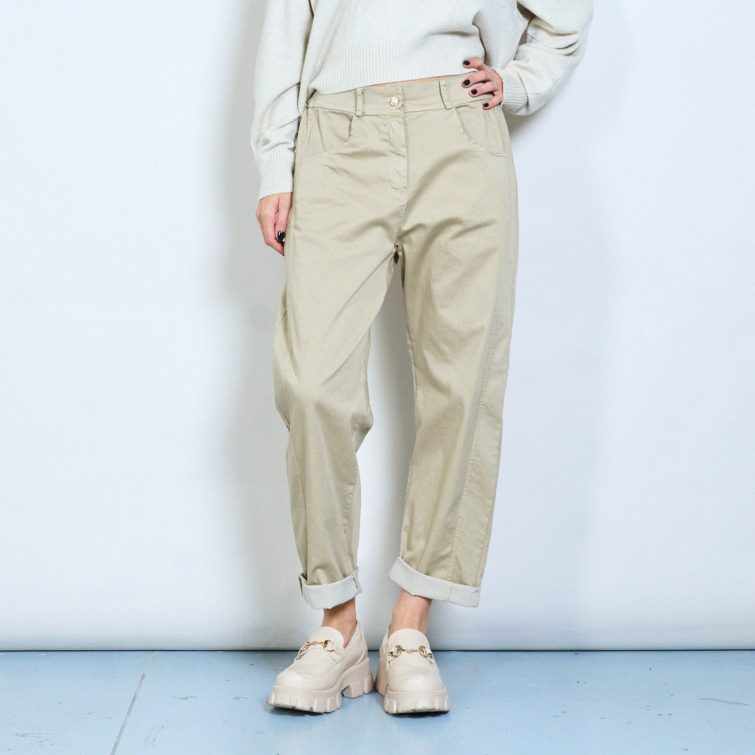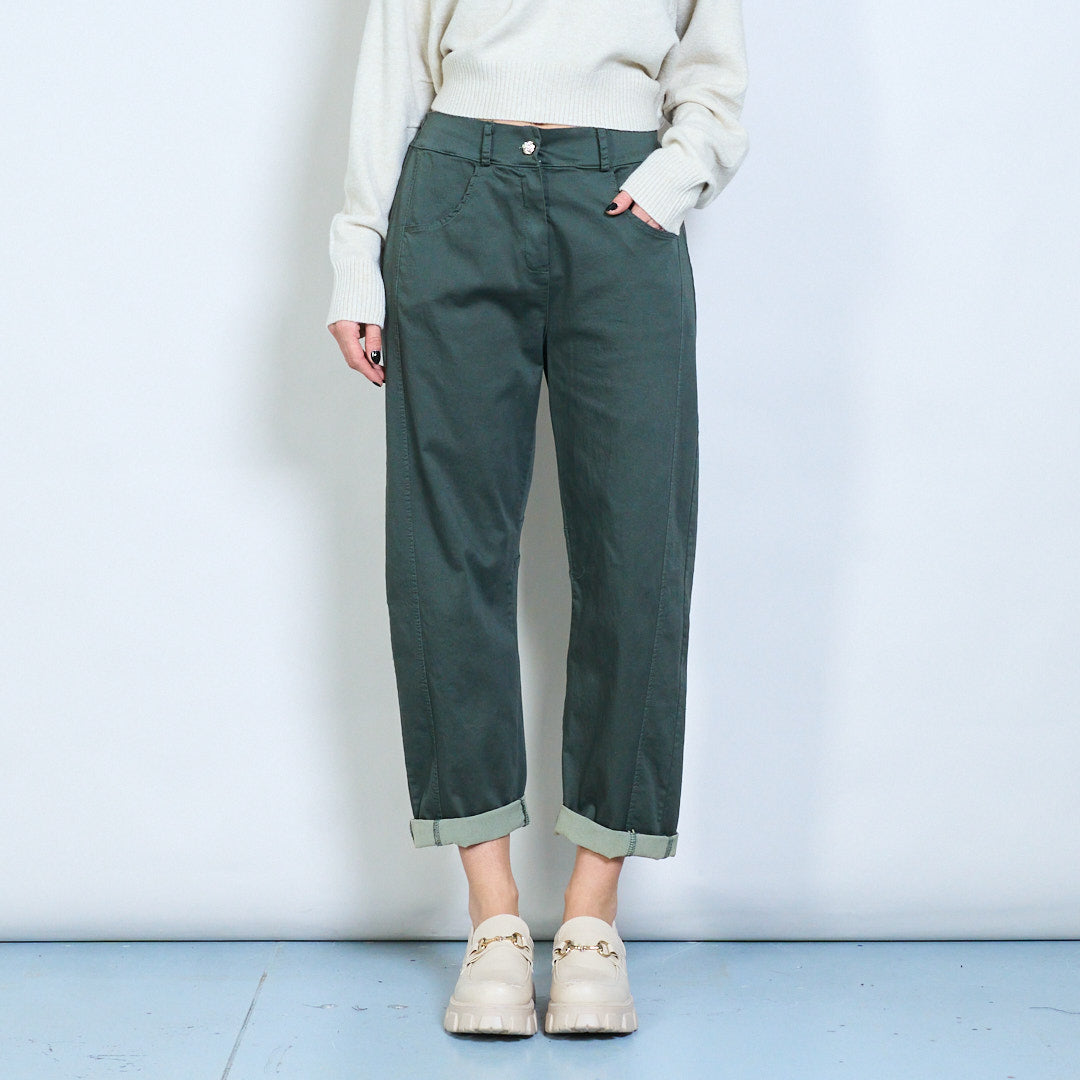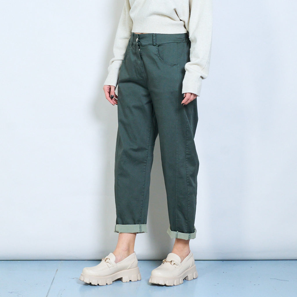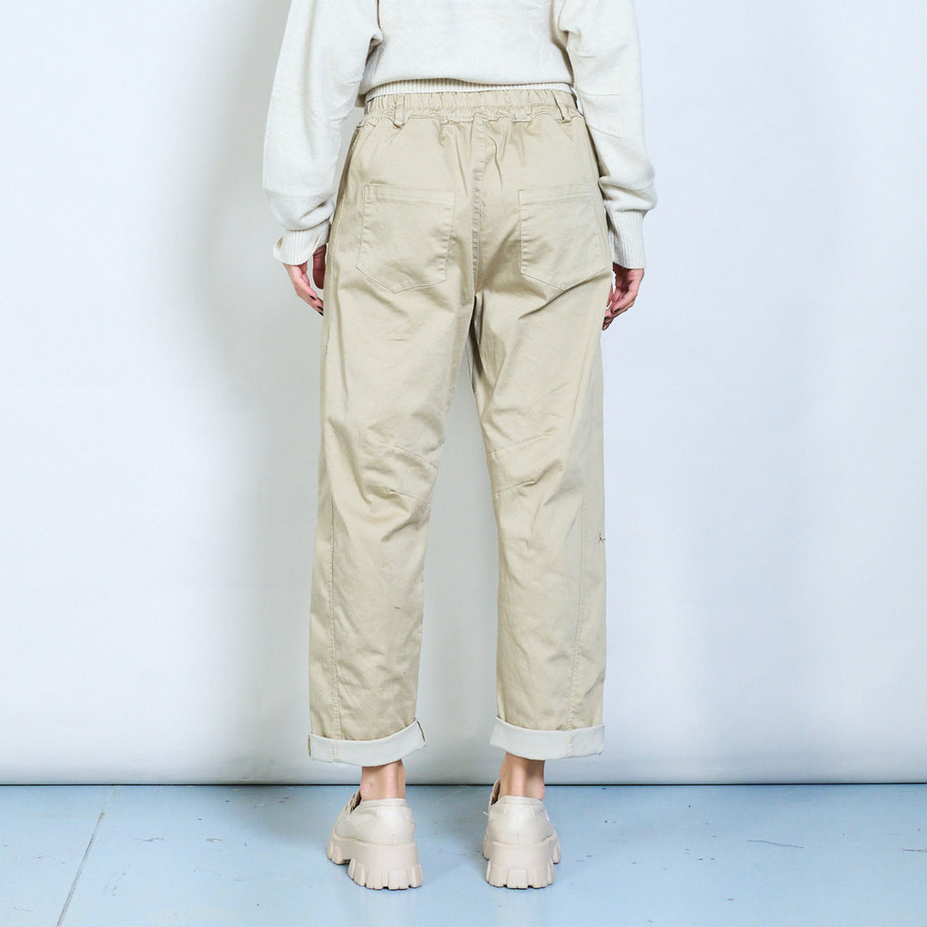 Vendita all'ingrosso di pantaloni utility a gamba dritta con vita elasticizzata e polsini arrotolati