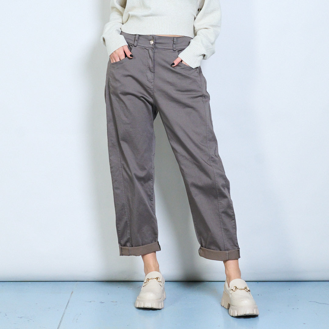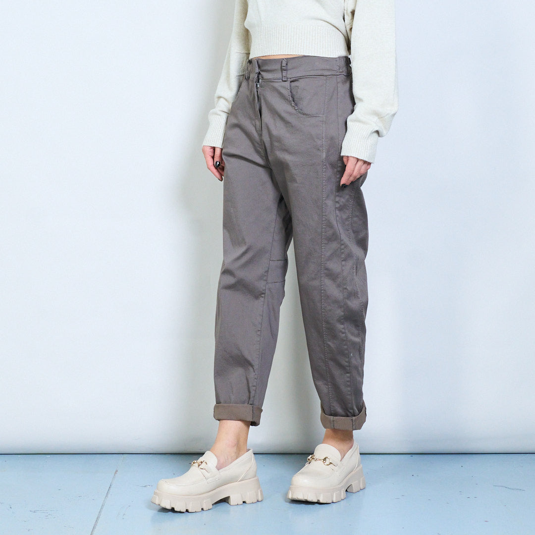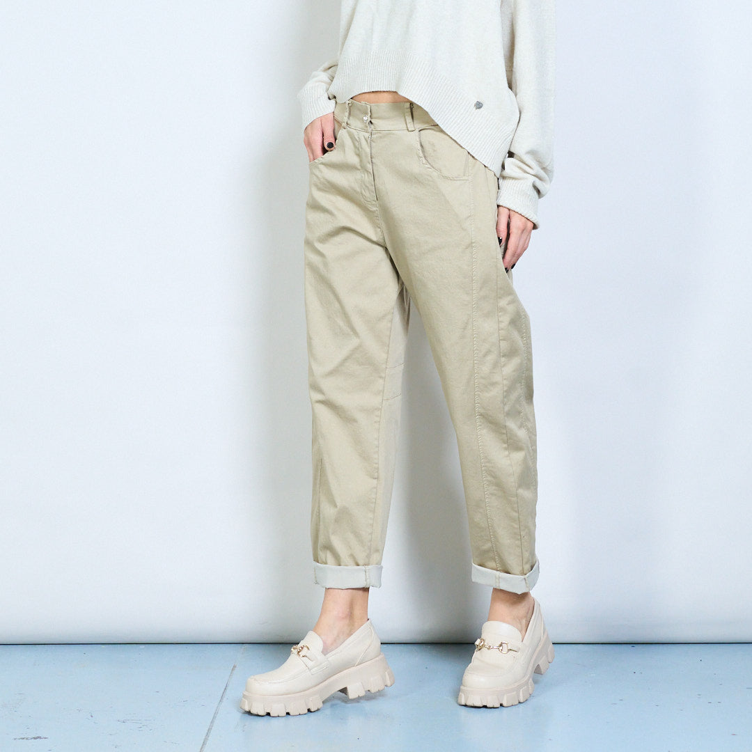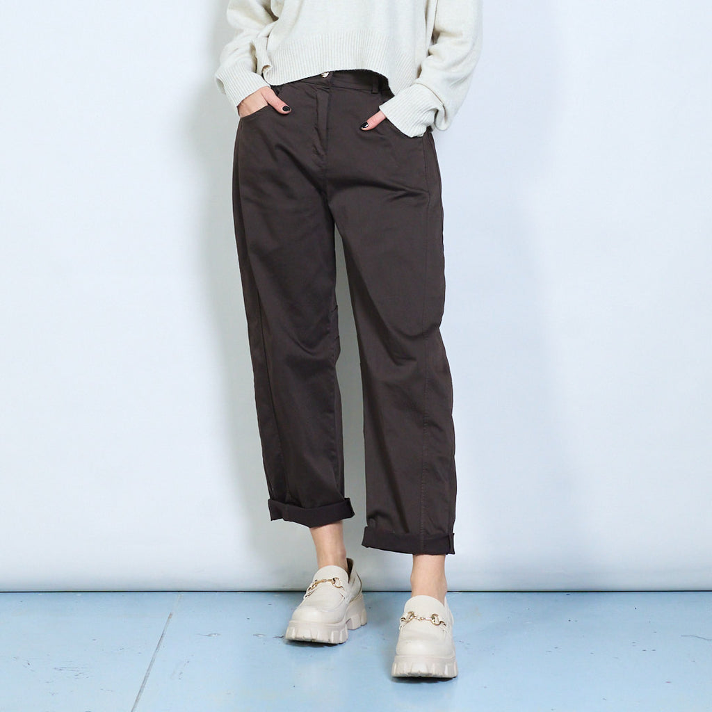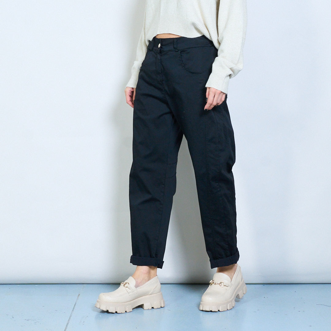Vendita all'ingrosso di pantaloni utility a gamba dritta con vita elasticizzata e polsini arrotolati