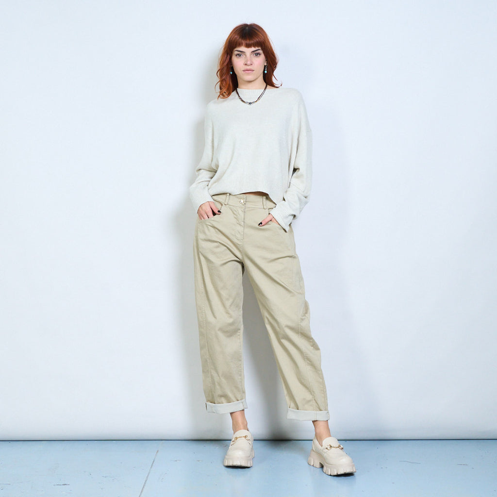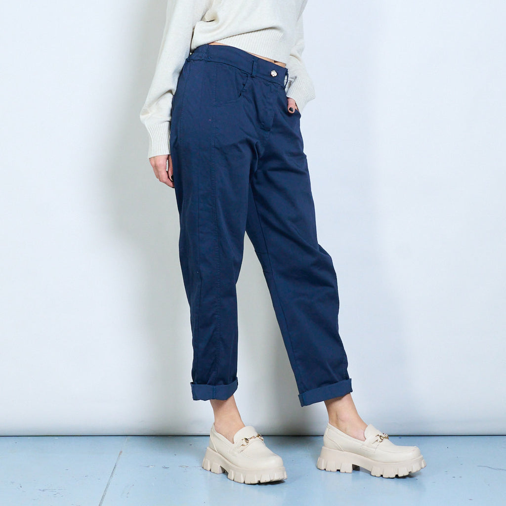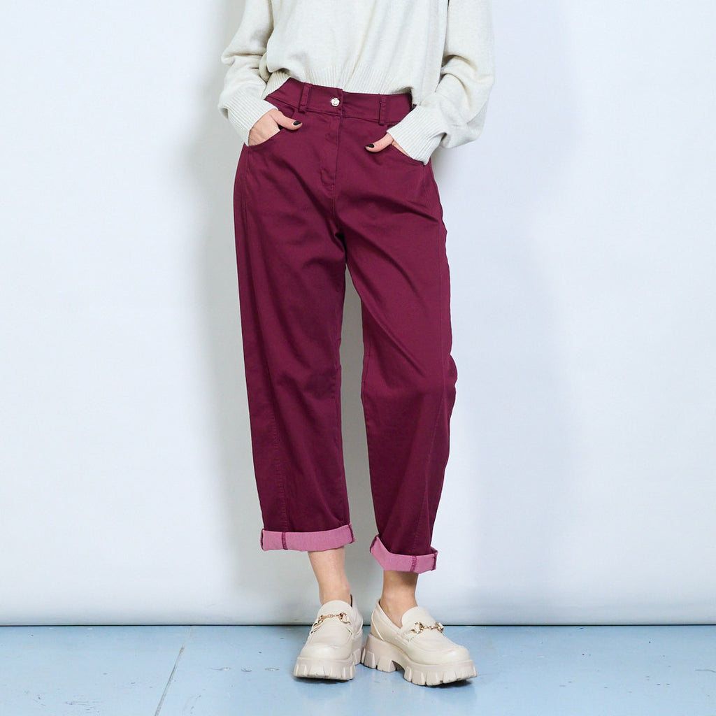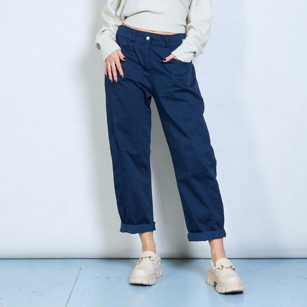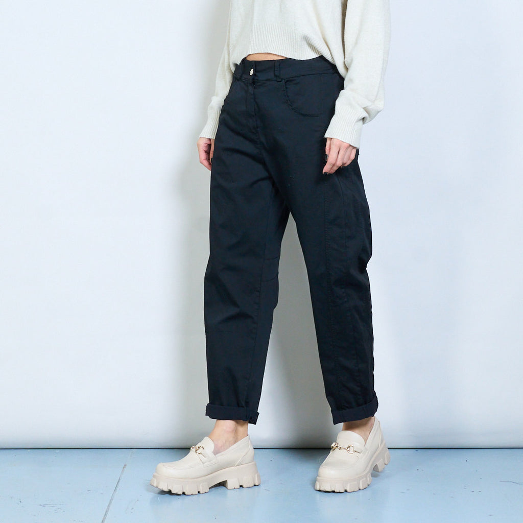 Vendita all'ingrosso di pantaloni utility a gamba dritta con vita elasticizzata e polsini arrotolati